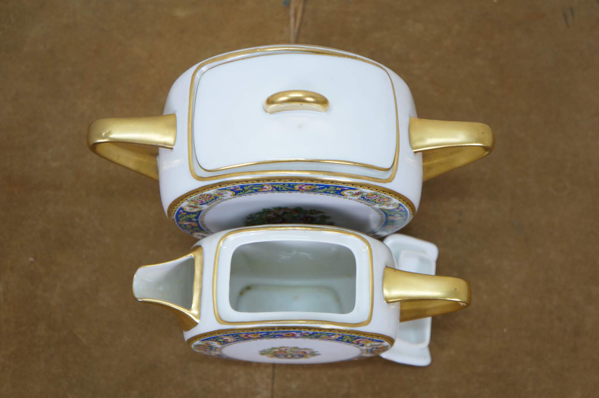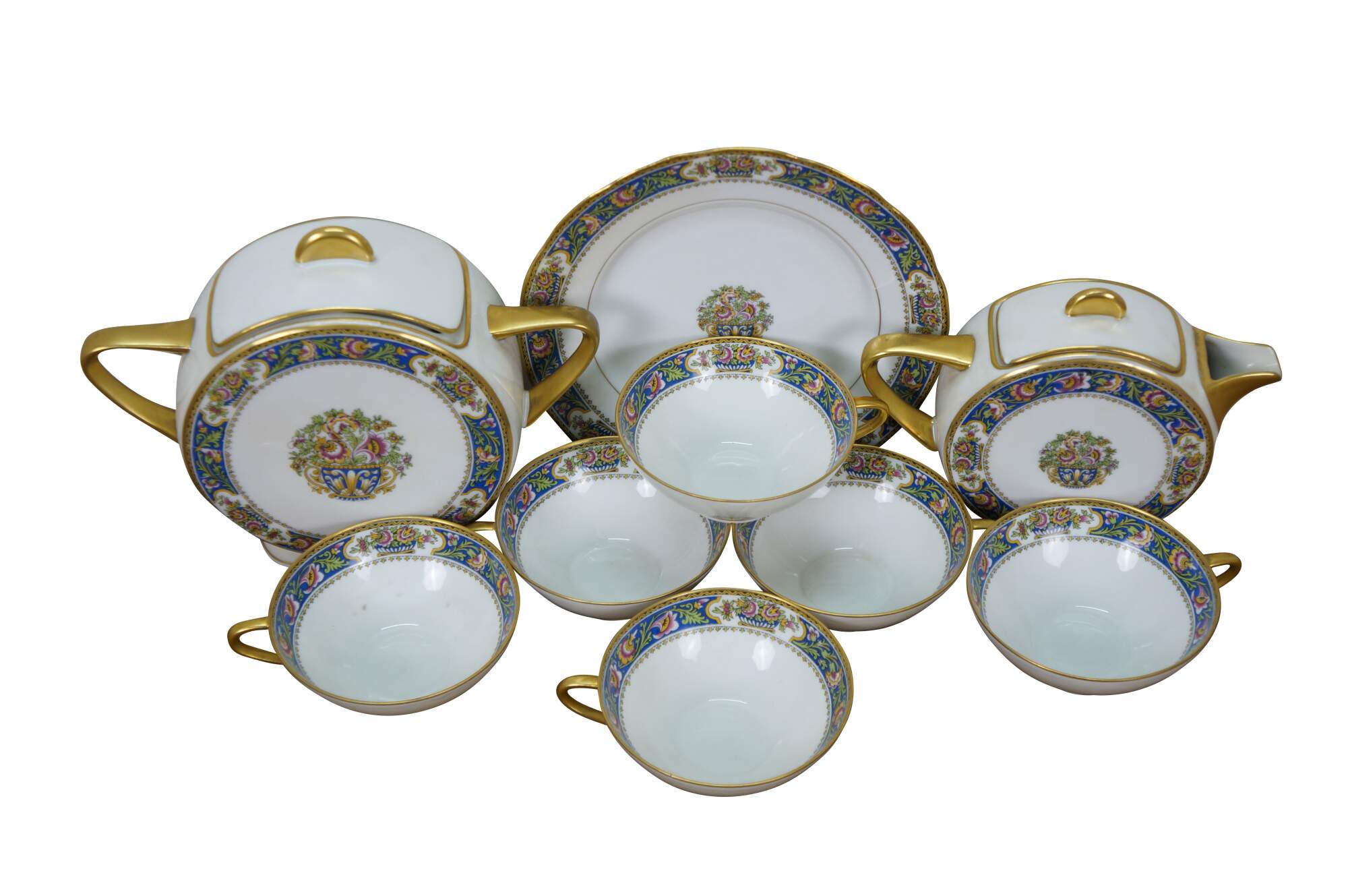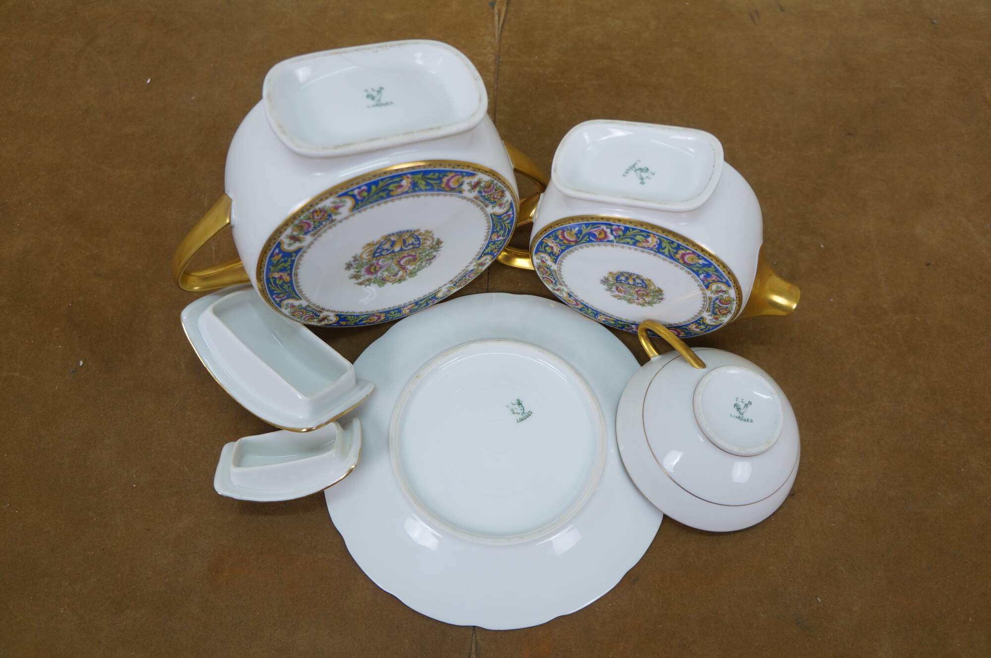 "The story of the Touze family in the porcelain business dates back to 1863 when Michel Touze and his associate Soudanas founded a decorating studio in Limoges at the boulevard des Petits Carmes which Touze continued alone from 1869, moving to brand new facilities the following year. In 1878 his widow took charge of the family business, followed by their son a few years later. The mark J.B.T & Cie was used from 1901 to 1913. During World War I the company ceased activity. T.L.B. (Touze, Lemaître Frères & Blancher) was created after the war, in 1918. The manufacture produced tea, coffee and table sets in several shapes. Some patterns were entirely hand painted. The manufactory participated in the 1925 Modern Decorative Arts Exhibition, in the 1931 Colonial Exhibition and in the 1937 International Exhibition. Like many other factories in the Limoges region, the company ceased activity during World War II. From 1950 onwards the former facilities of T.L.B. were used by the porcelain decorators Georges Jammet and Henri Seignolles who founded J. Seignolles, a factory that still produces high quality porcelain manufactured and decorated exclusively in Limoges. " (Art Deco Limoges Porcelain)