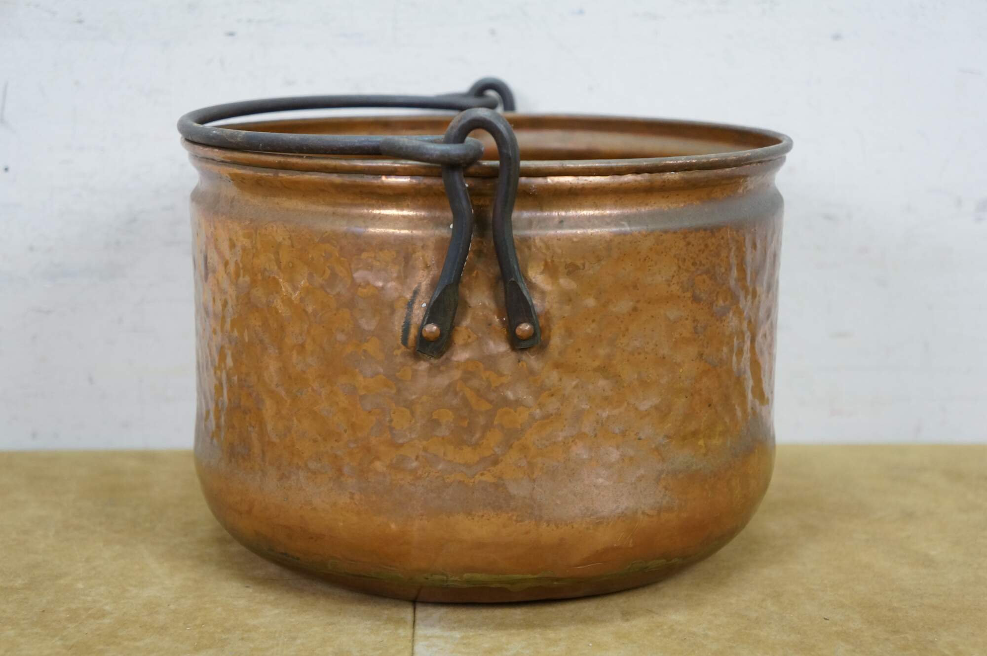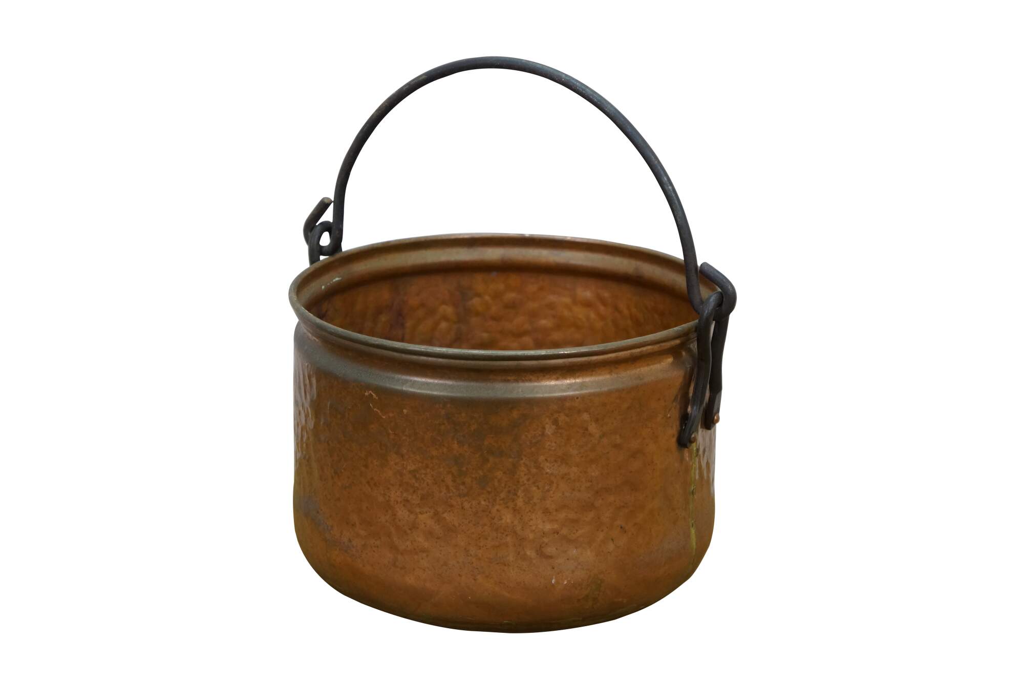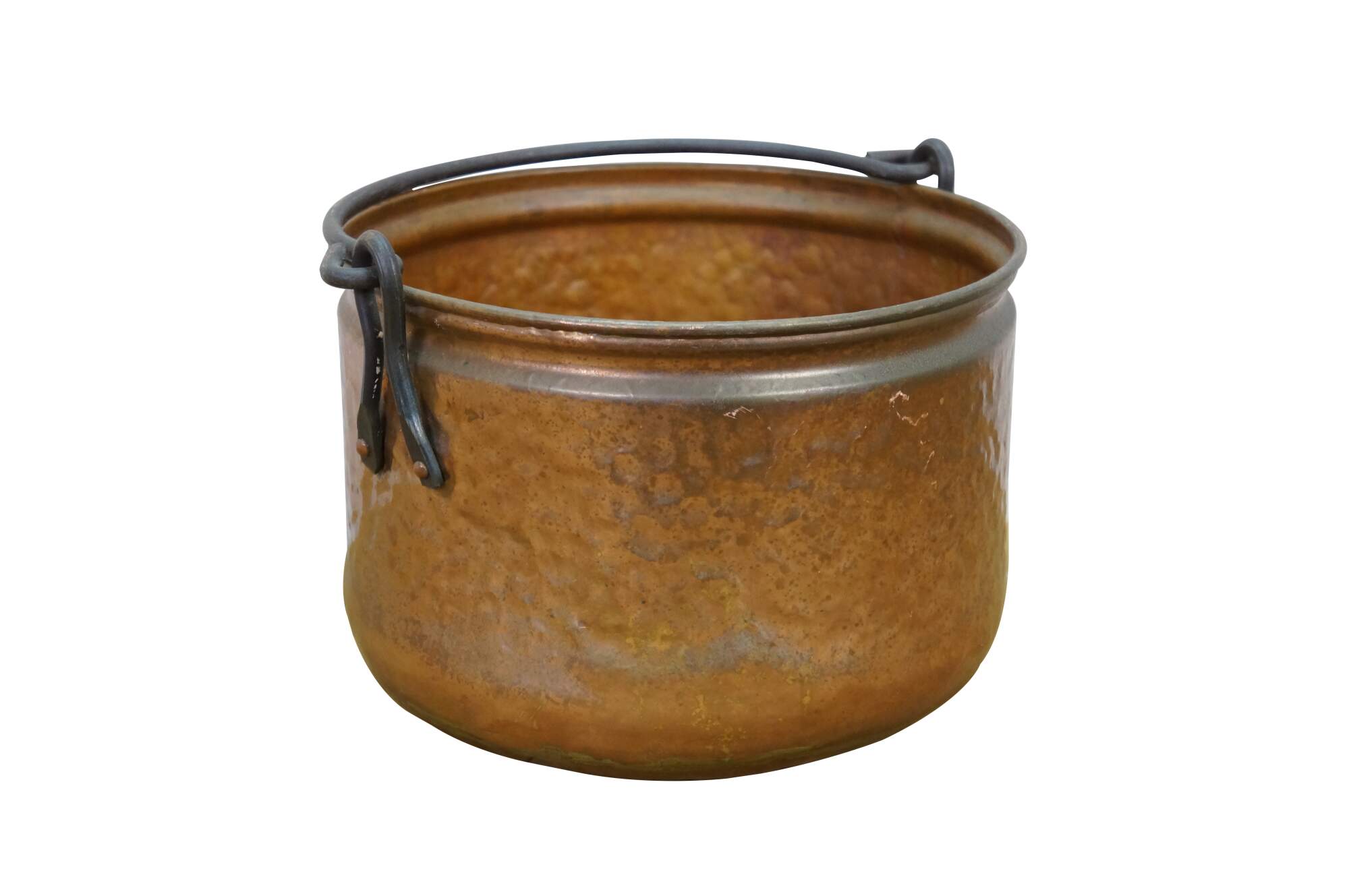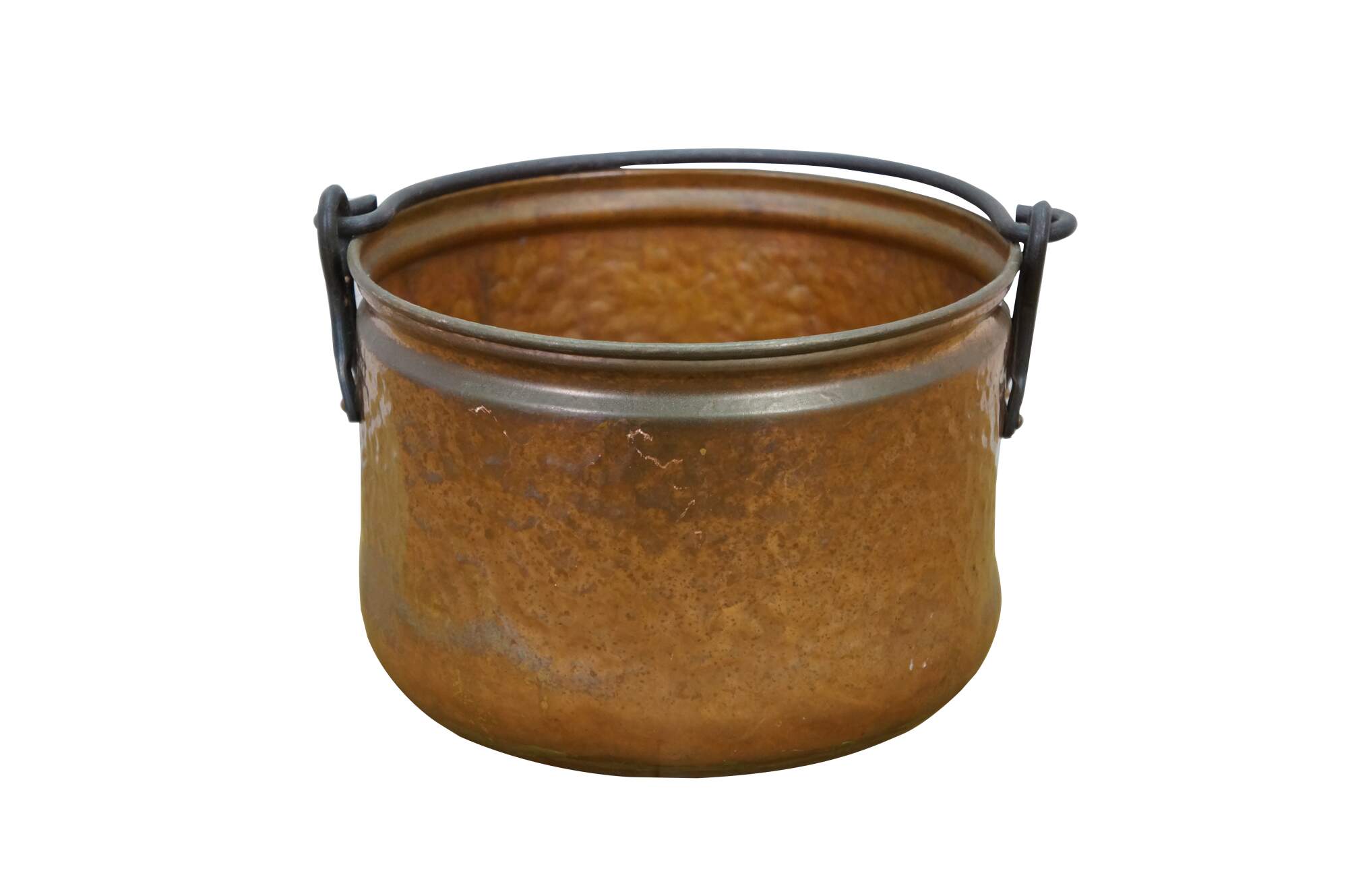 Late 19th to early 20th century dovetailed copper cooking pot with rotating rattail bail handle.
