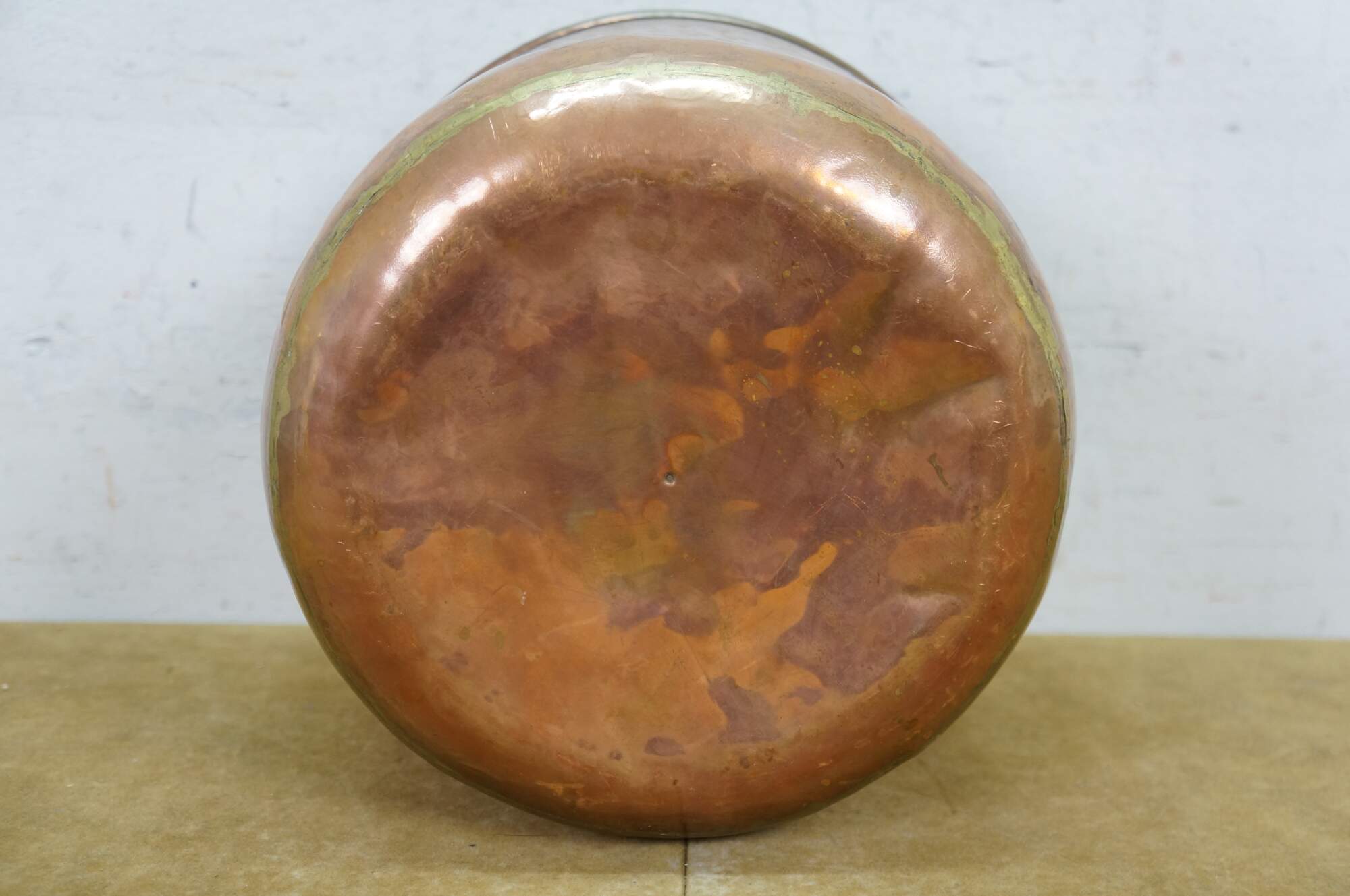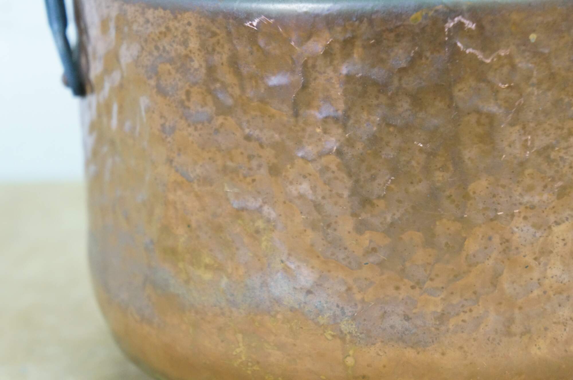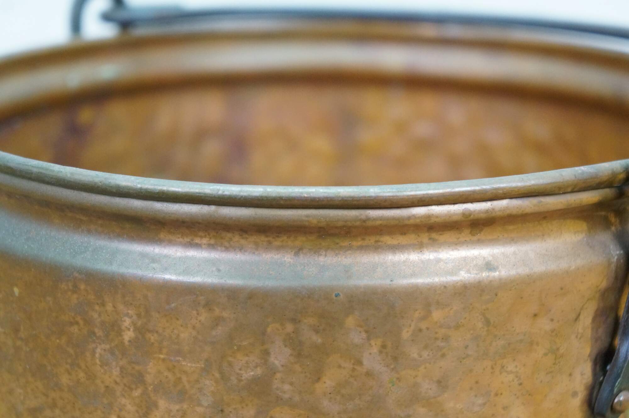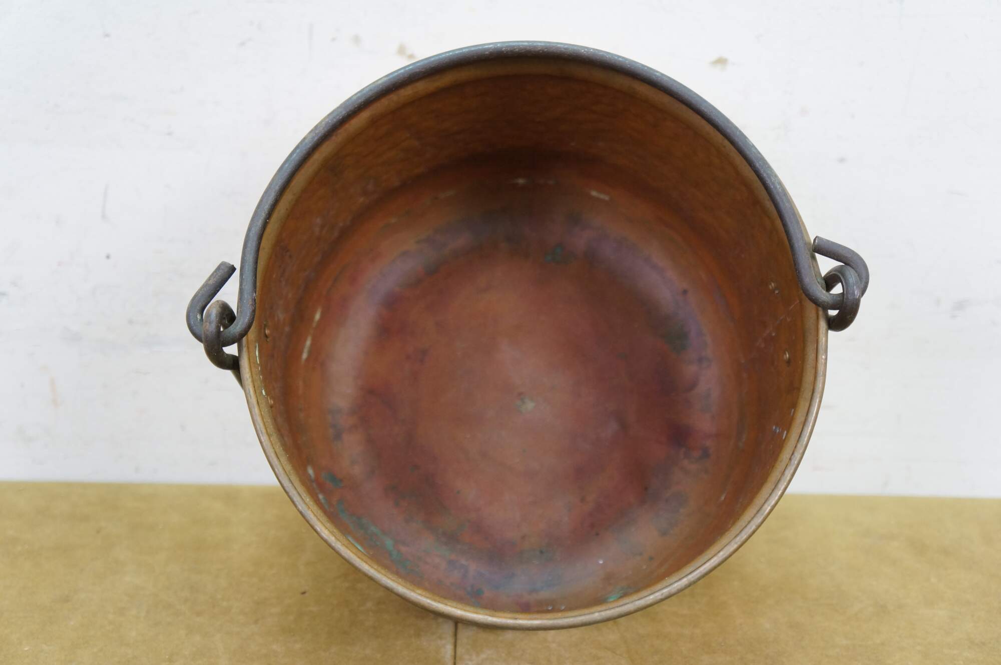 Late 19th to early 20th century dovetailed copper cooking pot with rotating rattail bail handle.