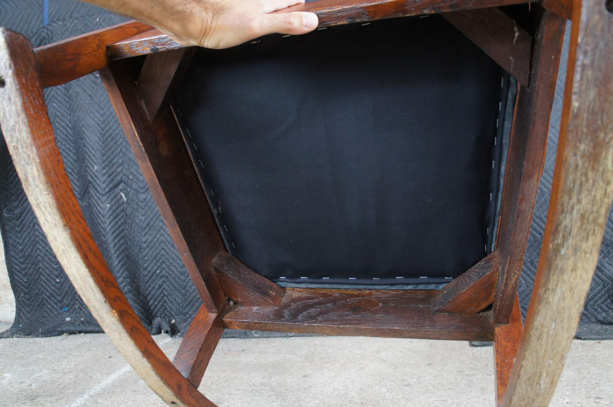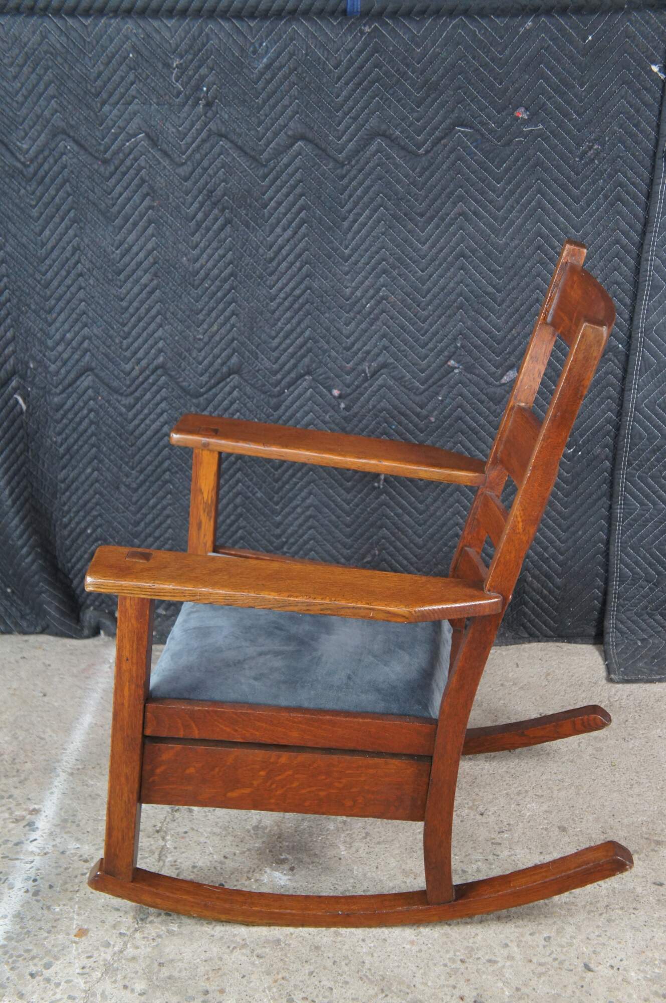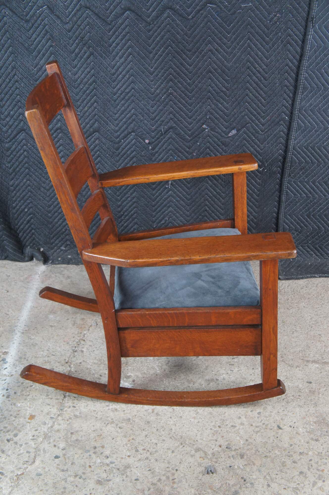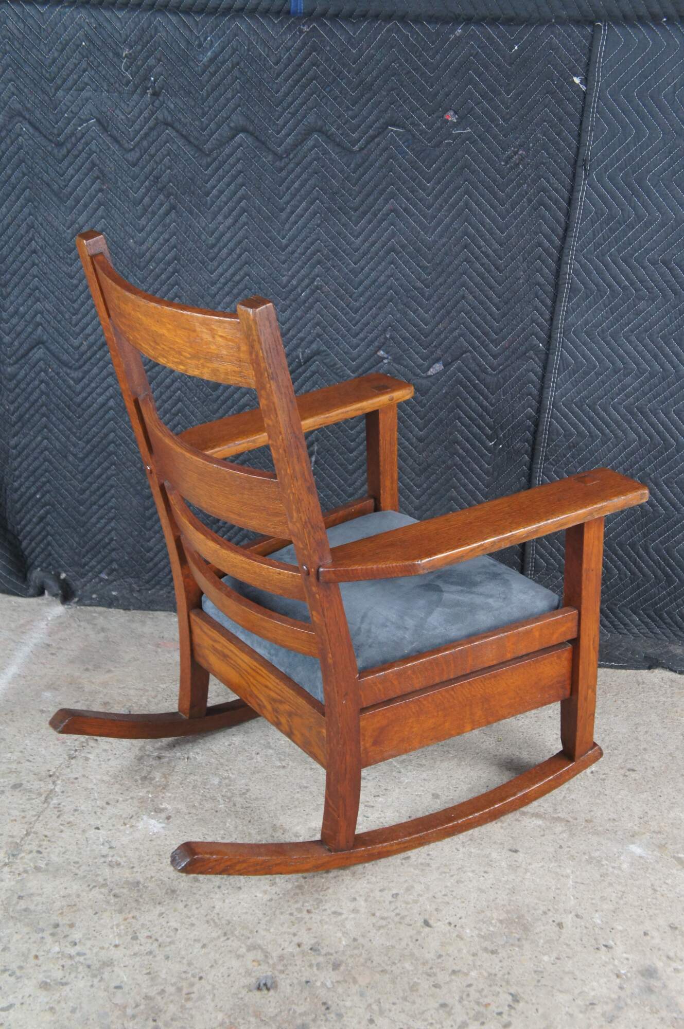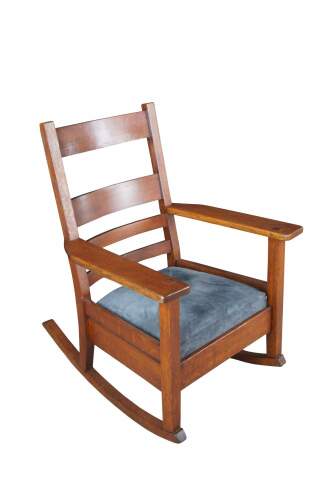 A charming early 1900s Mission / Craftsman rocking chair from the Oak Craft Shop.