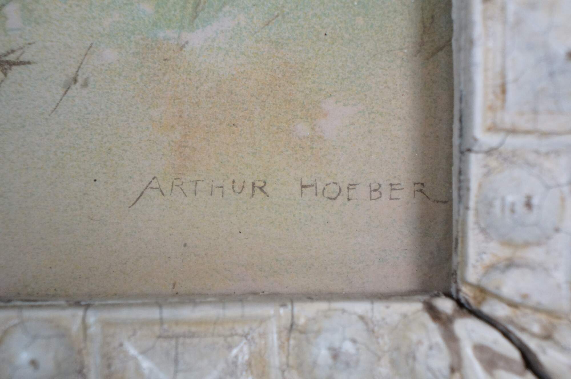 "Arthur Hoeber (July 23, 1854 New York City – April 29, 1915 Nutley, New Jersey) was an American painter best known for his writing on art-related subjects. He studied with James Carroll Beckwith at the Art Students League of New York, and with Jean-Léon Gérôme in Paris at the École des Beaux Arts. He exhibited for the first time at the Salon in 1882 (“Sur la Grande Route”; in 1885 his offering was “Le Pain Quotidien”) and was a contributor to most American exhibitions. While well known as a successful painter, his reputation perhaps rests on his art criticism. He was art director for the New York Times for three years and was assistant editor of The Illustrated American for one year. He later was art critic for the New York Globe and Commercial Advertiser. He was also widely known as a lecturer on art subjects. He was a member of the International Art Association of Chicago, and was elected an associate of the National Academy. During the last years of his life, Hoeber resided on The Enclosure, a street in Nutley, New Jersey, that had long been the home to many artists. His popular writings include The Treasures of the Metropolitan Museum of Art (1892) and Painting in the Nineteenth Century in France, Belgium, Spain and Italy (1901)." (Wikipedia)