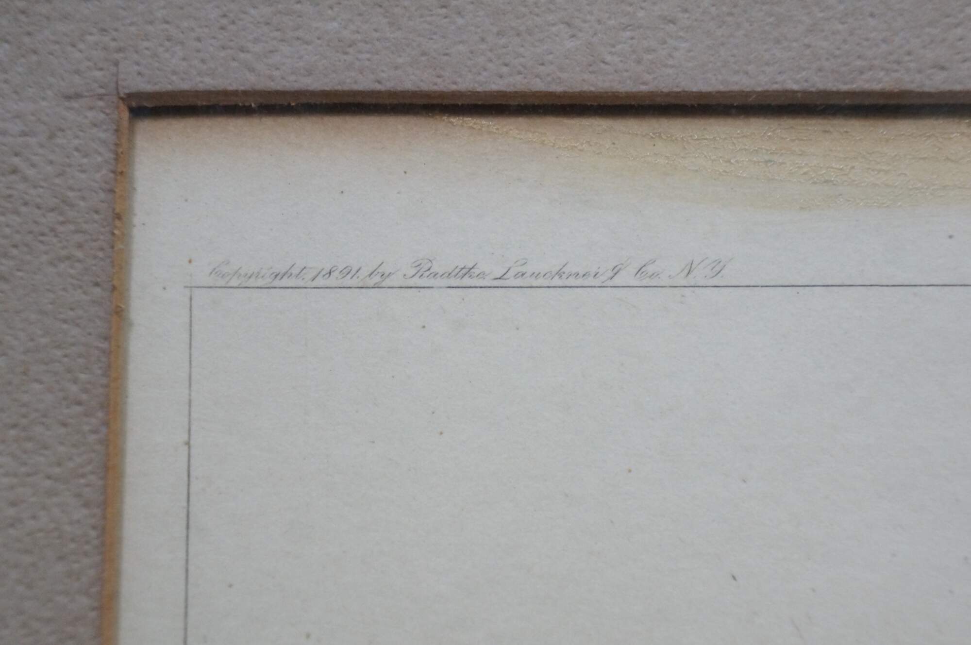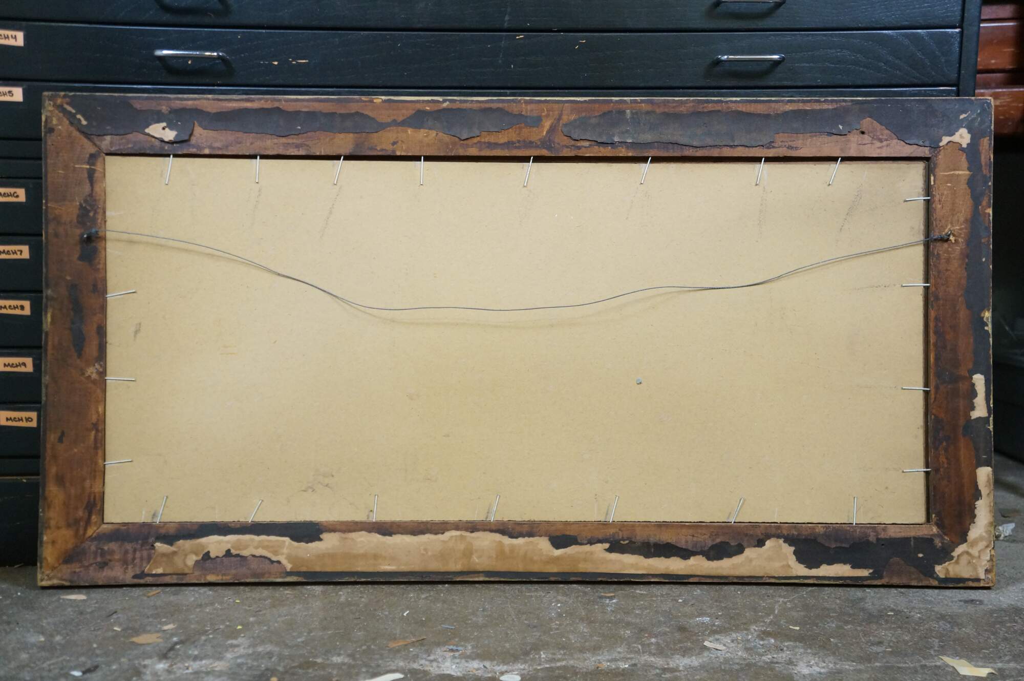 Wear and distressing to frame - some chips/; partially broken glass; some stains/discoloration / foxing to mat/print