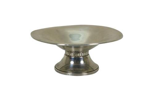 Vintage 20th century Wallace sterling silver number 4798 candy / nut dish in the Modernique pattern. Pedestal style dish with a simple ribbed collar around the middle.