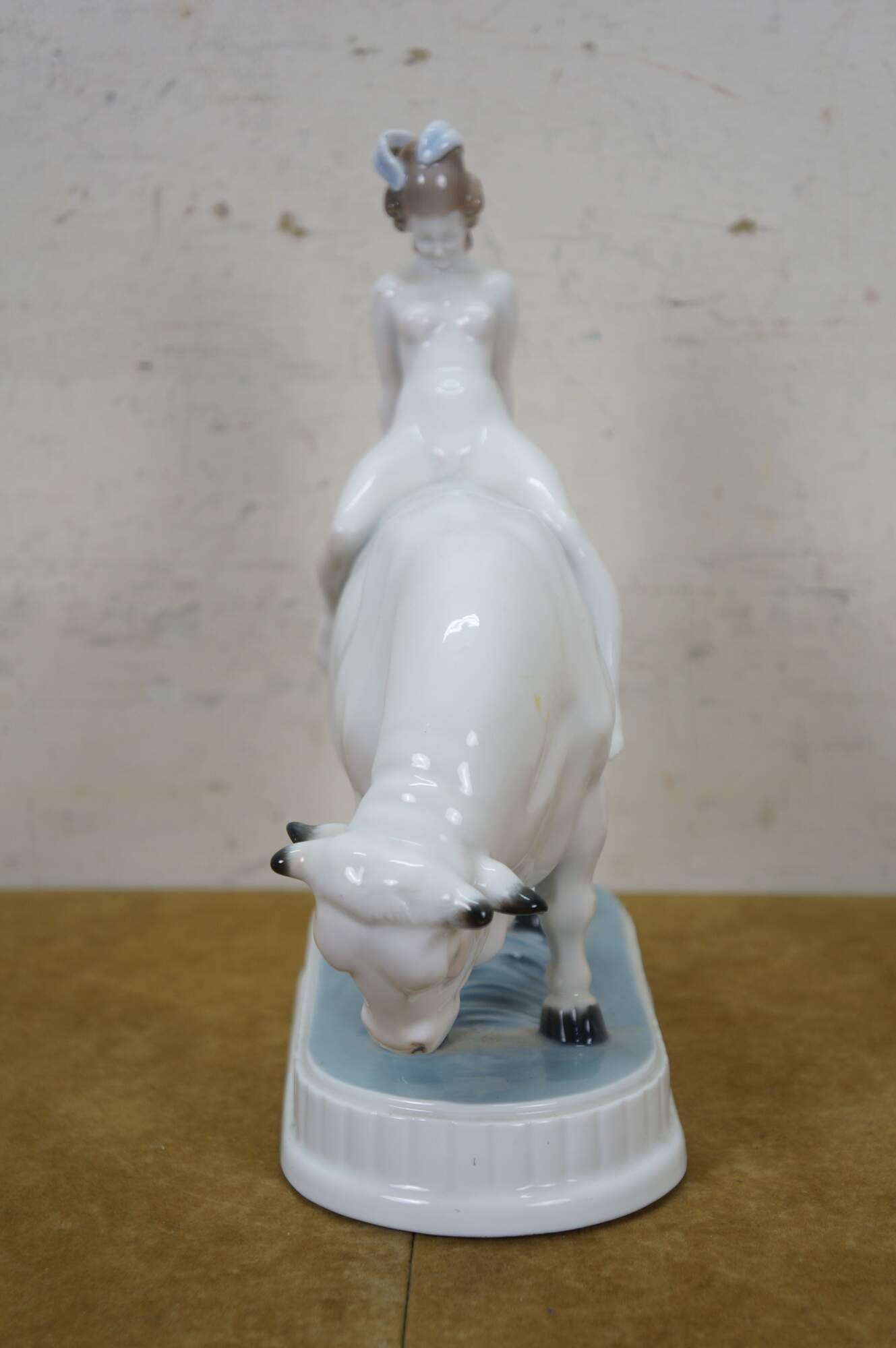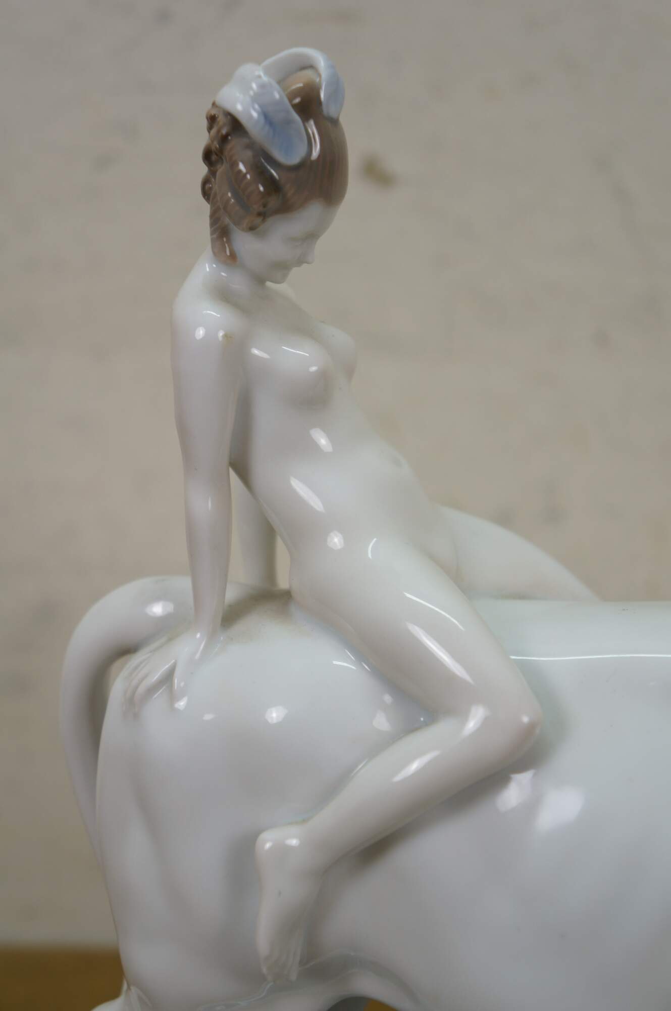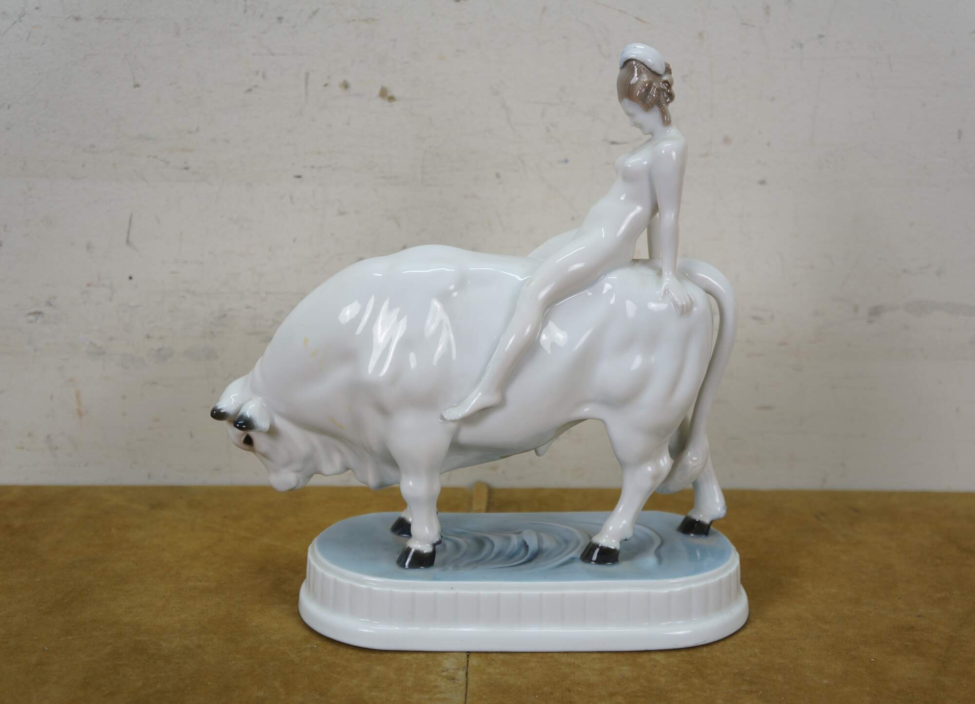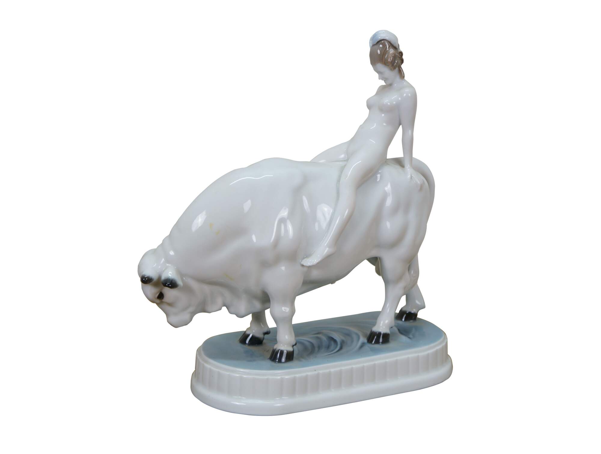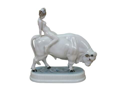 Rare antique Art Deco c.1921 Rosenthal porcelain figurine depicting Europa and the Bull, designed by Adolf Opel. H 603/2 incised on base. Green stamp.