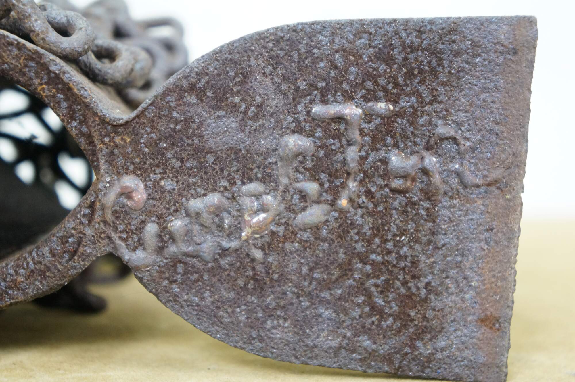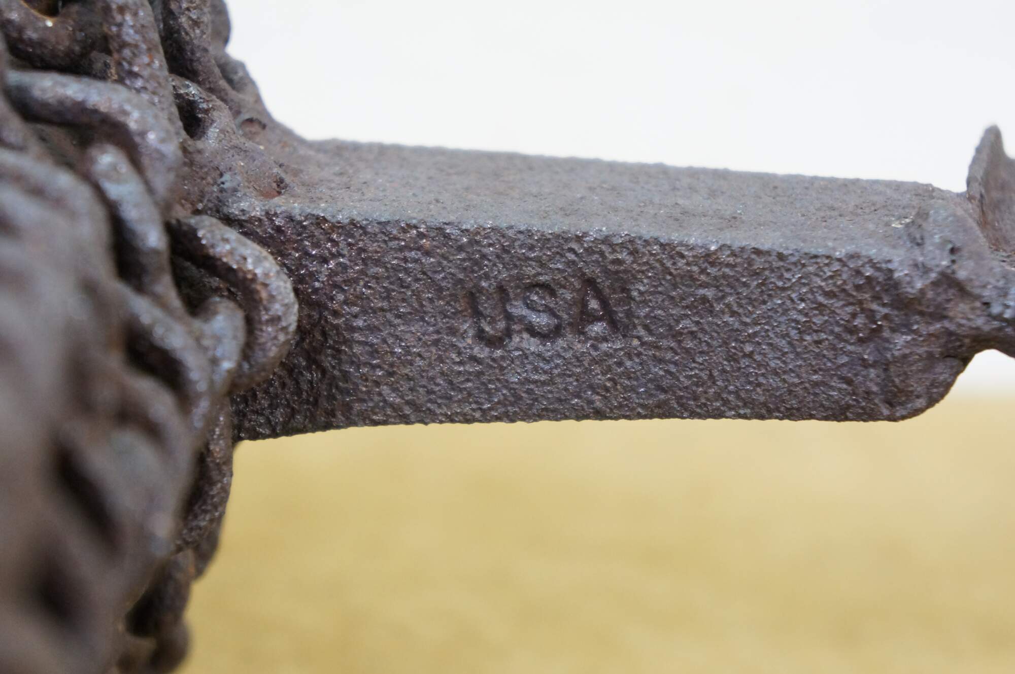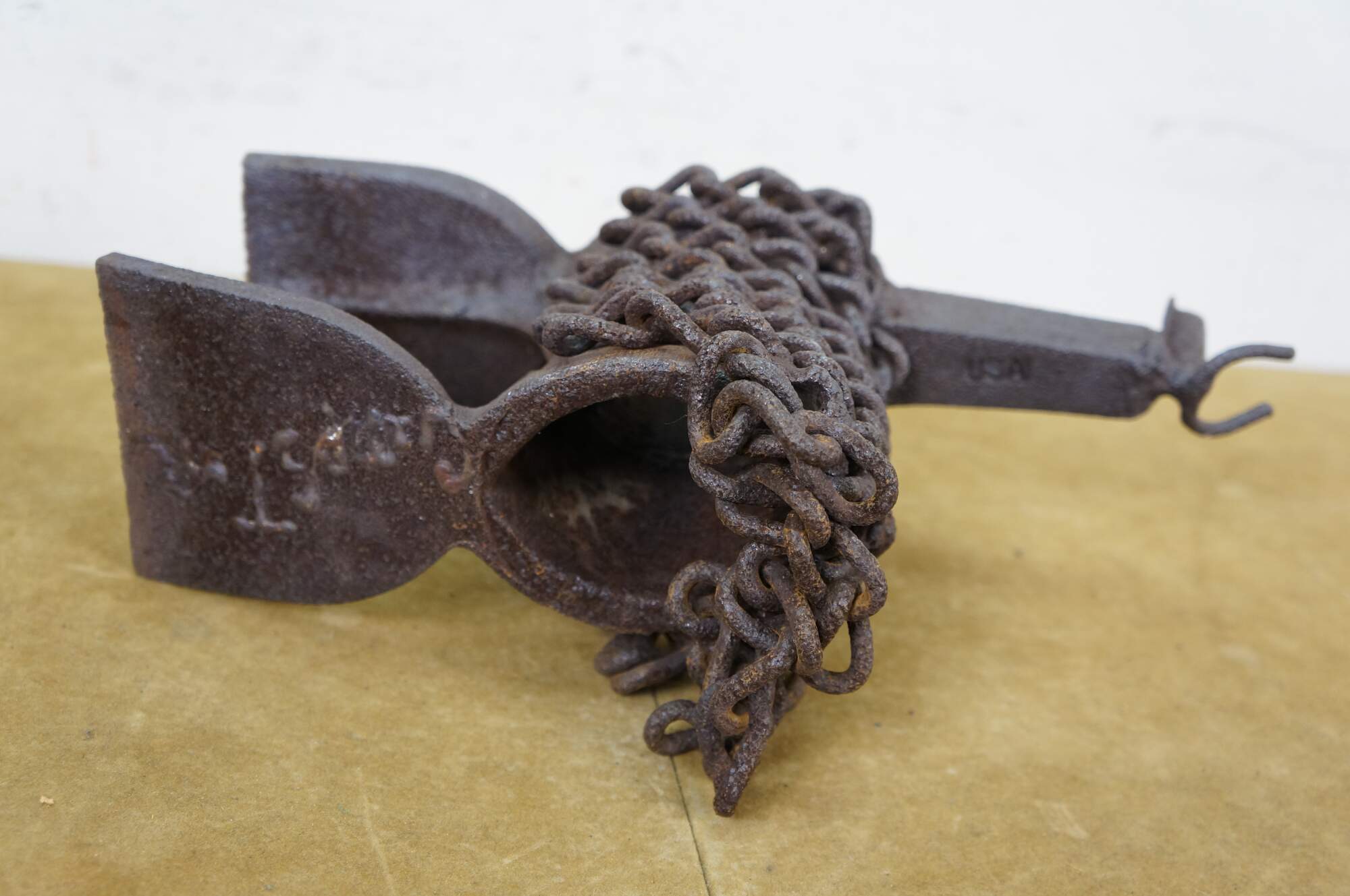 Late 20th century Robert cumpston sculpture / figurine in the shape of a llama with perky ears and long chain wool. Industrial style, crafted of reclaimed farm implements / tools. Signed on rear legs.