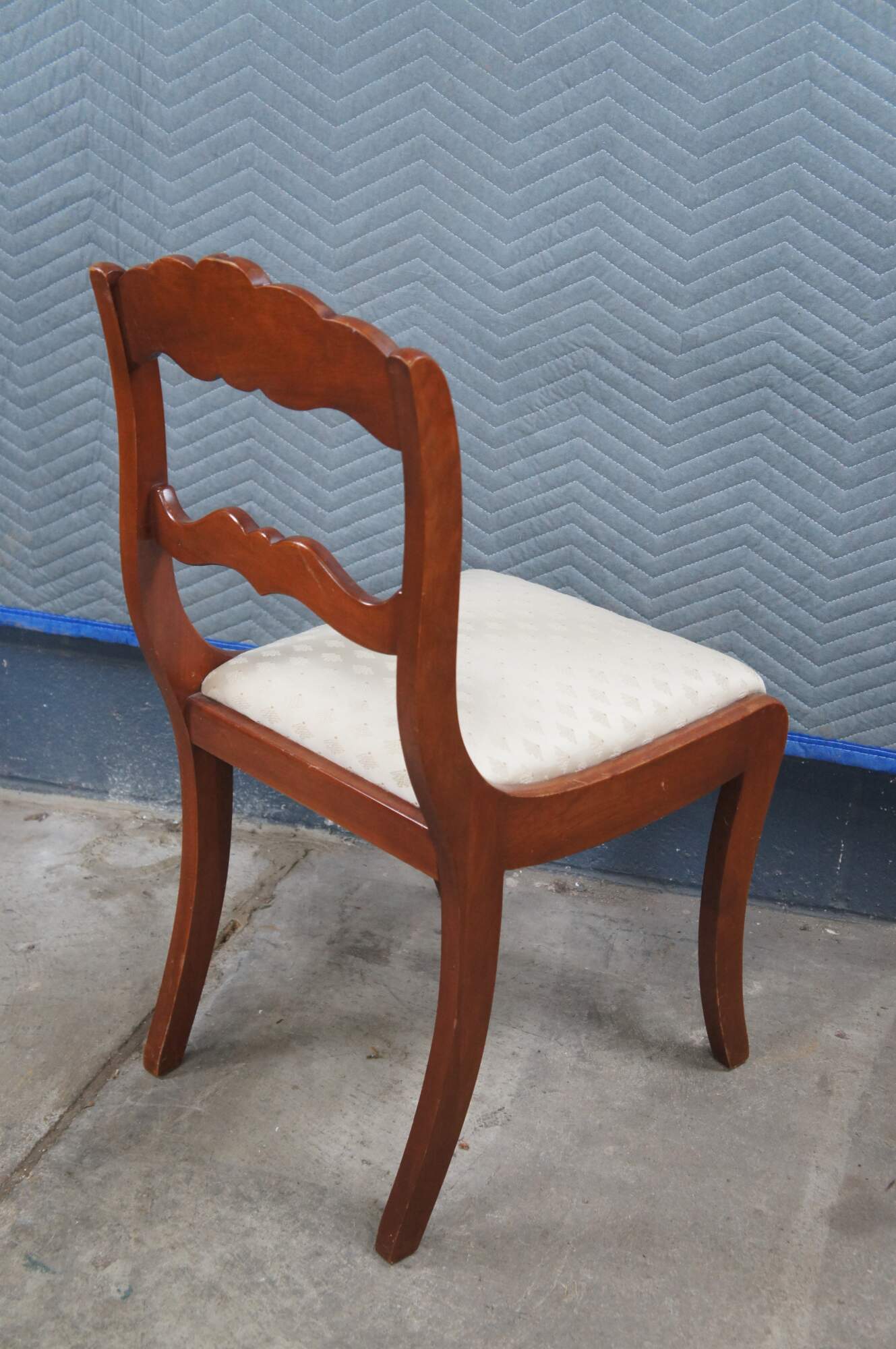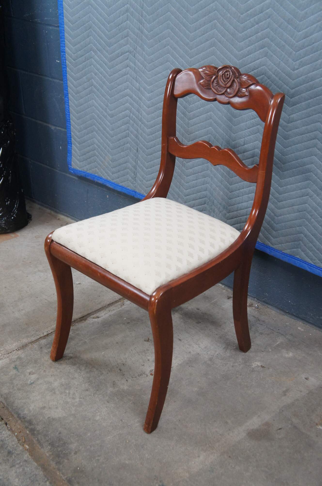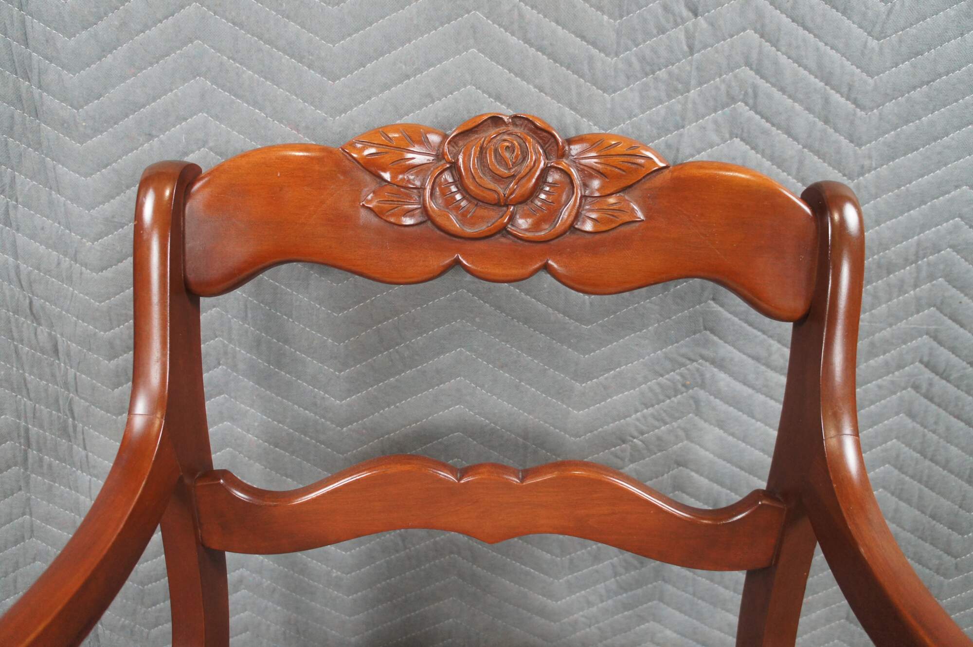 Vintage Willett Wildwood Cherry collection dining chairs featuring a serpentine ladderback design with rose medallion crest.
