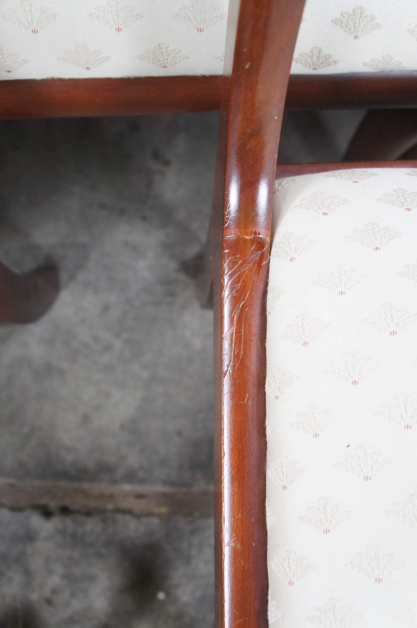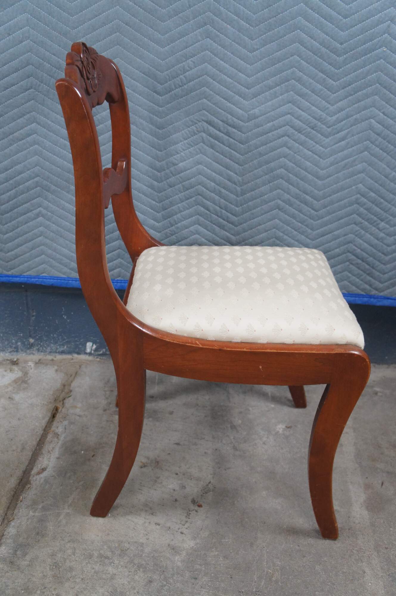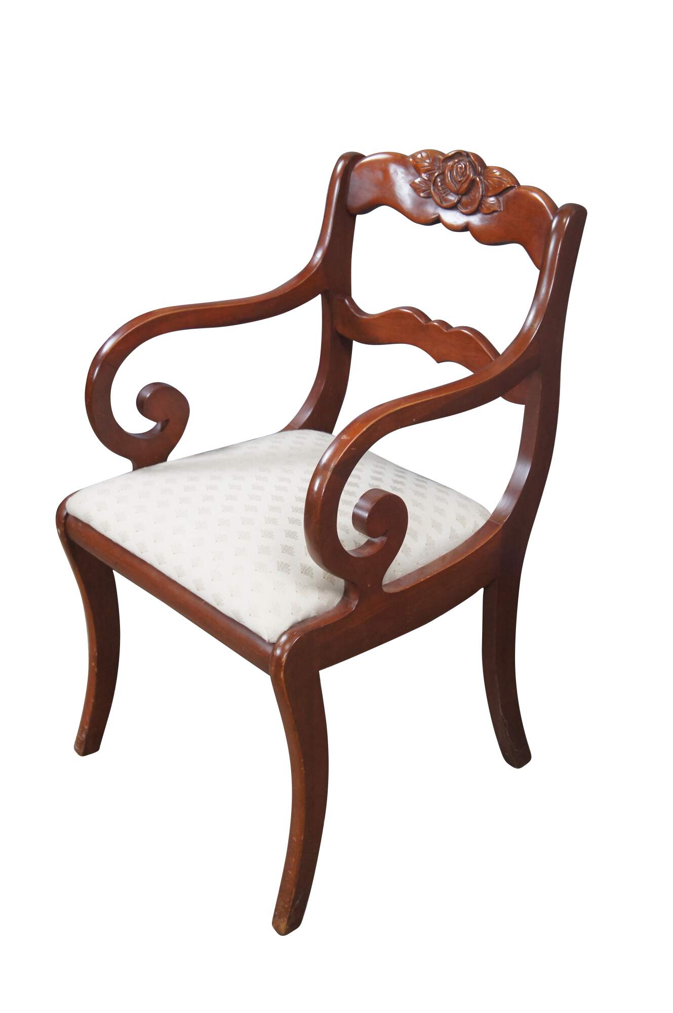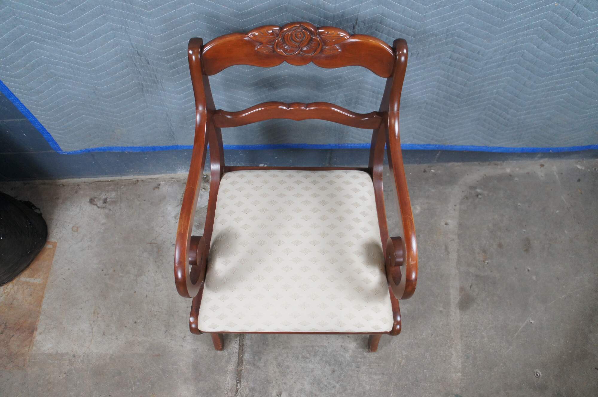 Vintage Willett Wildwood Cherry collection dining chairs featuring a serpentine ladderback design with rose medallion crest.