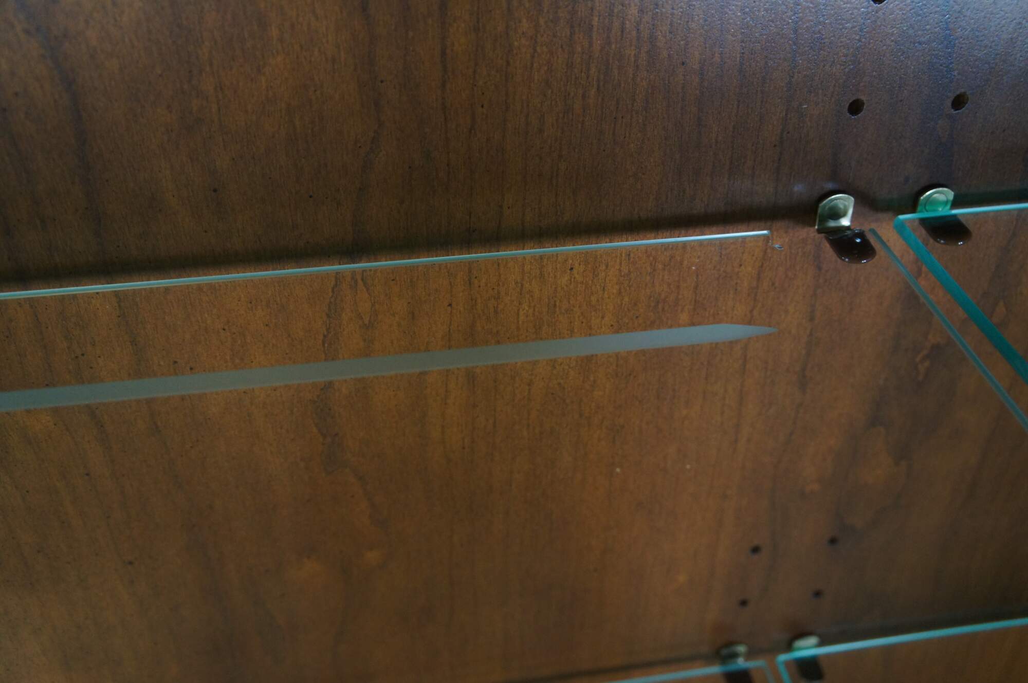 Good condition, light wear from age and use, some of the shelves have broken and chipped corners, doesn't affect use or structure.