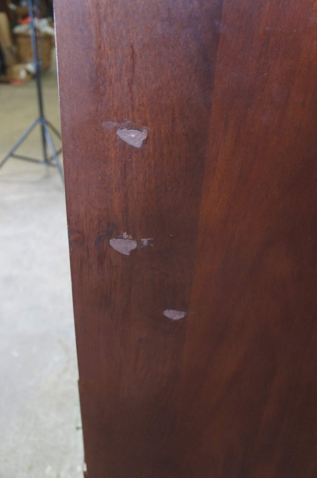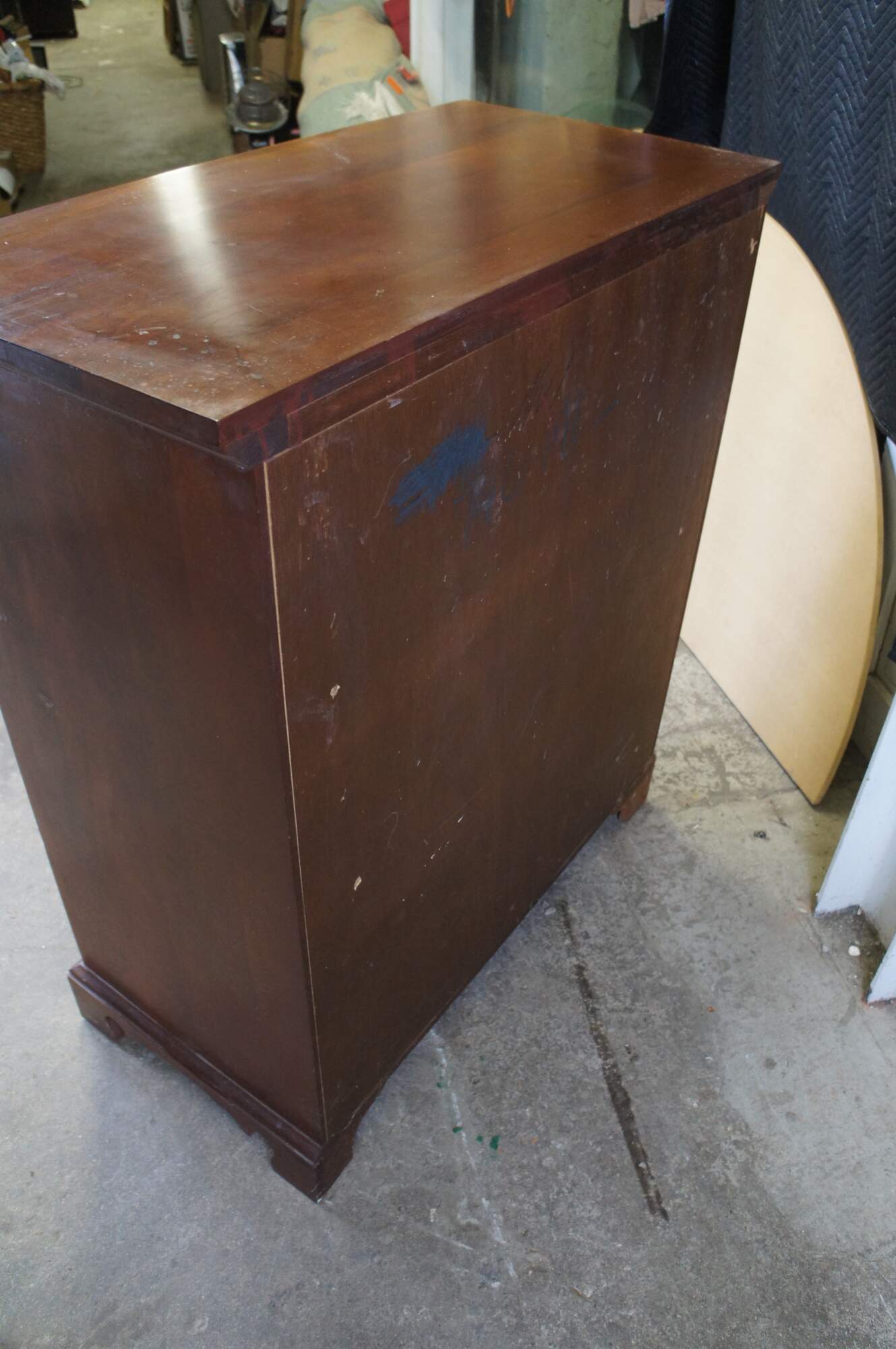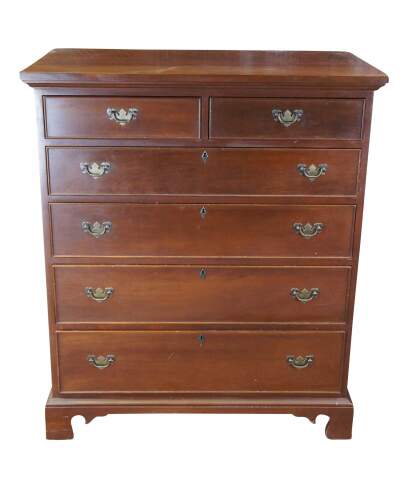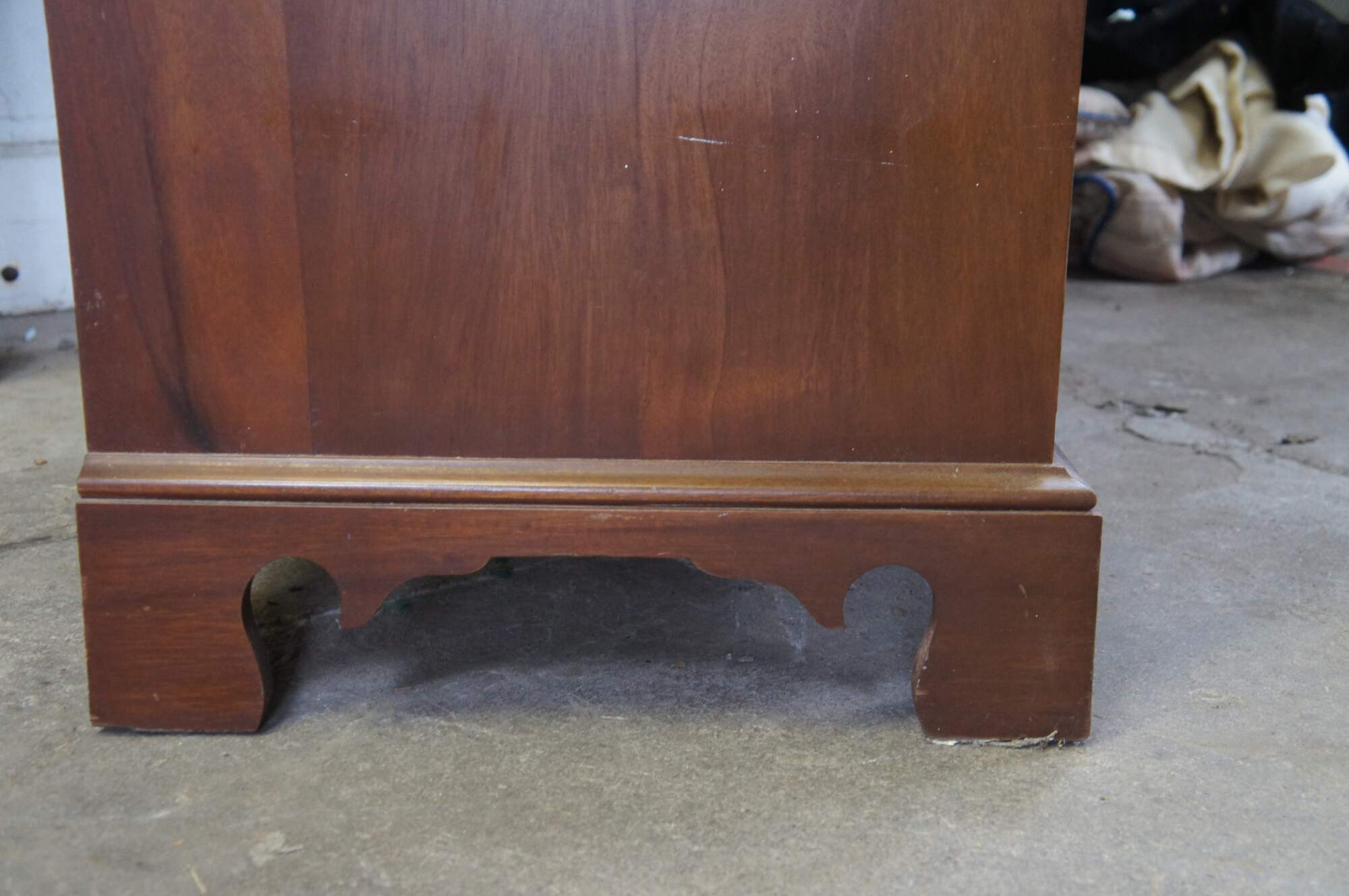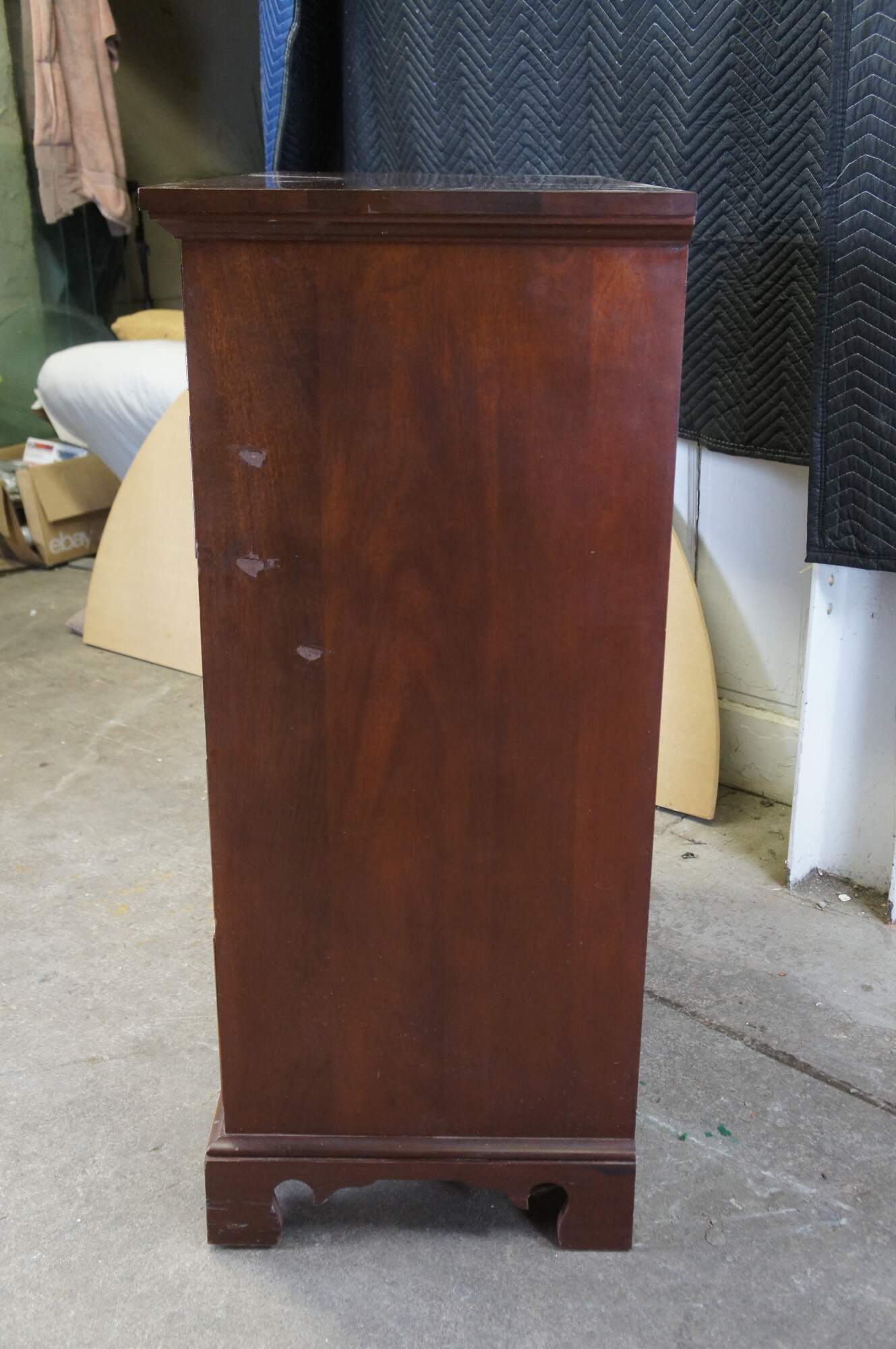 Vintage Craftique Authentic Reproduction tallboy dresser or chest of drawers. Made of mahogany featuring Chippendale styling with six drawers, brass hardware and bracket feet.
