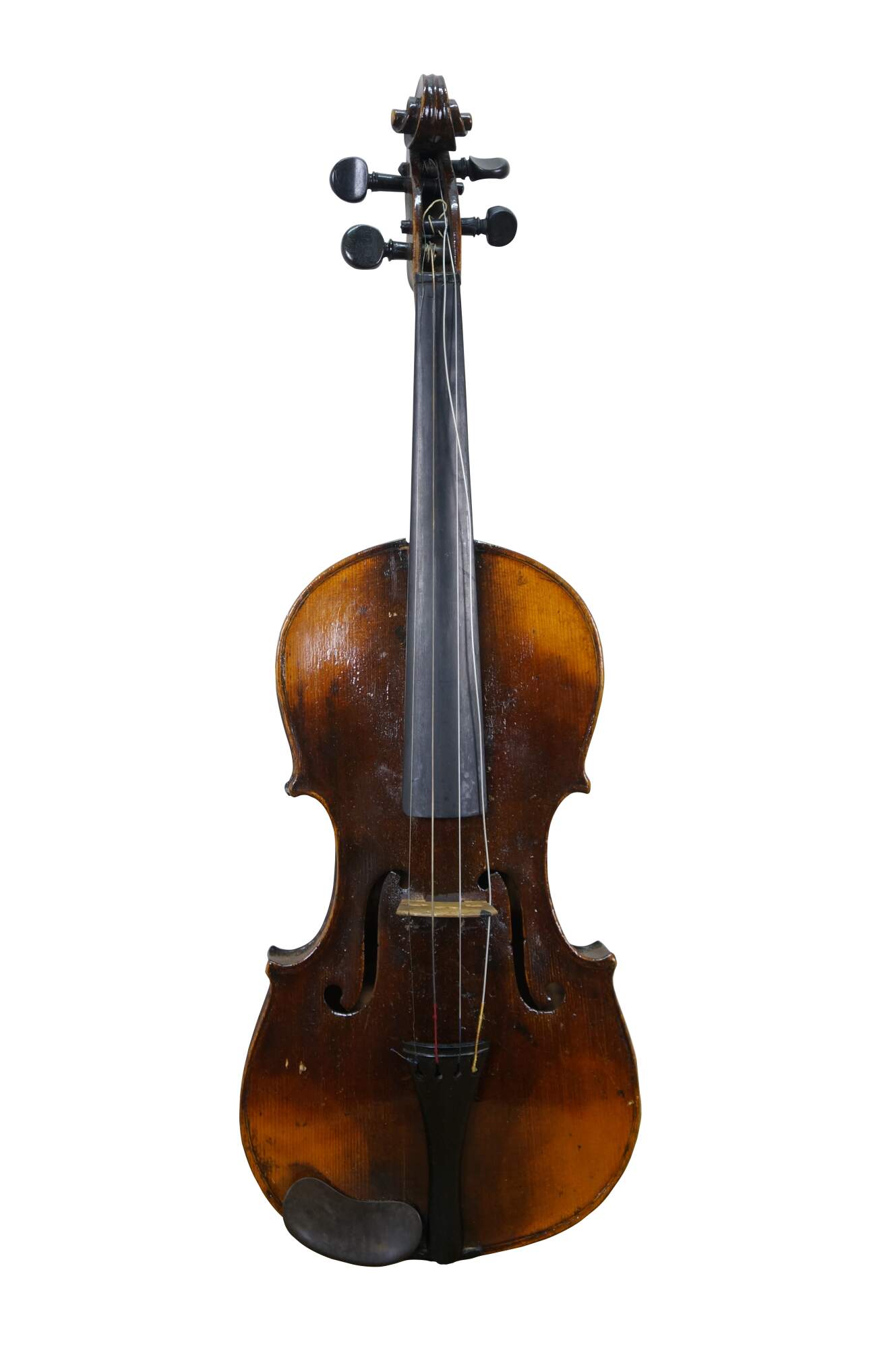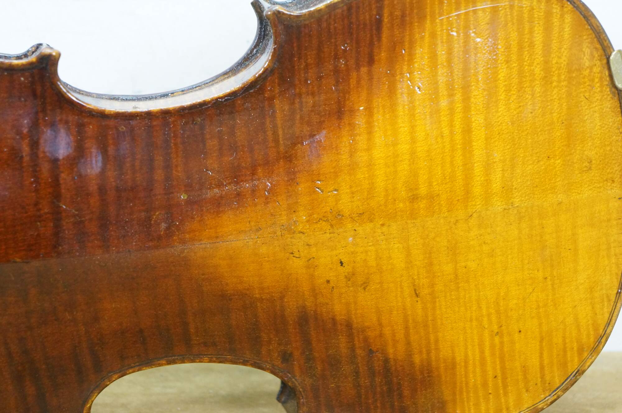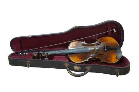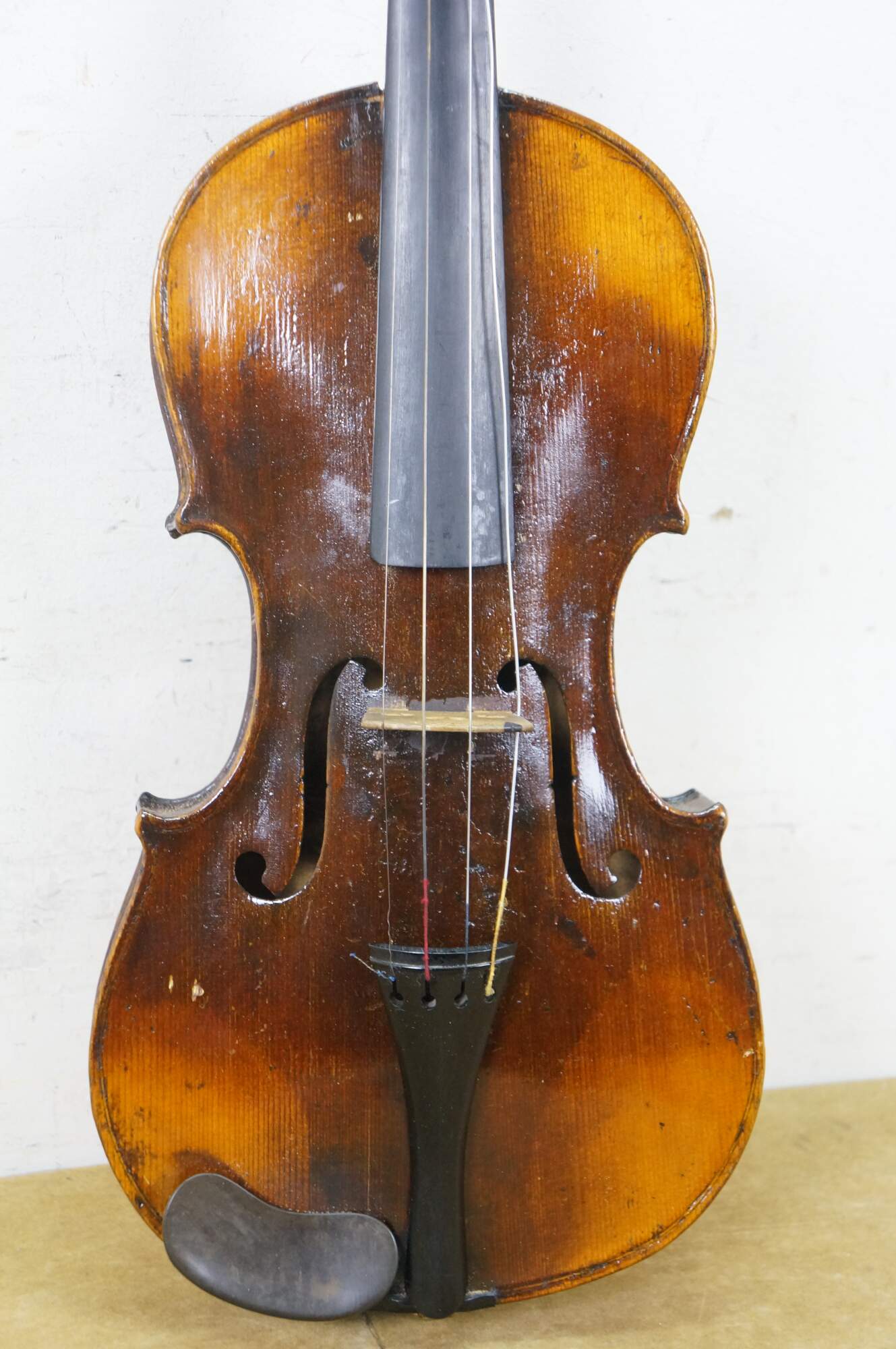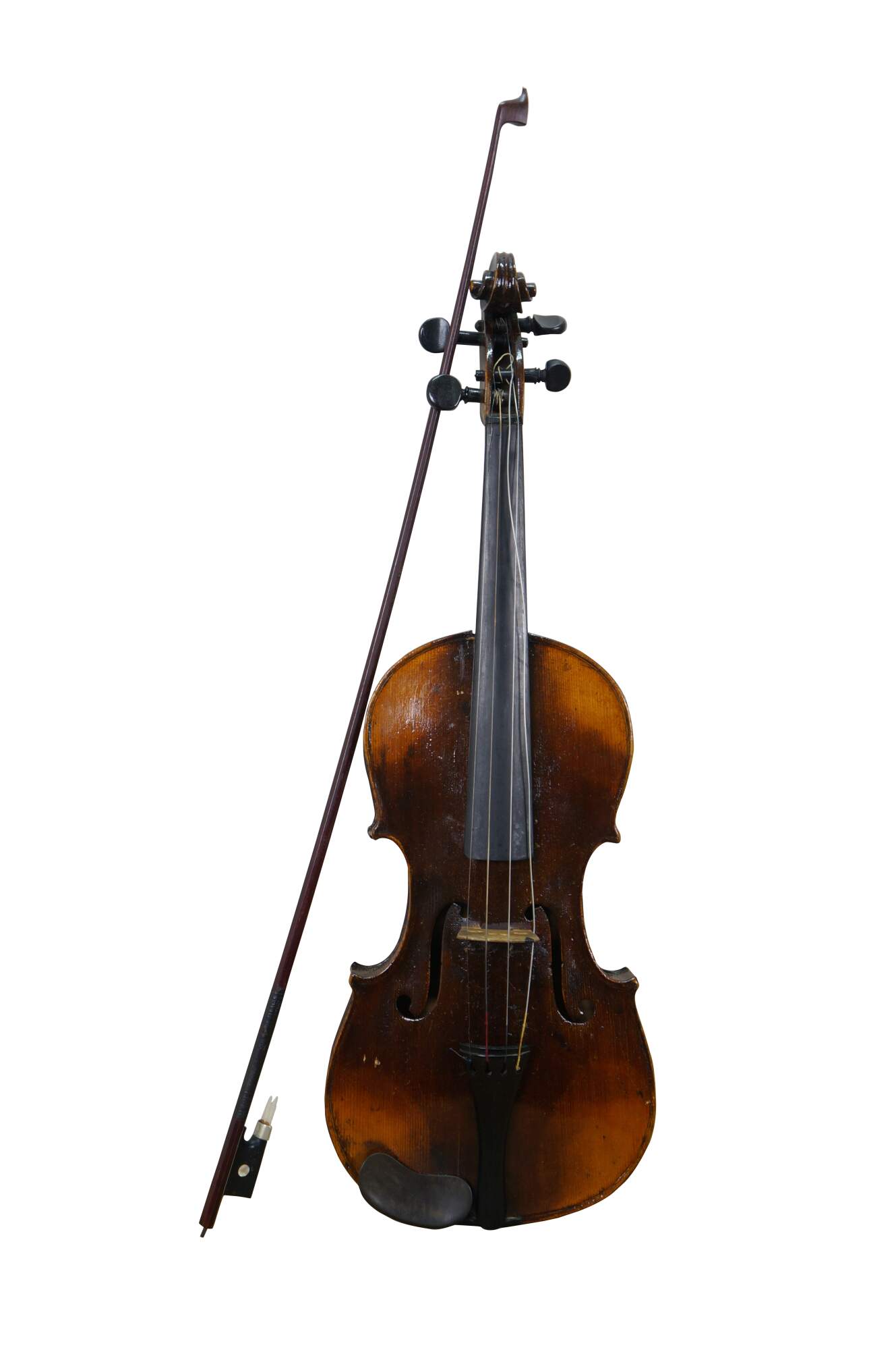 Needs restoration - Bow needs rehairing/missing knob; dings to violin surface; neck cracked/separating; needs work; scuffs/gentle wear to case exterior; one bow holder detached