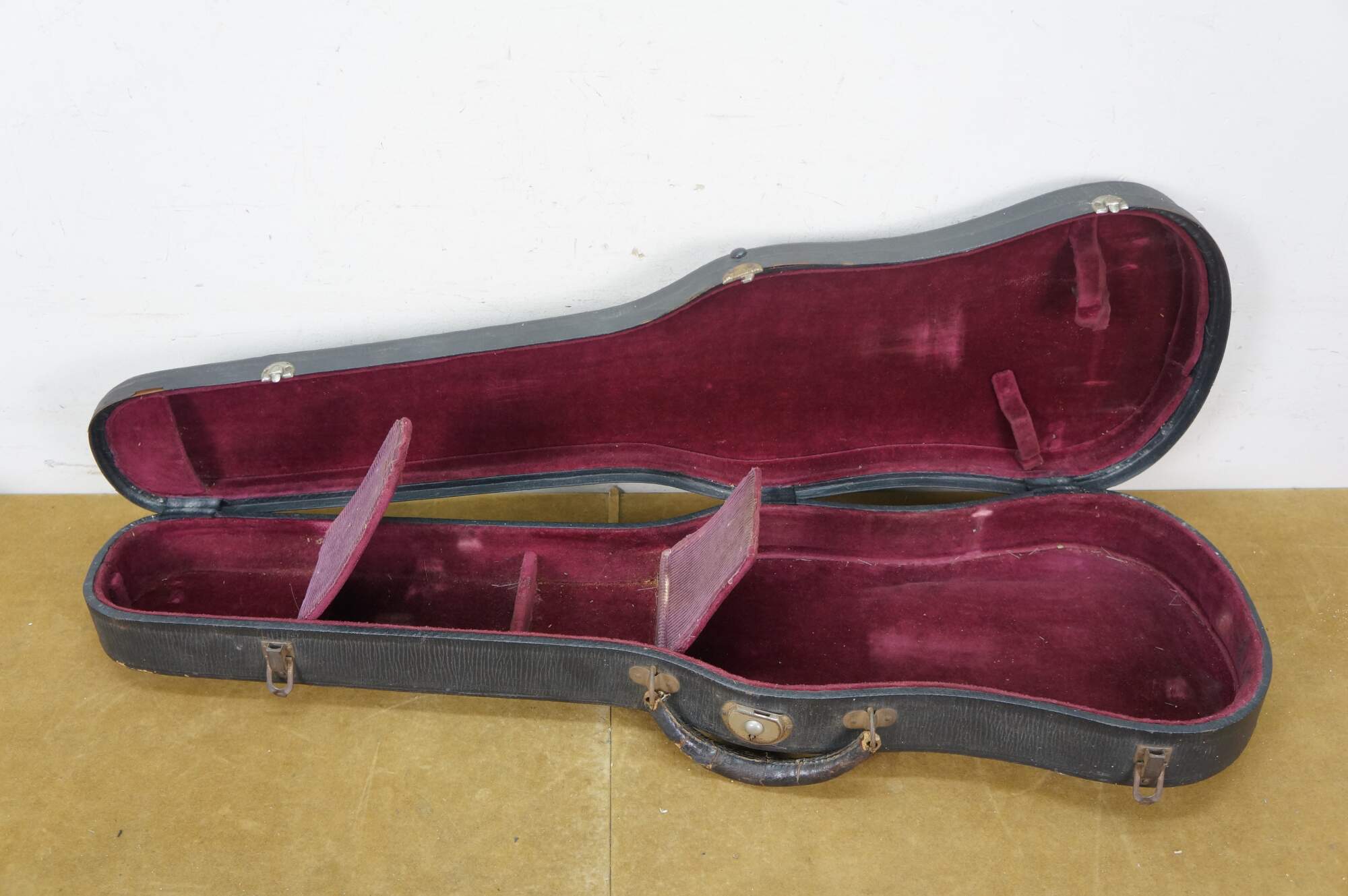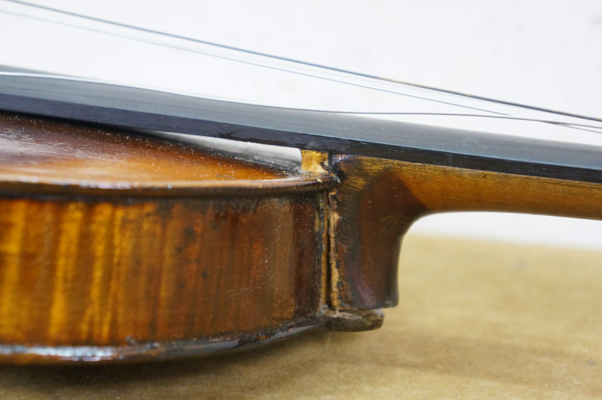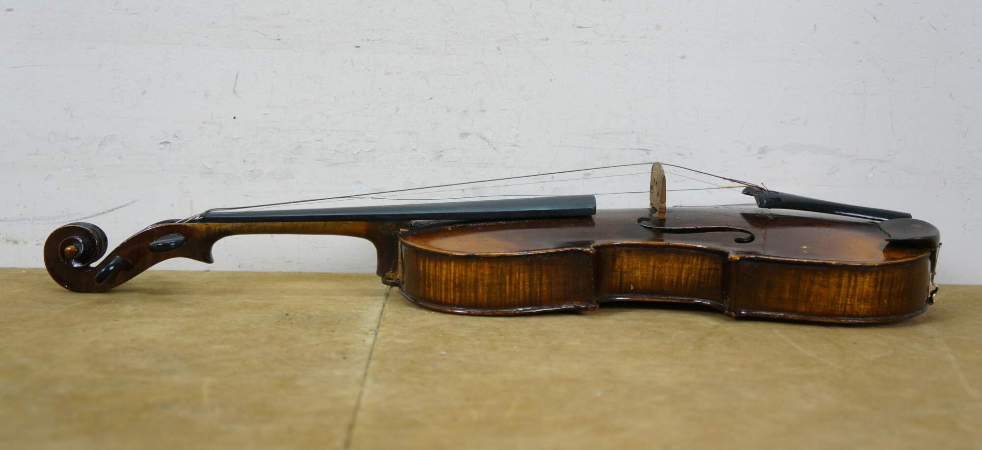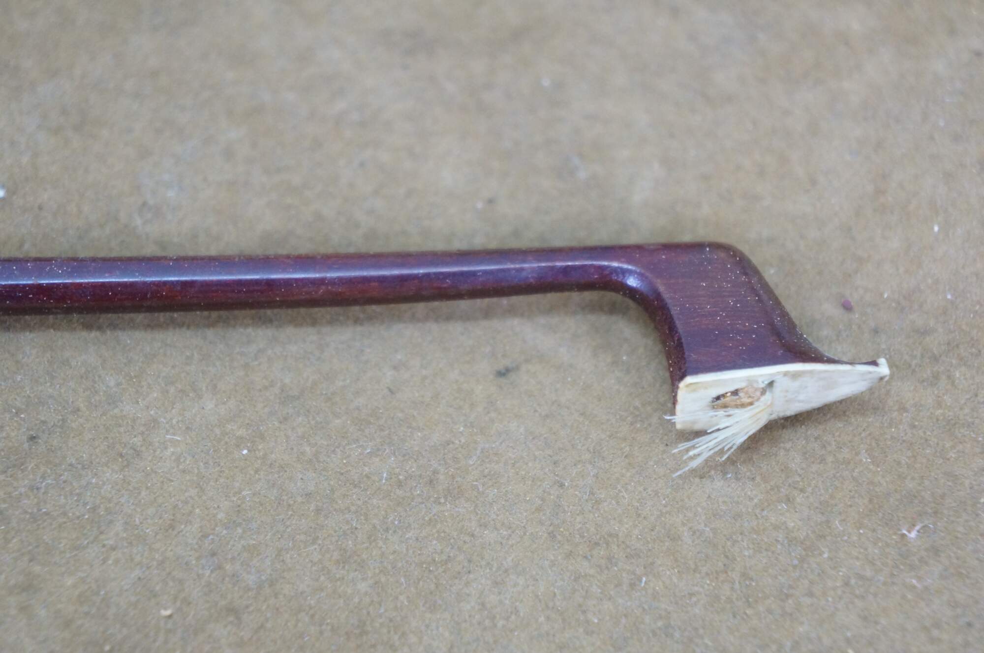 Needs restoration - Bow needs rehairing/missing knob; dings to violin surface; neck cracked/separating; needs work; scuffs/gentle wear to case exterior; one bow holder detached