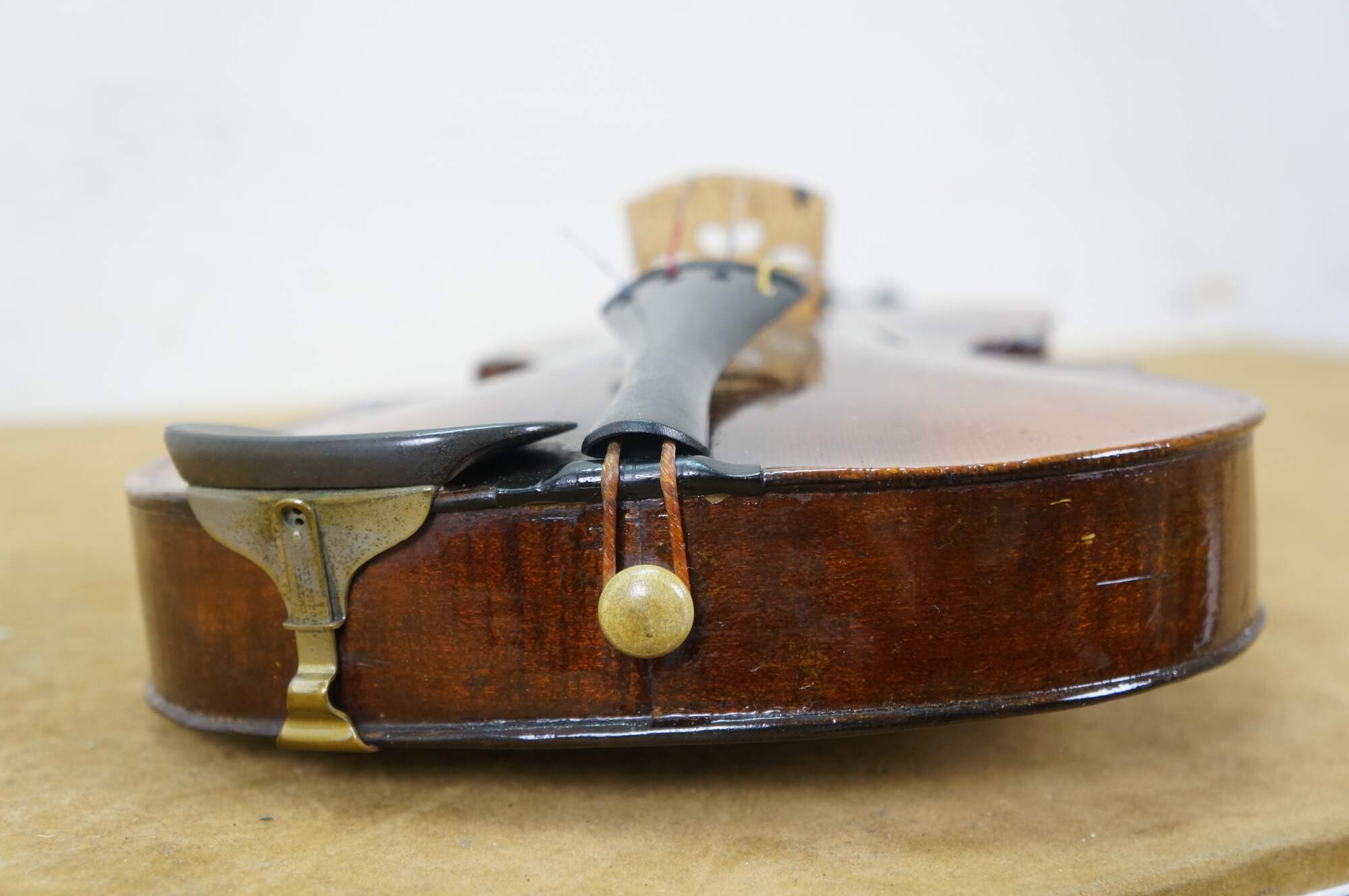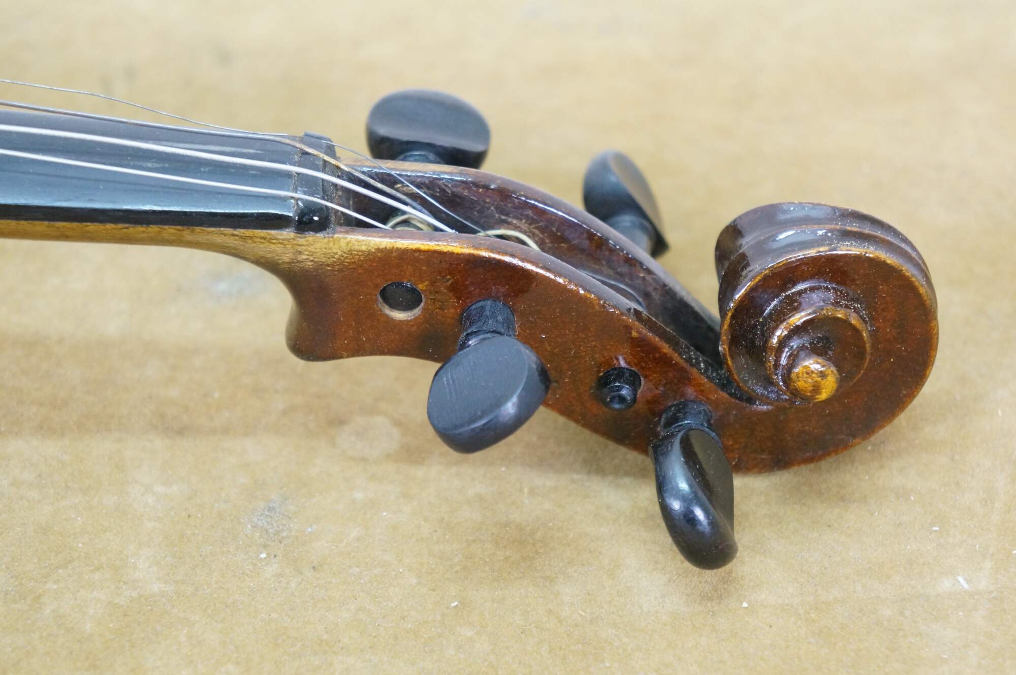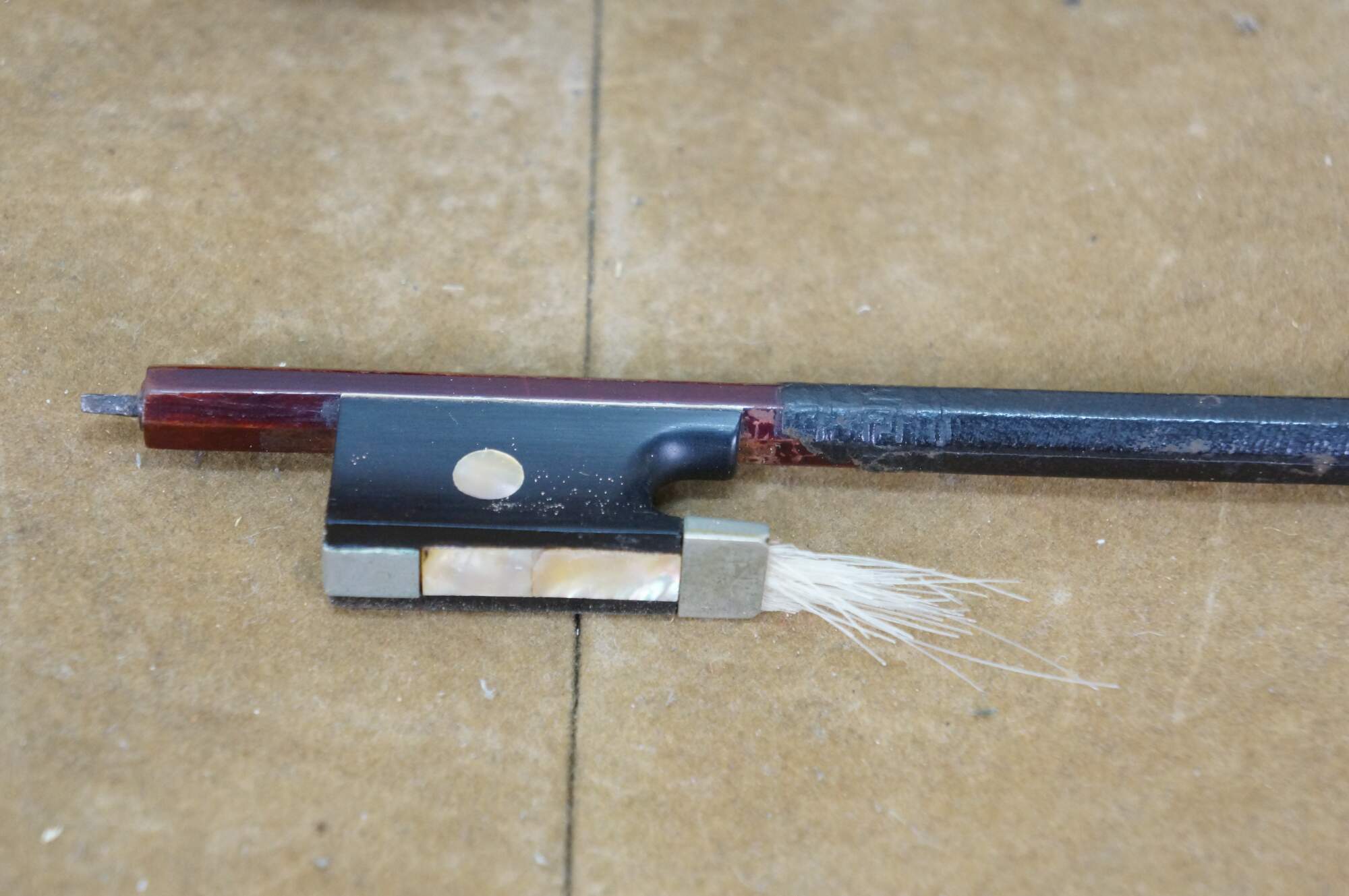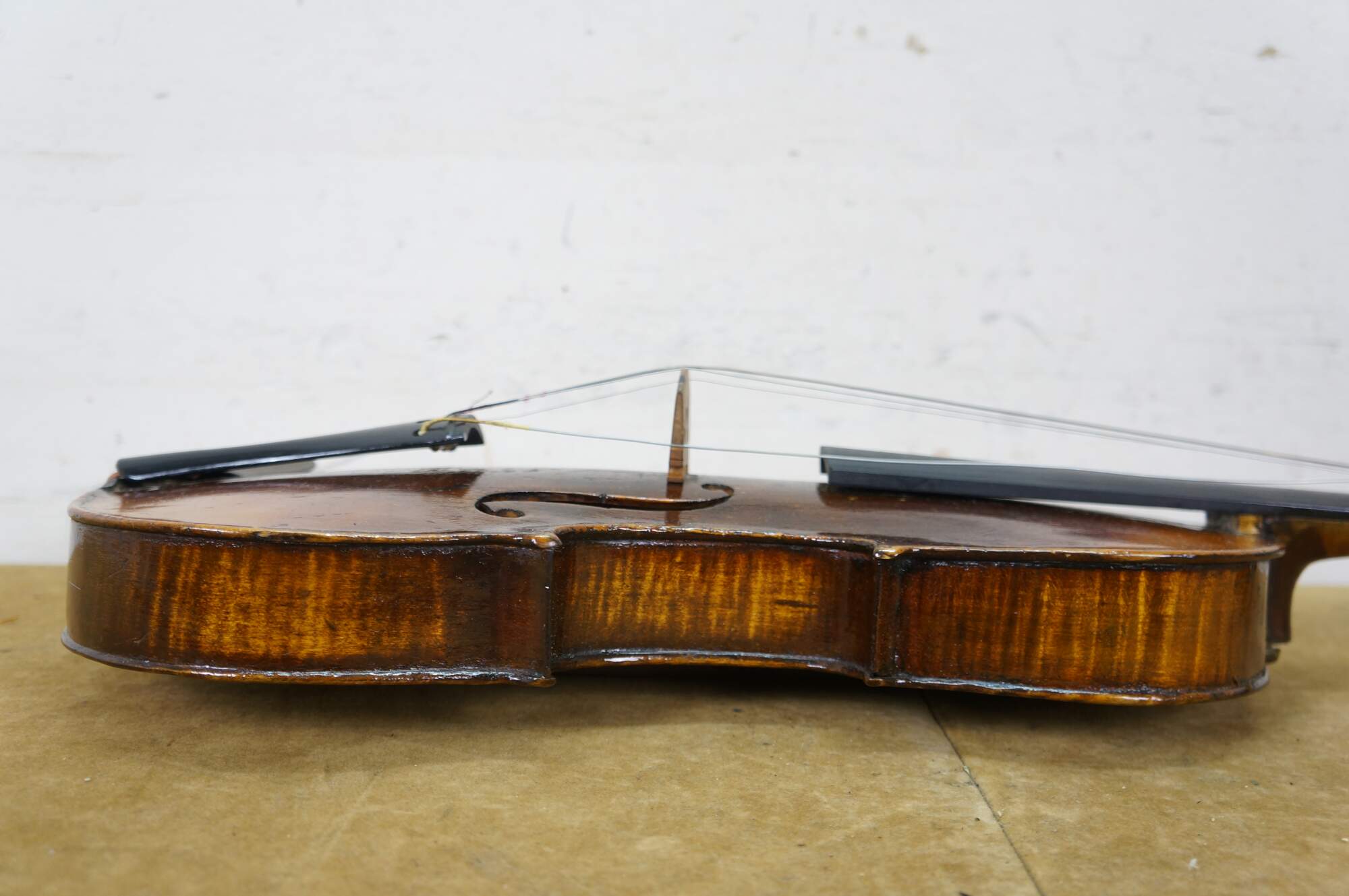 Needs restoration - Bow needs rehairing/missing knob; dings to violin surface; neck cracked/separating; needs work; scuffs/gentle wear to case exterior; one bow holder detached