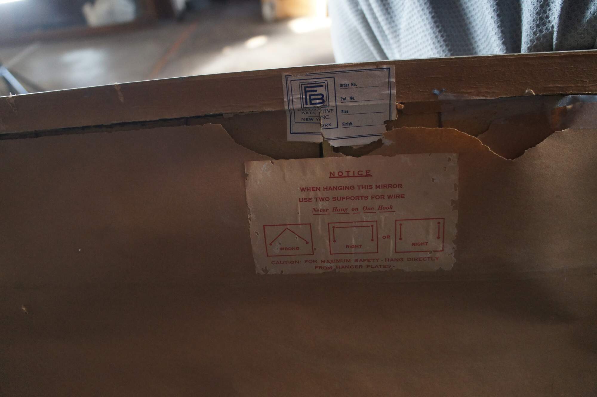 20th Century English Regency Style Giltwood Mirror by Decorative Arts Inc, New York. Circa 1970s. Features a divided framed with beveled glass set between beaded trim with fleur and acanthus detail. Makers mark along back side.
