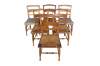 Structurally solid, wear from age and use, finish loss, scuffing, fading, two chairs reupholstered.