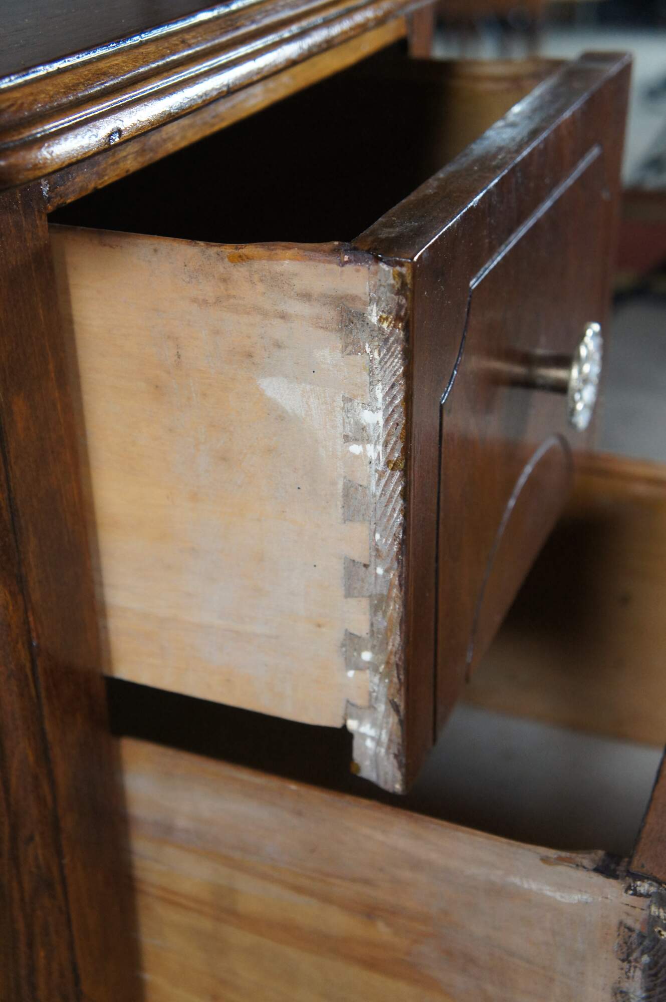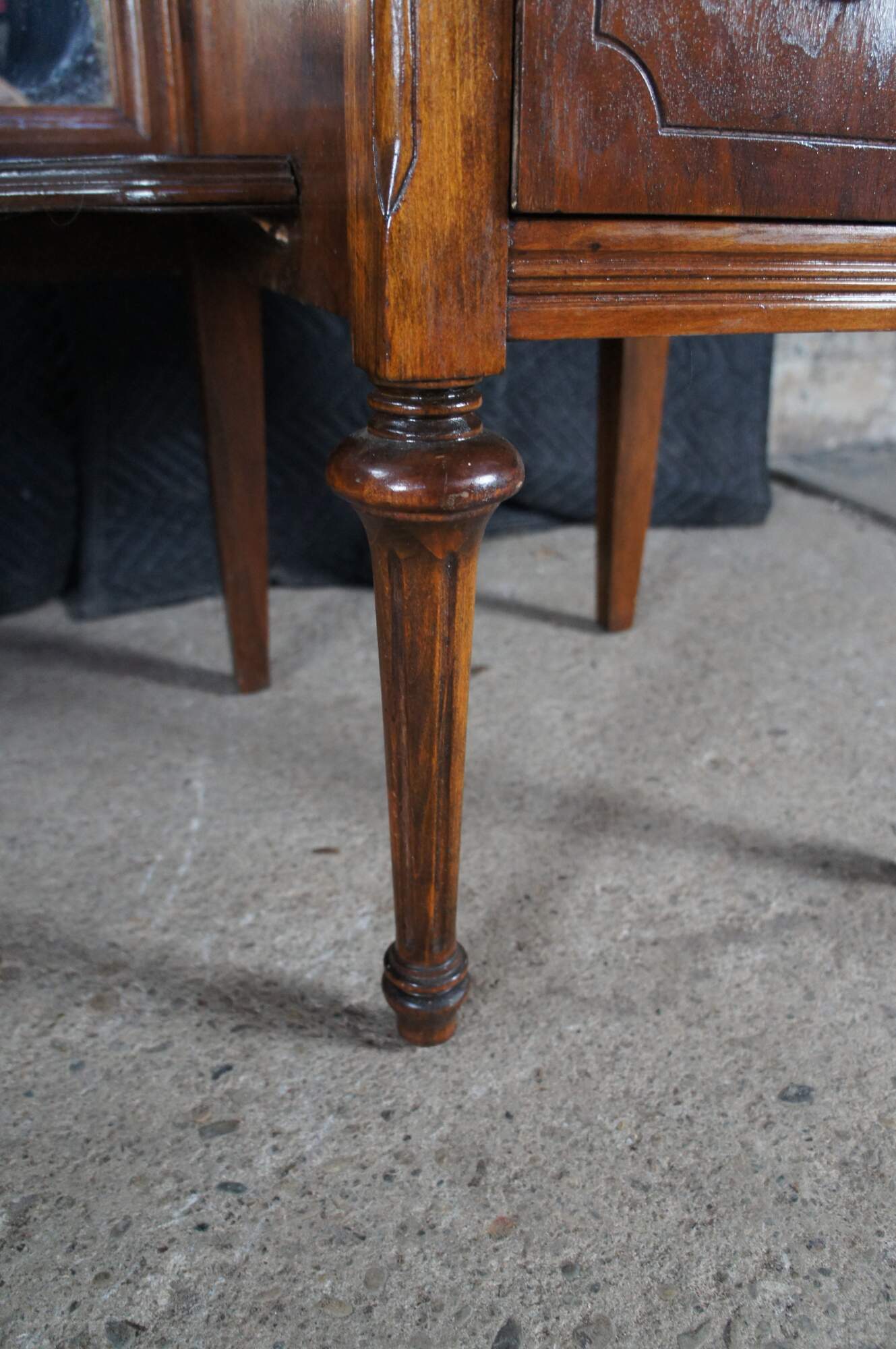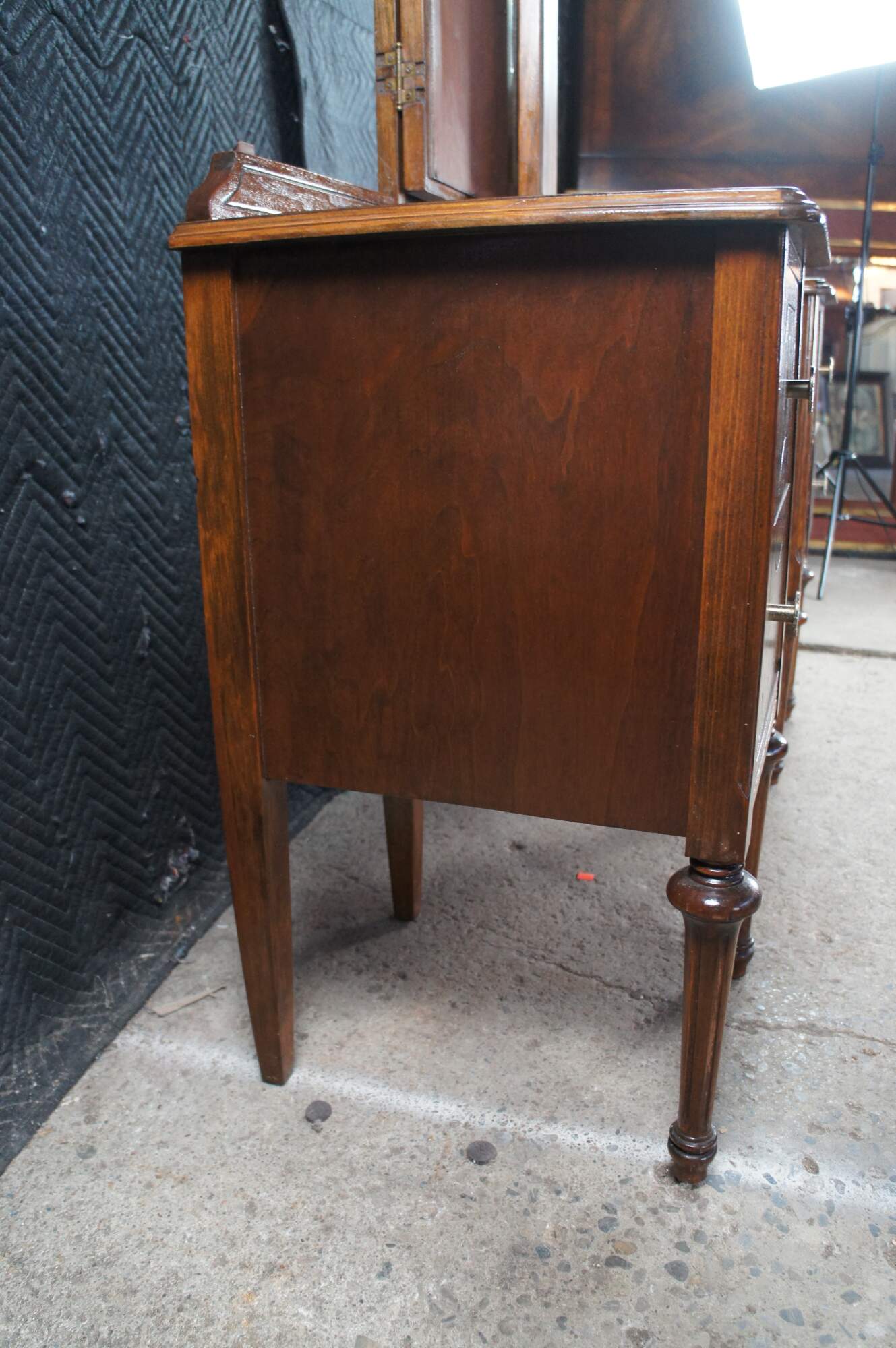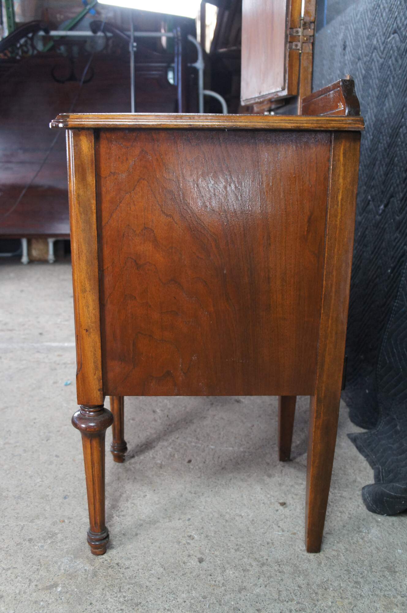 Antique late Victorian, circa 1940s dressing table / vanity. Made of walnut featuring a trifold mirror and four drawers.