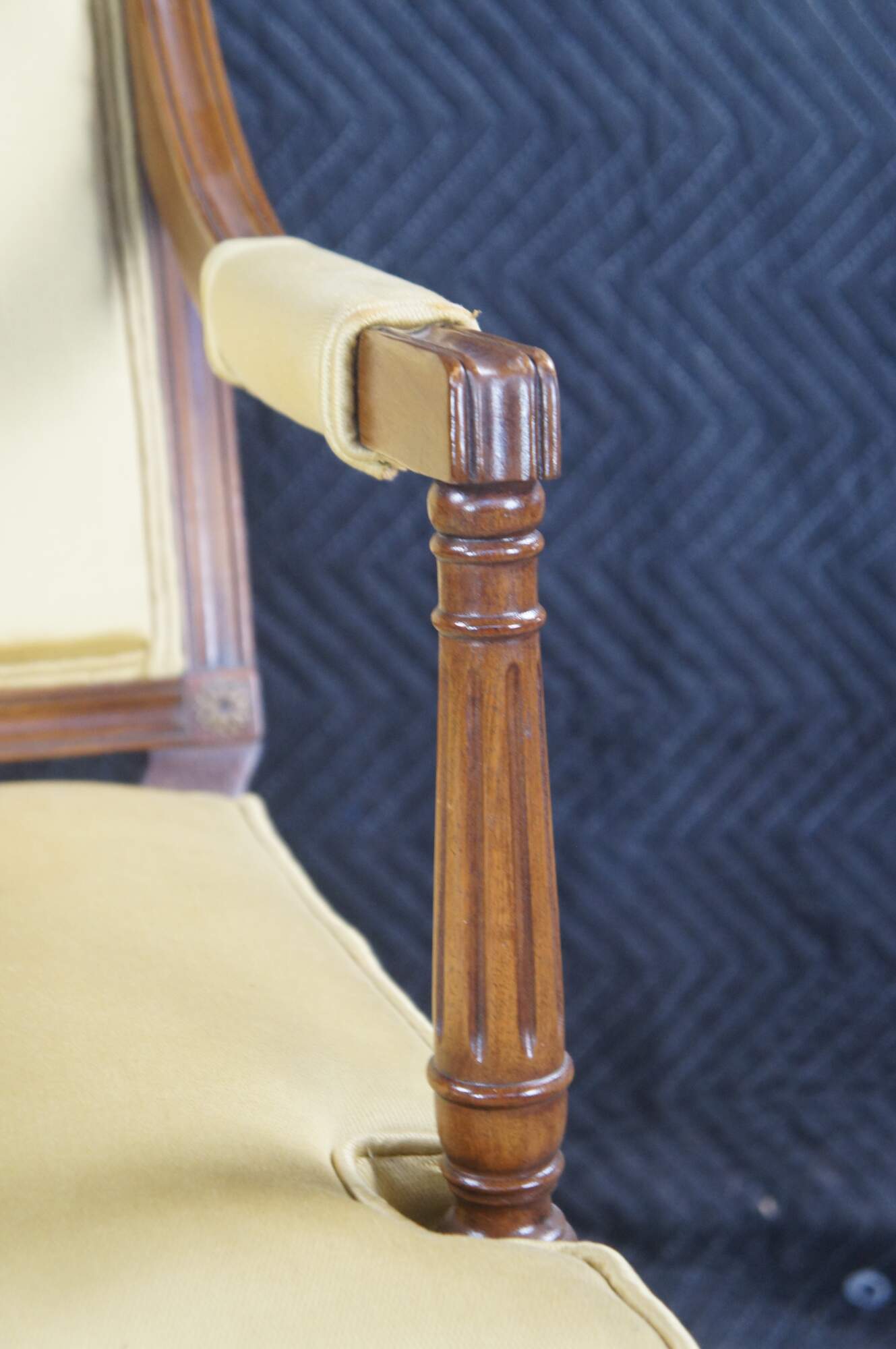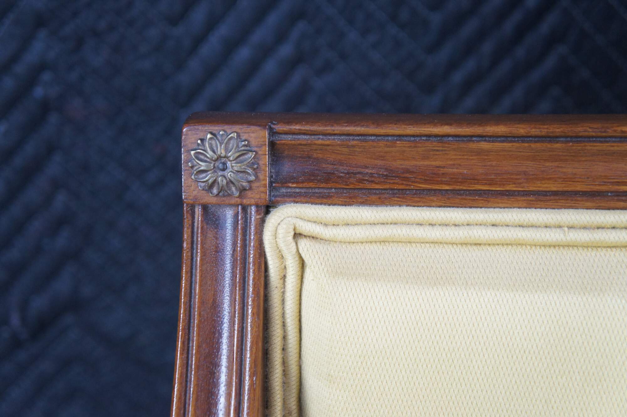Structurally solid, wear from age and use, fading, foam padding in back has decomposed and become stiff and brittle.