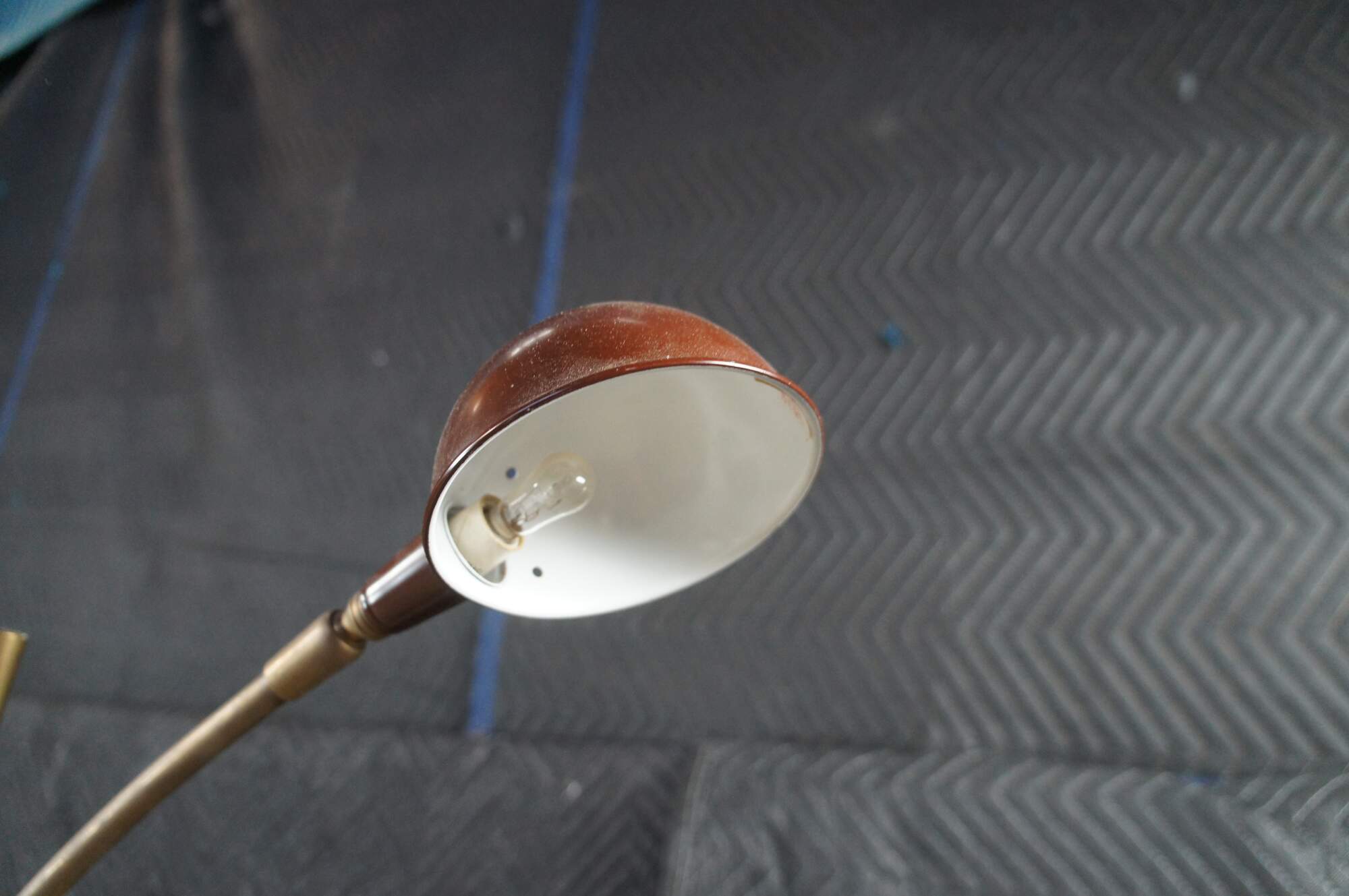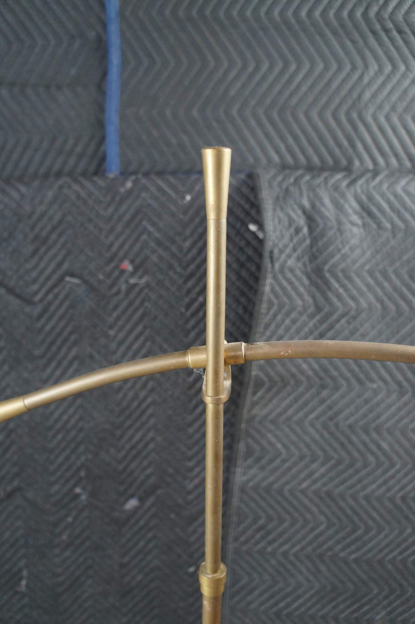 Rare vintage Robert Abbey industrial brass pharmacy / library / reading floor lamp featuring an adjustable swing arm with enameled base and shade.