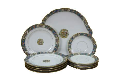 "The story of the Touze family in the porcelain business dates back to 1863 when Michel Touze and his associate Soudanas founded a decorating studio in Limoges at the boulevard des Petits Carmes which Touze continued alone from 1869, moving to brand new facilities the following year. In 1878 his widow took charge of the family business, followed by their son a few years later. The mark J.B.T & Cie was used from 1901 to 1913. During World War I the company ceased activity. T.L.B. (Touze, Lemaître Frères & Blancher) was created after the war, in 1918. The manufacture produced tea, coffee and table sets in several shapes. Some patterns were entirely hand painted. The manufactory participated in the 1925 Modern Decorative Arts Exhibition, in the 1931 Colonial Exhibition and in the 1937 International Exhibition. Like many other factories in the Limoges region, the company ceased activity during World War II. From 1950 onwards the former facilities of T.L.B. were used by the porcelain decorators Georges Jammet and Henri Seignolles who founded J. Seignolles, a factory that still produces high quality porcelain manufactured and decorated exclusively in Limoges. " (Art Deco Limoges Porcelain)