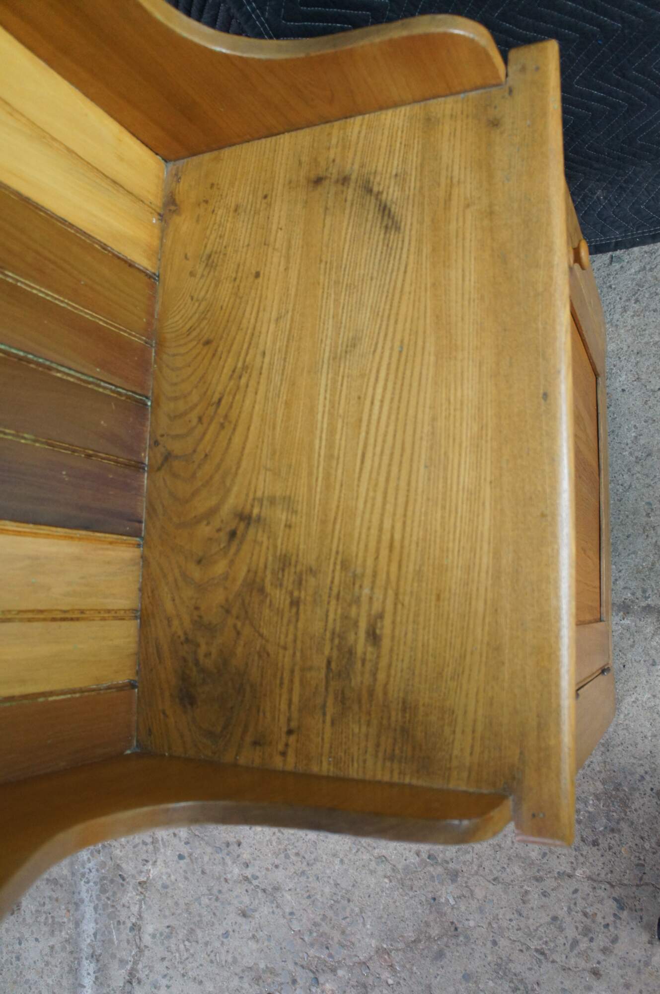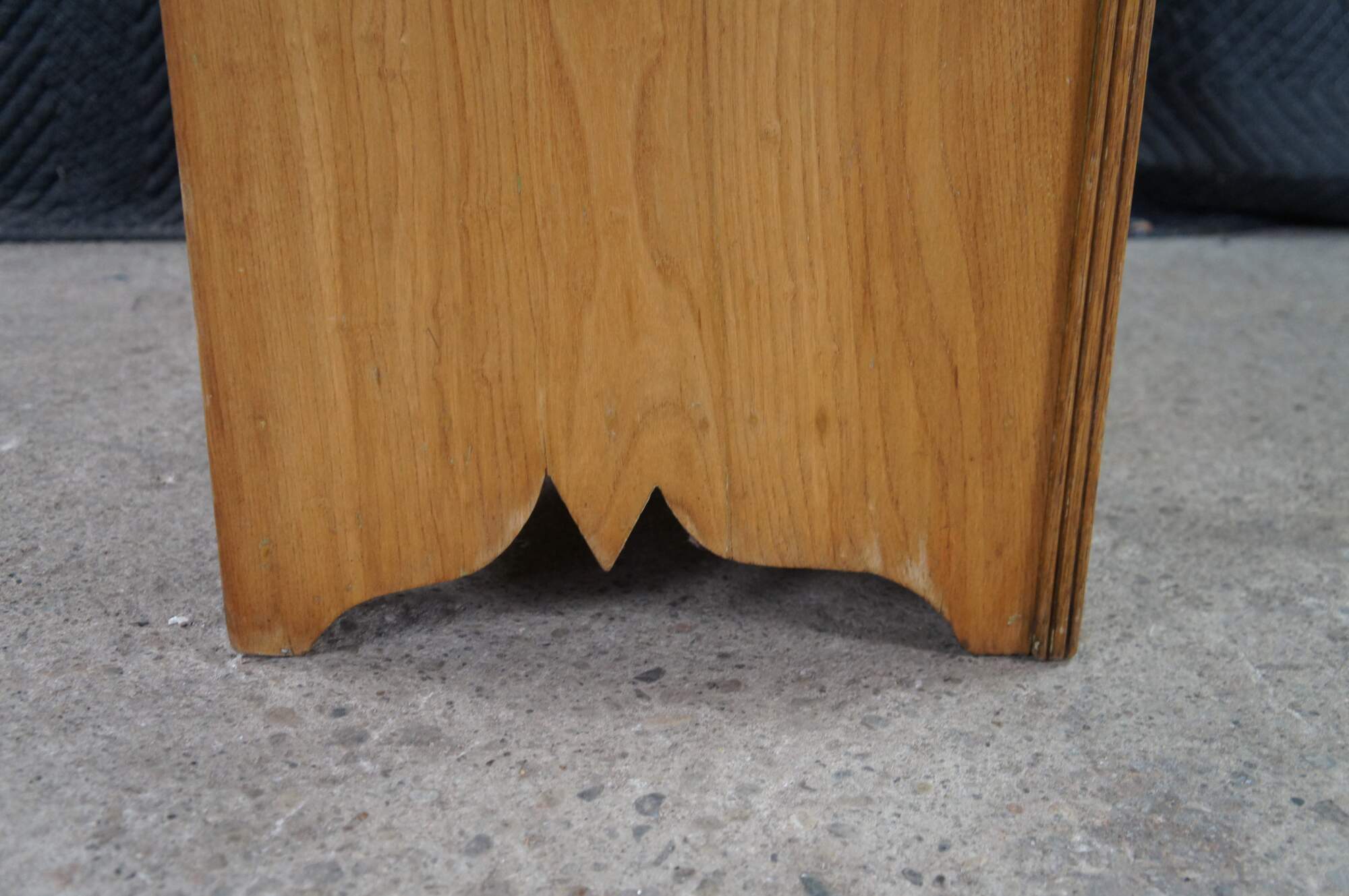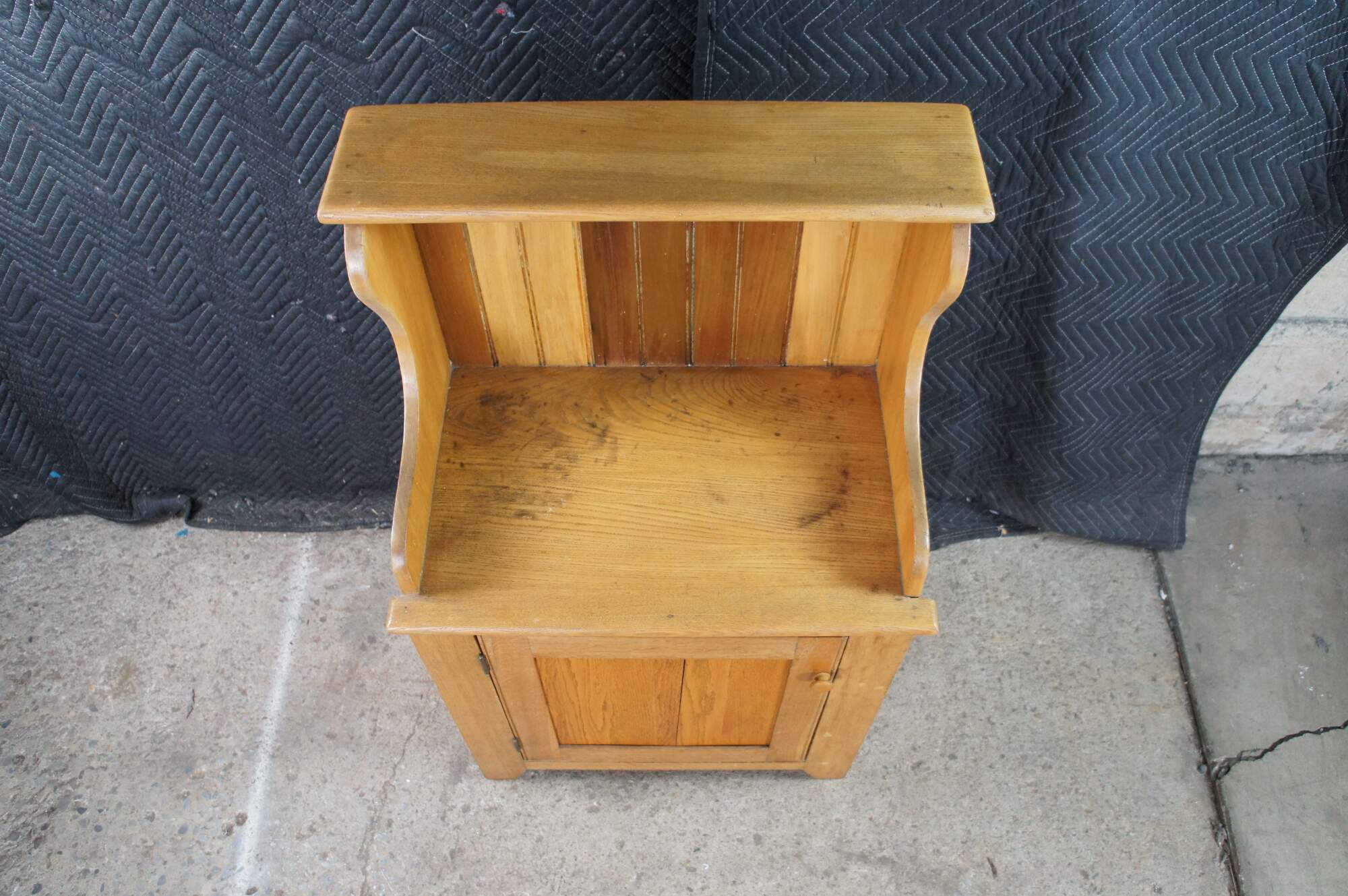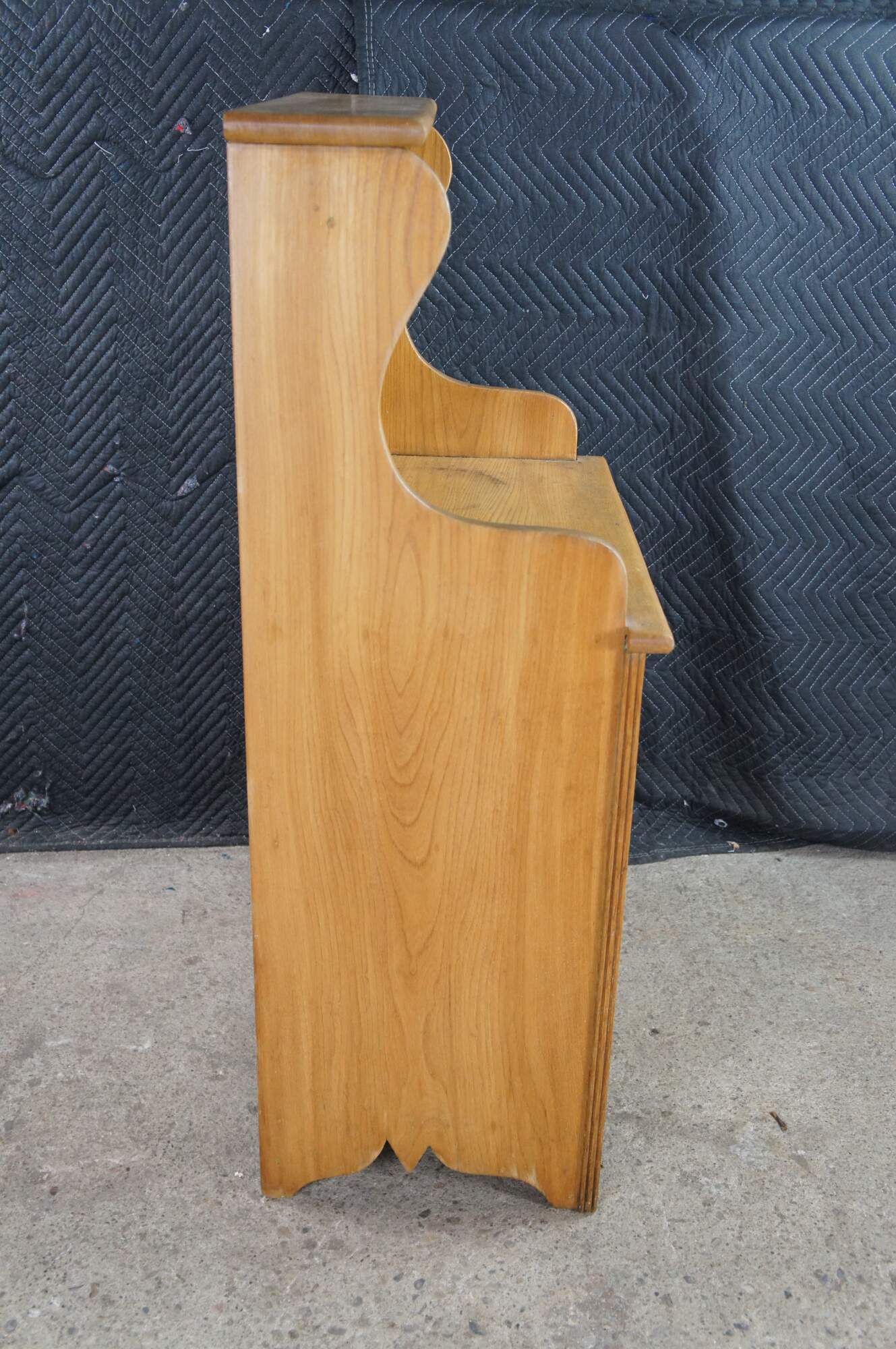 Antique oak dry sink cabinet / commode / stand featuring a two tier serpentine design with large cabinet and workspace with upper shelf.