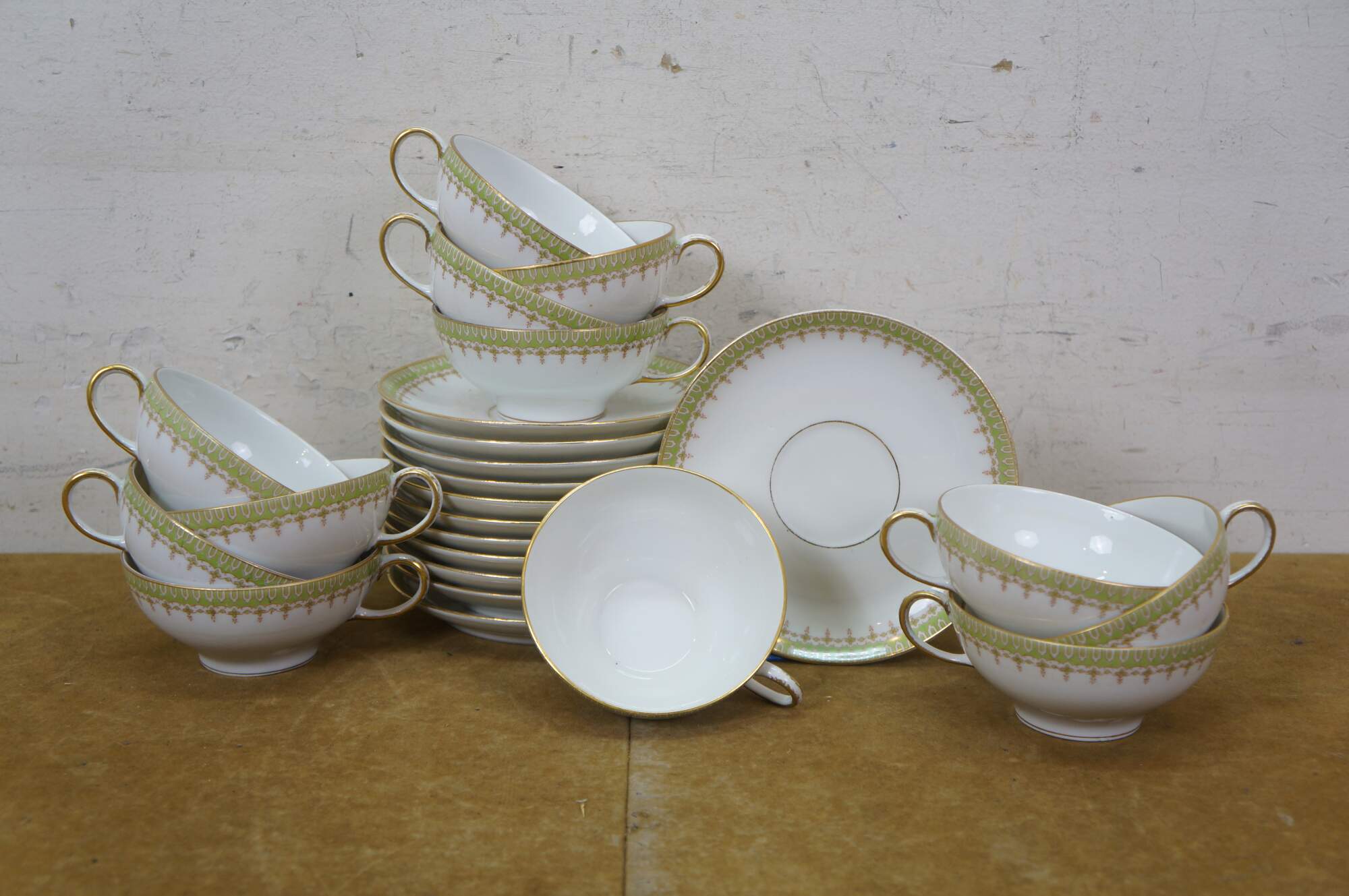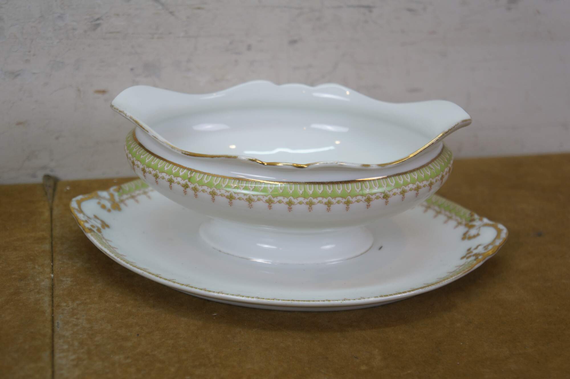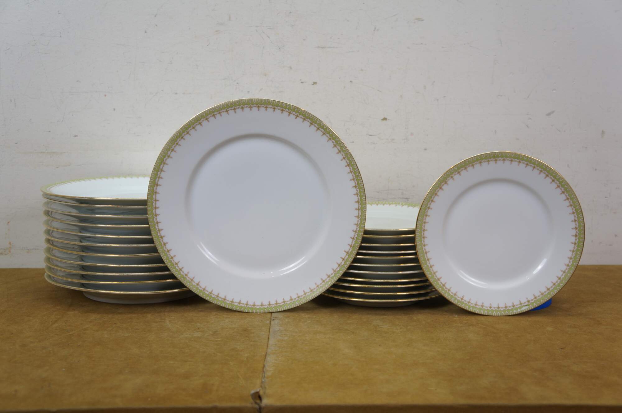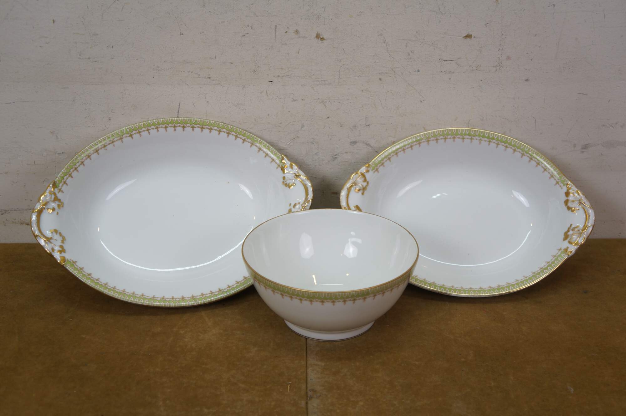 Includes: Lidded Sugar Bowl, 12 Teacups, Creamer, Round Lidded Dish, Lidded Butter Dish, Large Oval Platter, Small Oval Platter, Footed Gravy Boat, Oval Lidded Dish, Small Oblong Dish, Large Oval Bowl, Medium Oval Bowl, 12 Bone Dishes, 12 Saucers, 12 Soup Bowls, 12 Custard Dishes, 12 Salad Plates, 12 Dinner Plates, Round Serving Bowl