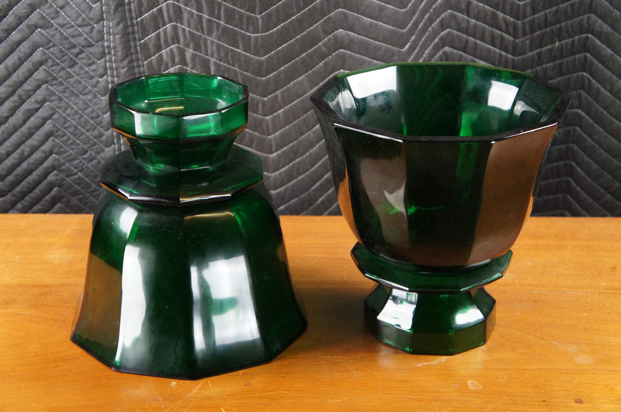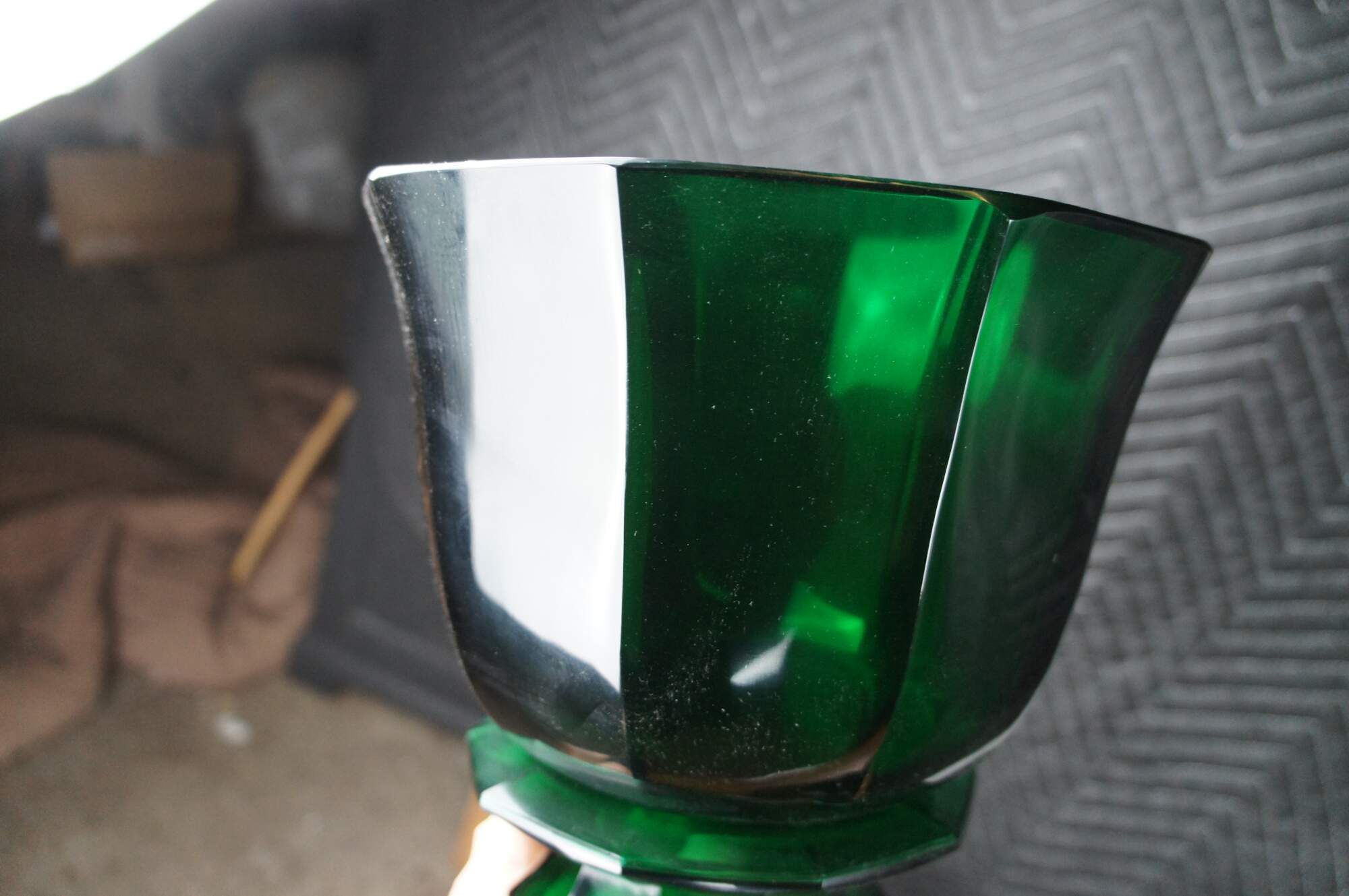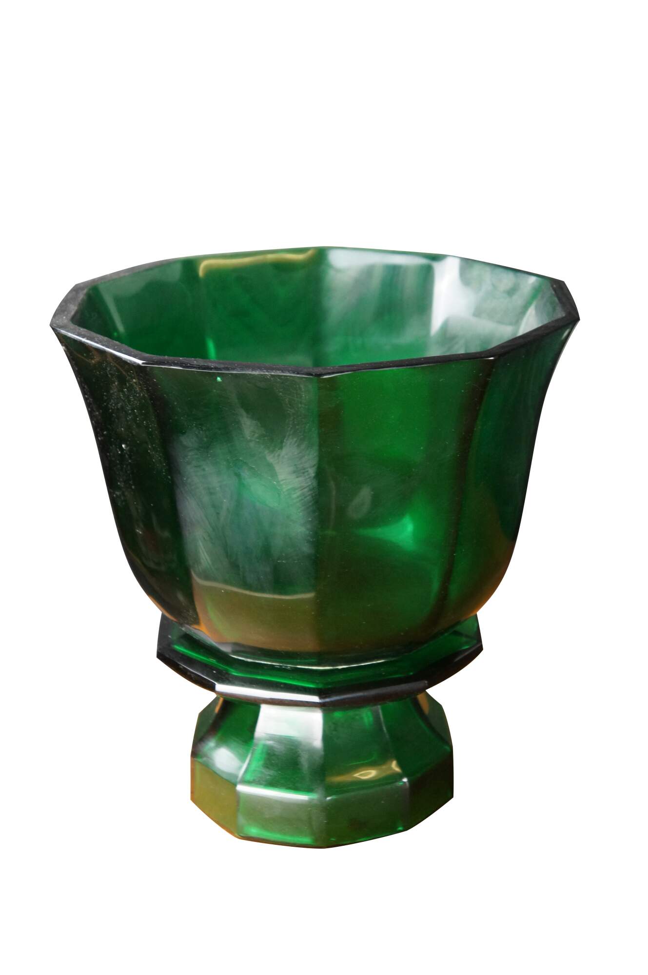 A modern interpretation of a time-honored shape, the Columbia Emerald Footed Vase is made of luminous emerald green glass. The dark green vase is a beautiful decorative accent with or without flowers. We offer the Columbia in several different vase styles.