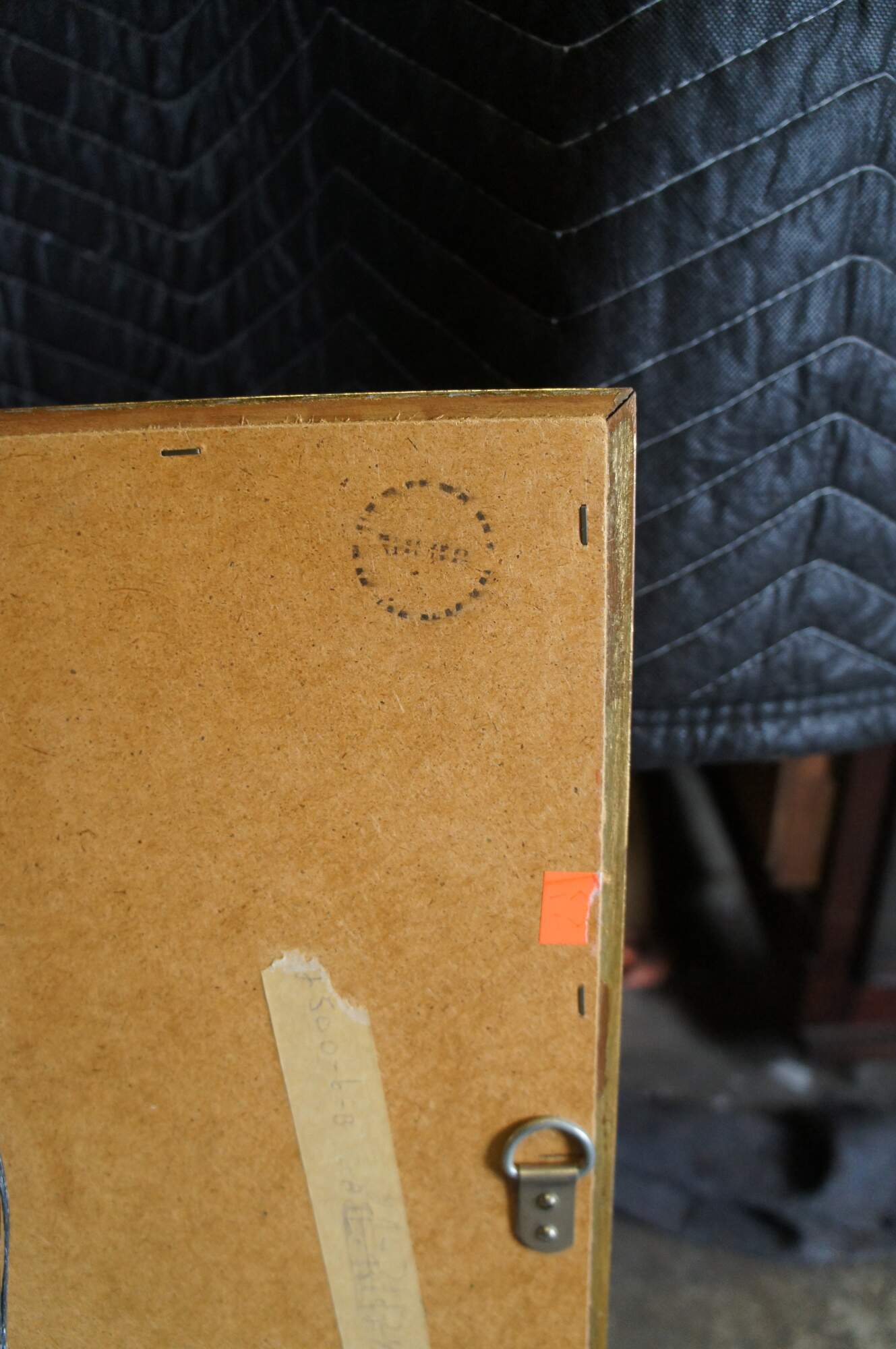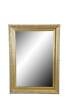 1980s Hollywood Regency style wall hanging mirror. Features a scrolling foliate carved frame with beveled glass.