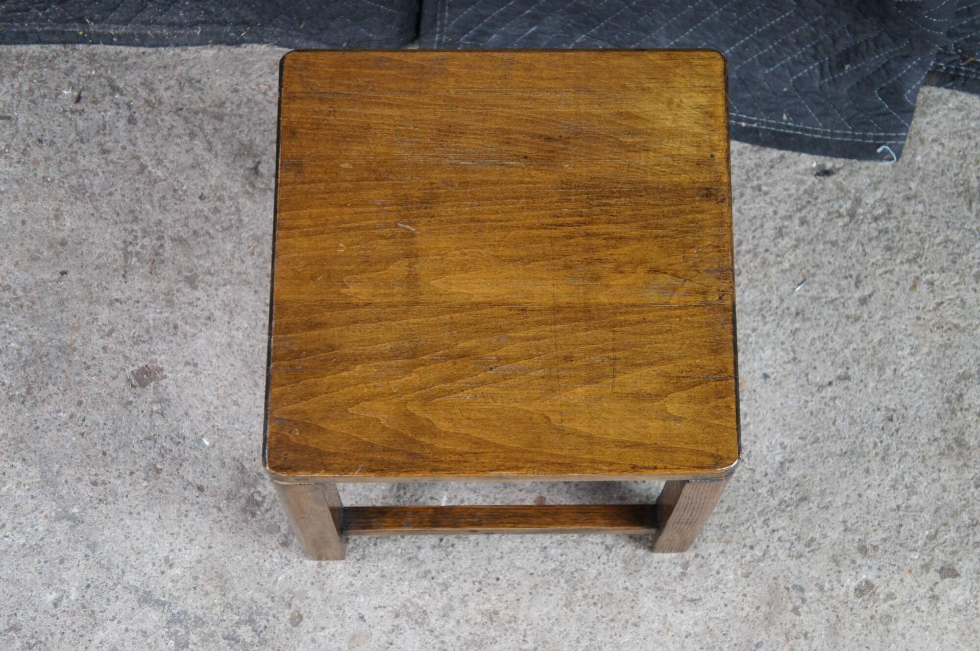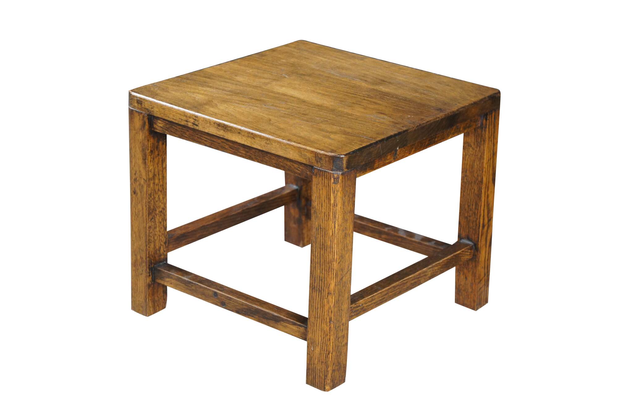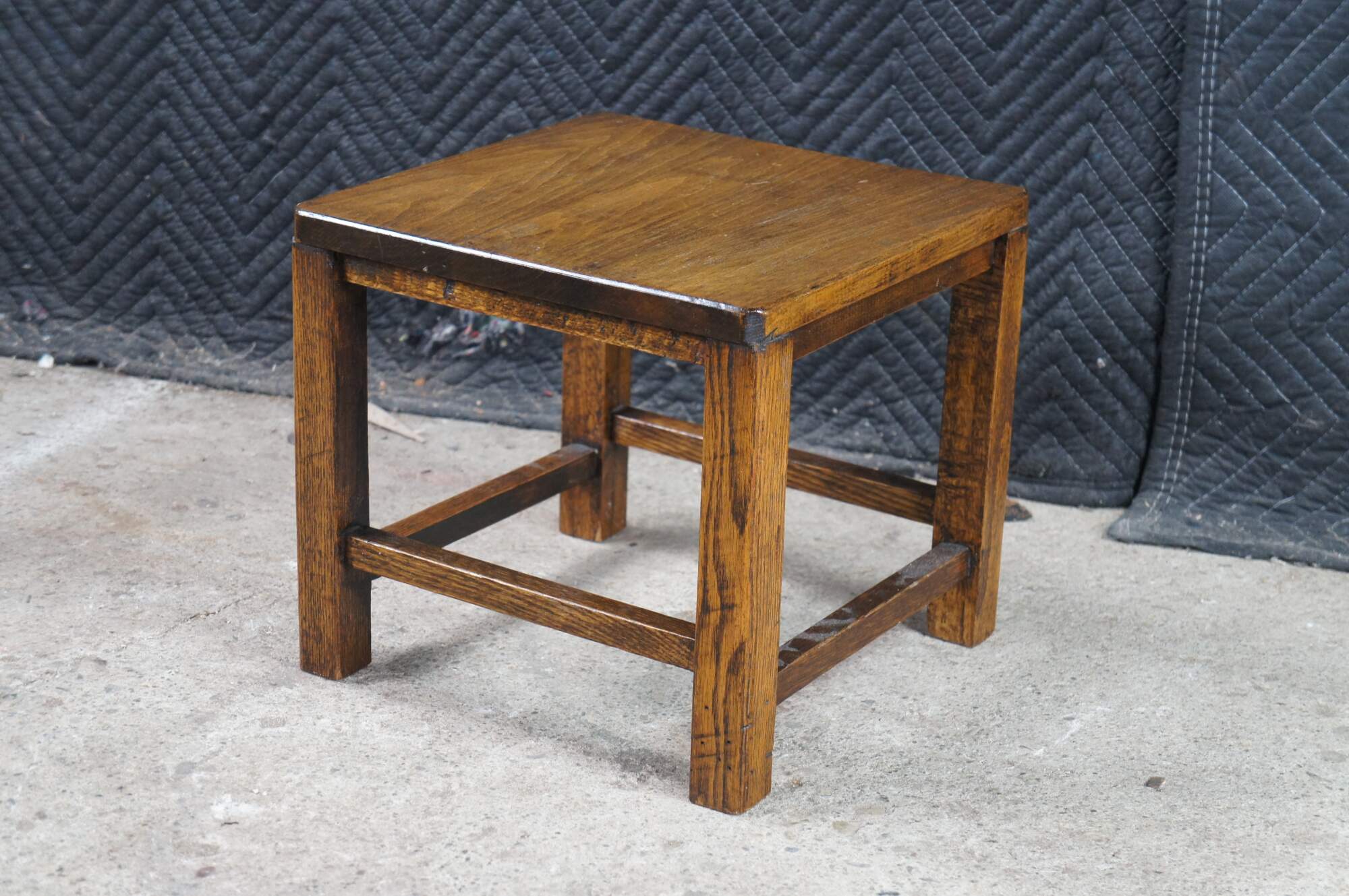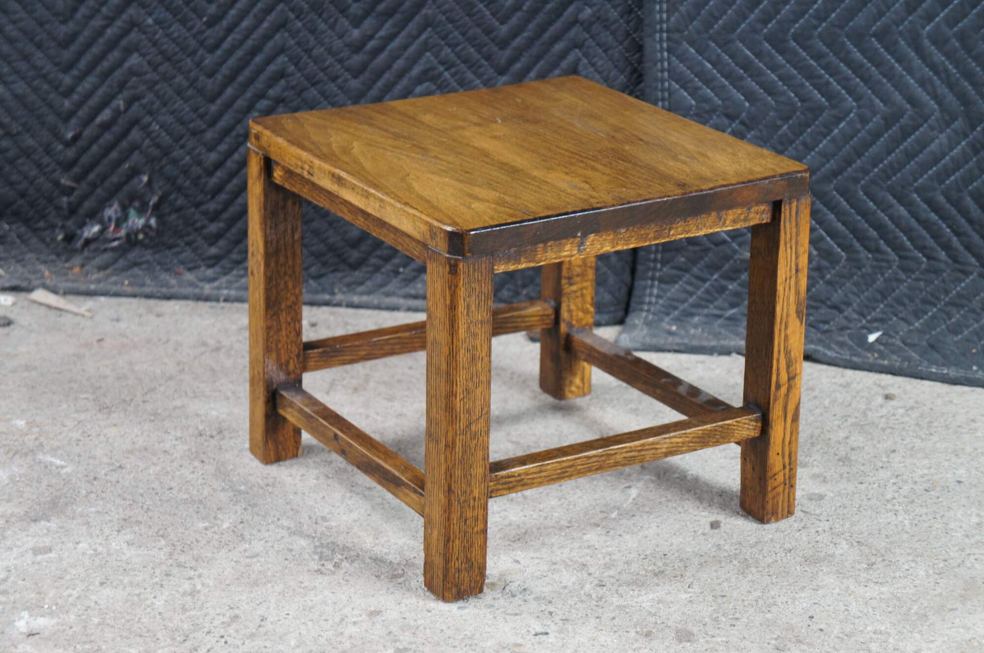 A Mission oak stool, table or stand. Made from oak with jointed legs. Given as a gift in 1929.