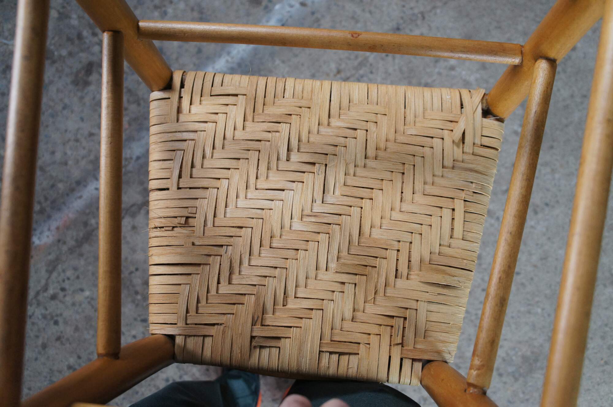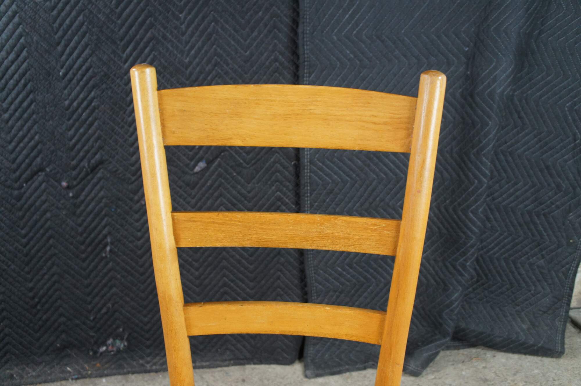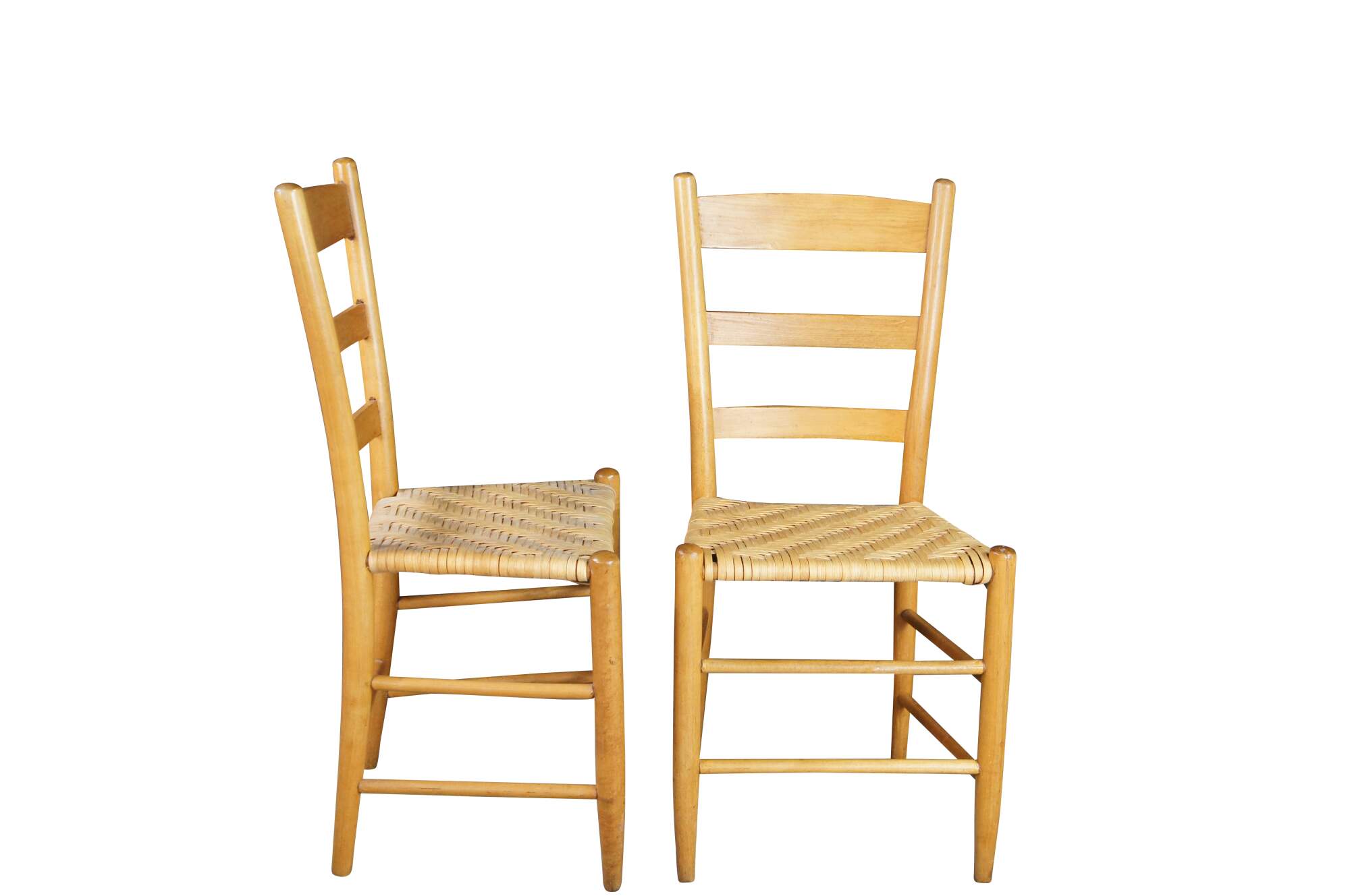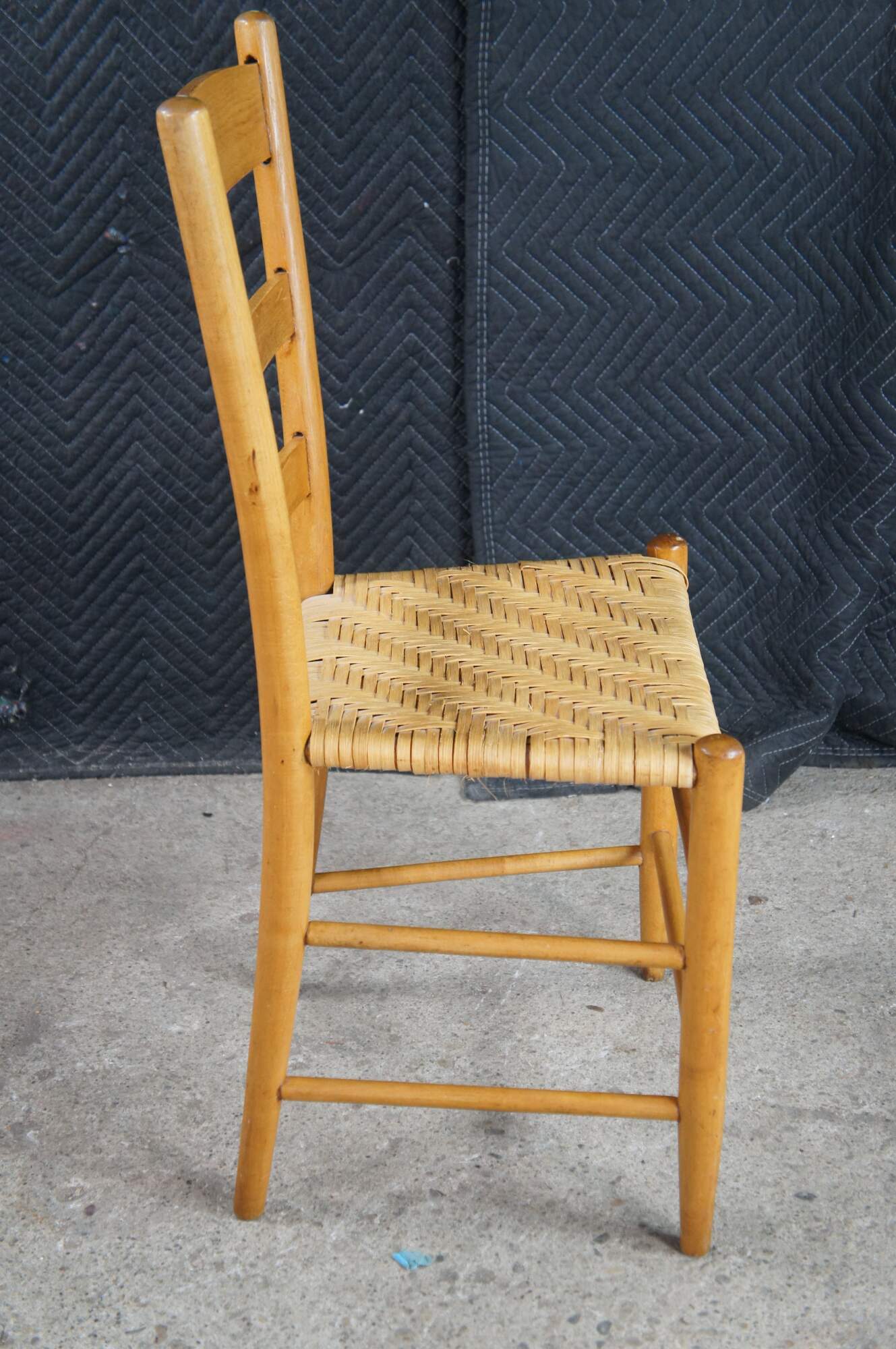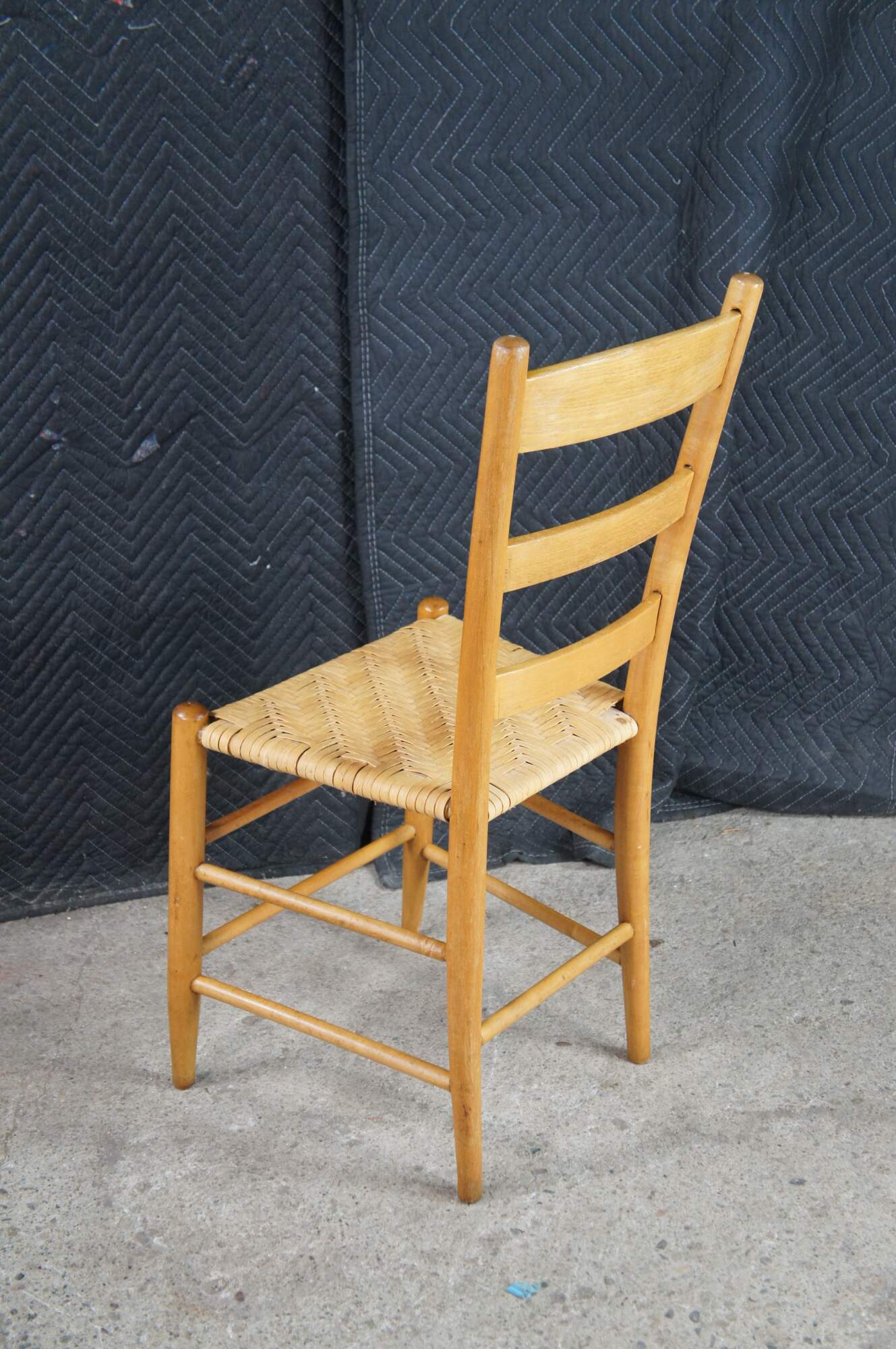 Set of 6 antique Shaker style country farmhouse dining chairs. Made of Maple featuring a woven rattan seat and ladder back design.