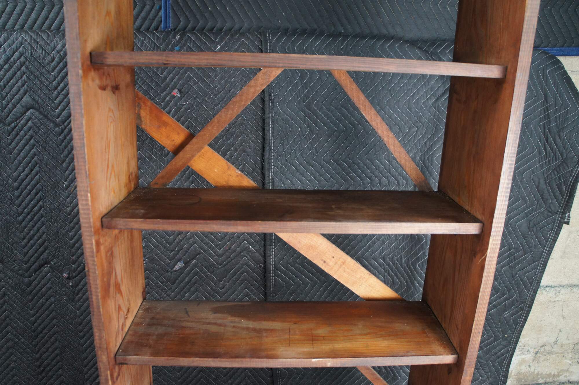 26" x 10" x 58" h, shelves 9", bottom shelf 12"