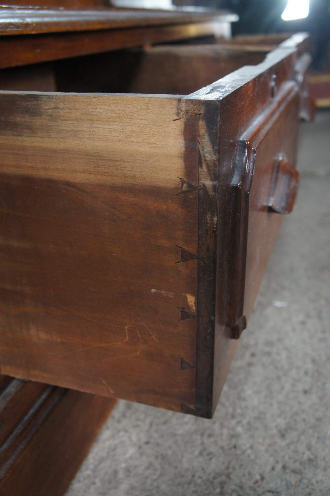 A very large and impressive Antique Victorian stepback library book display case / curio cabinet / showcase. Made of walnut featuring Eastlake styling with large full length / full view doors supported by paneled base with three drawers.