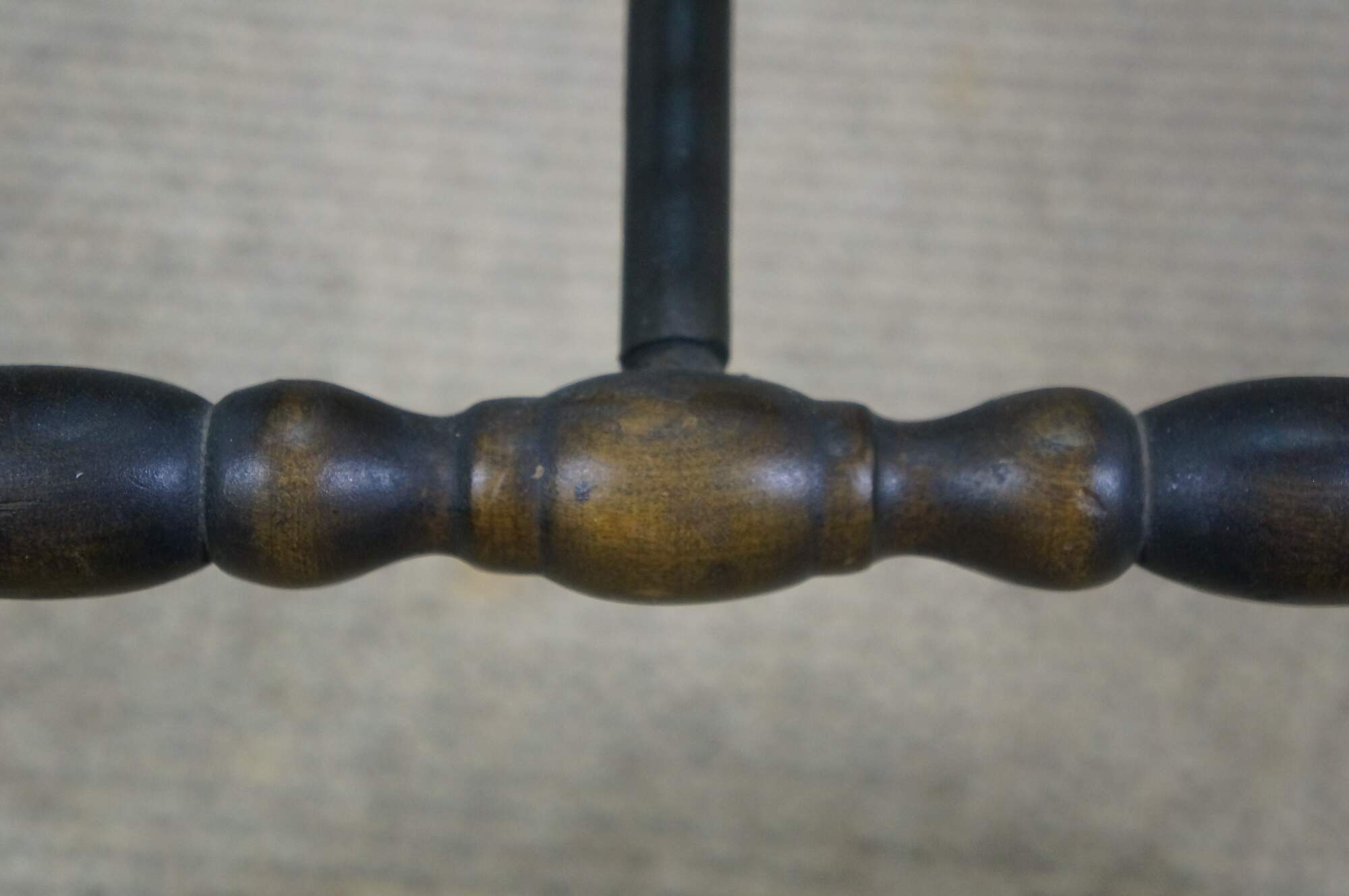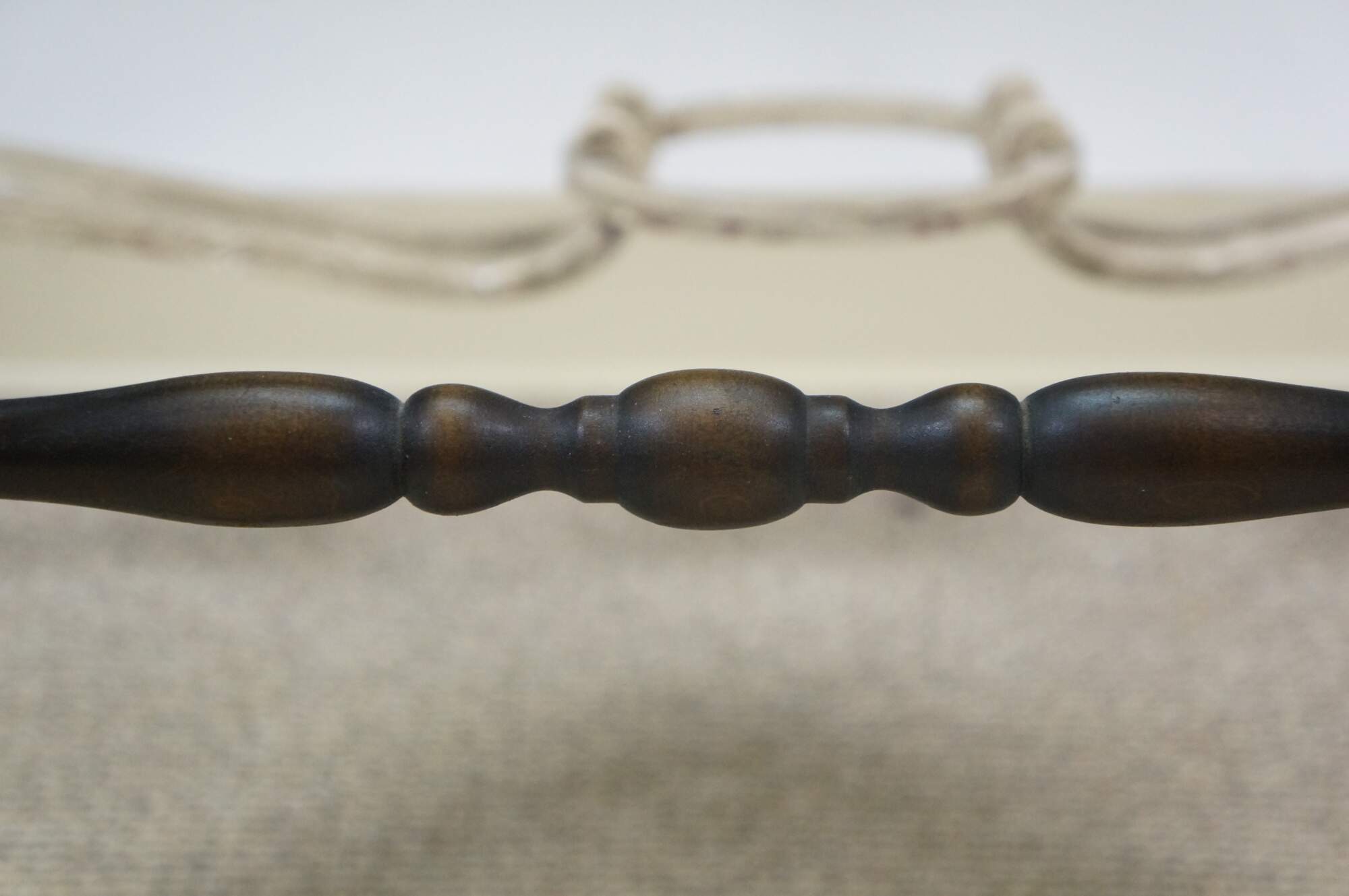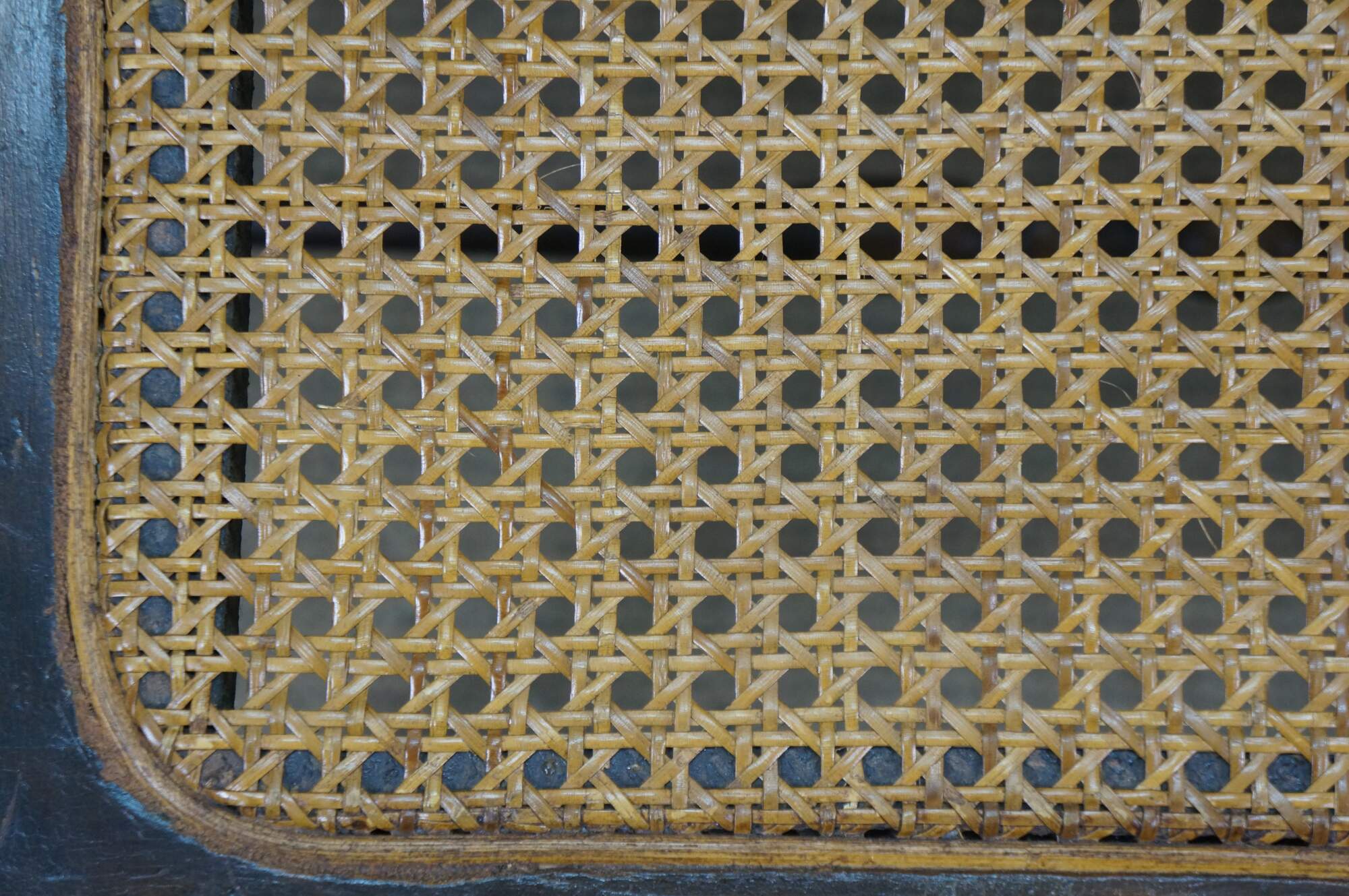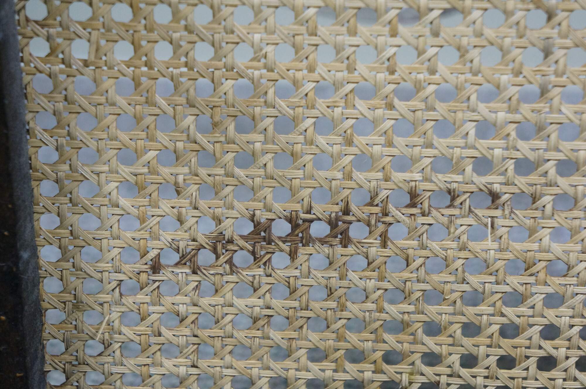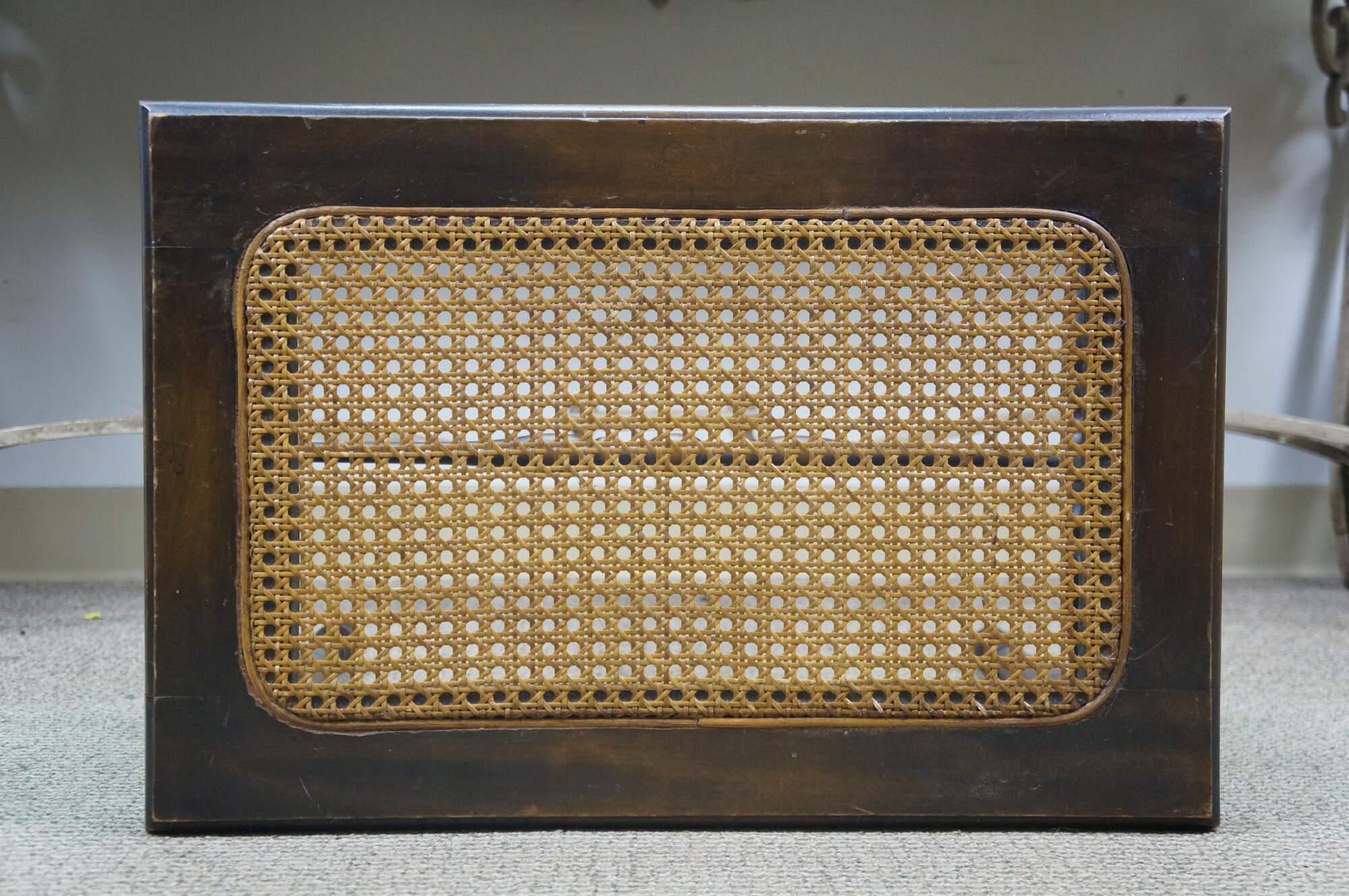 Circa mid 20th century hardwood piano / vanity bench / stool - rectangular form with turned legs and stretcher with caned seat.