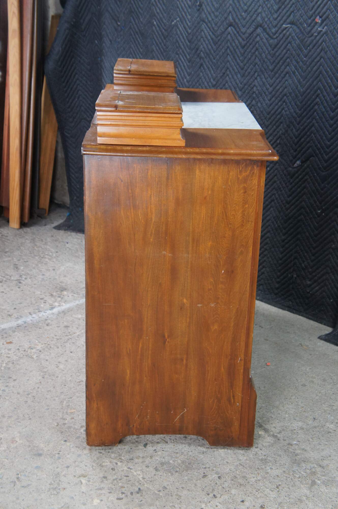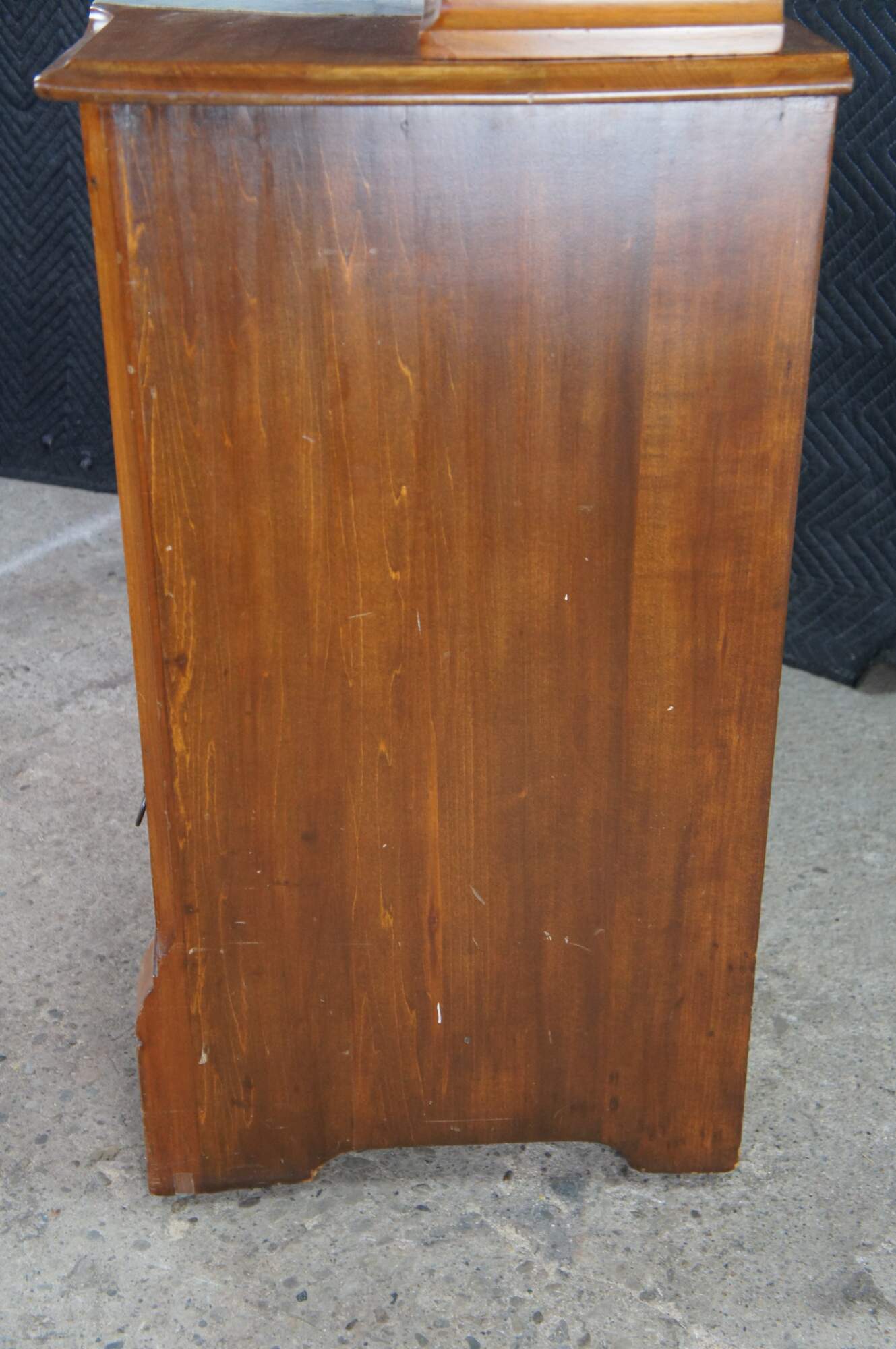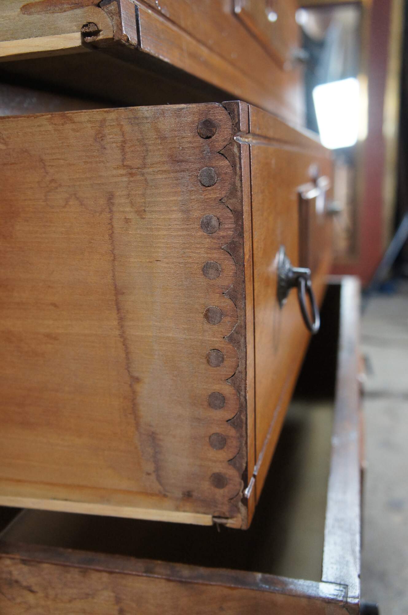 The Knapp joint was developed during the late Victorian Era in post Civil War United States. Patented by Charles Knapp of Waterloo, WI in 1867, the Knapp Joint was a huge breakthrough for the furniture industry; machines called routers made circular cuts in wood far quicker than by hand. The Knapp Joint is particularly unique to furniture as it was only used from 1870 until 1900. It is also referred to as the Pin and Cove Drawer.