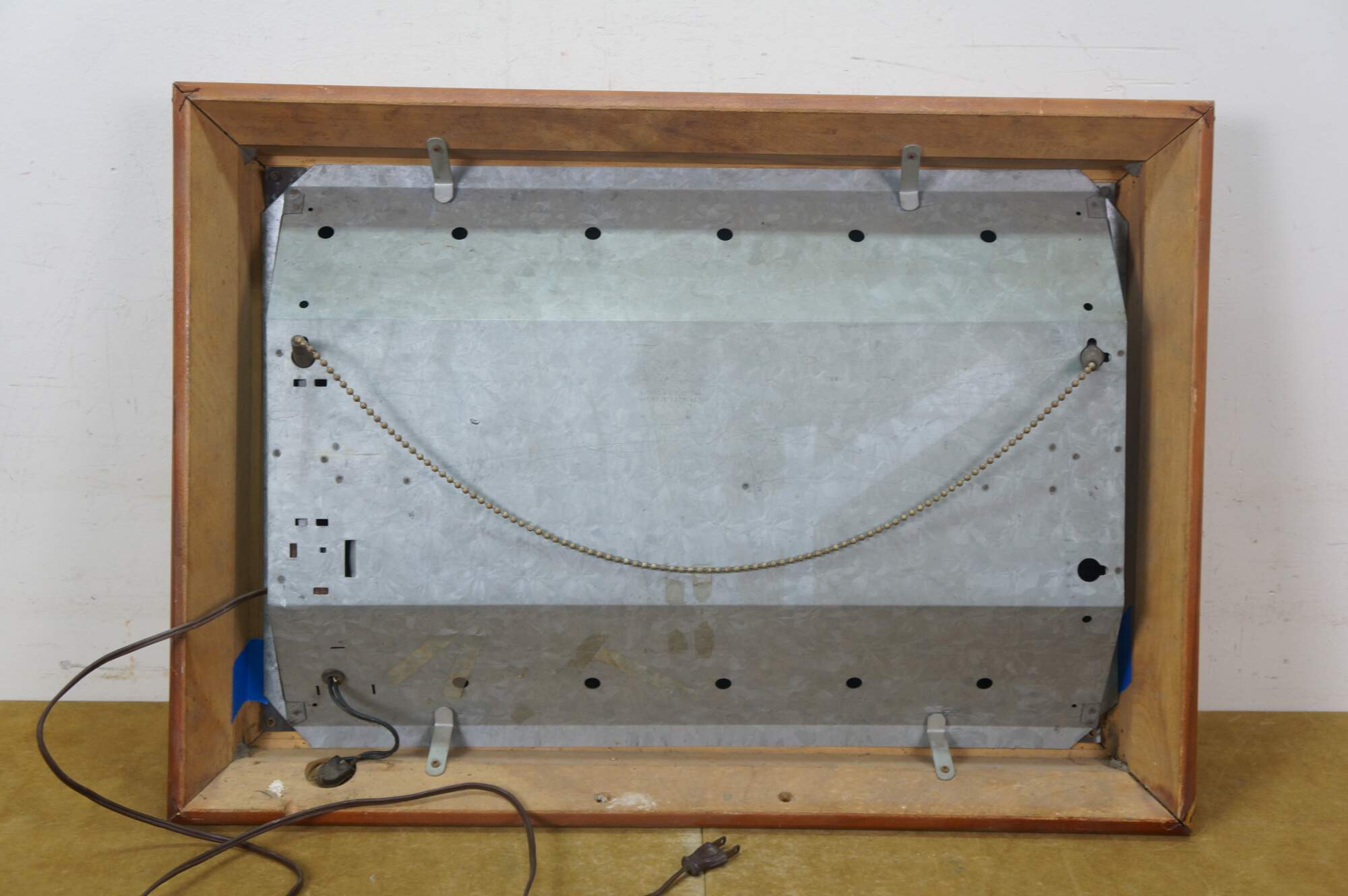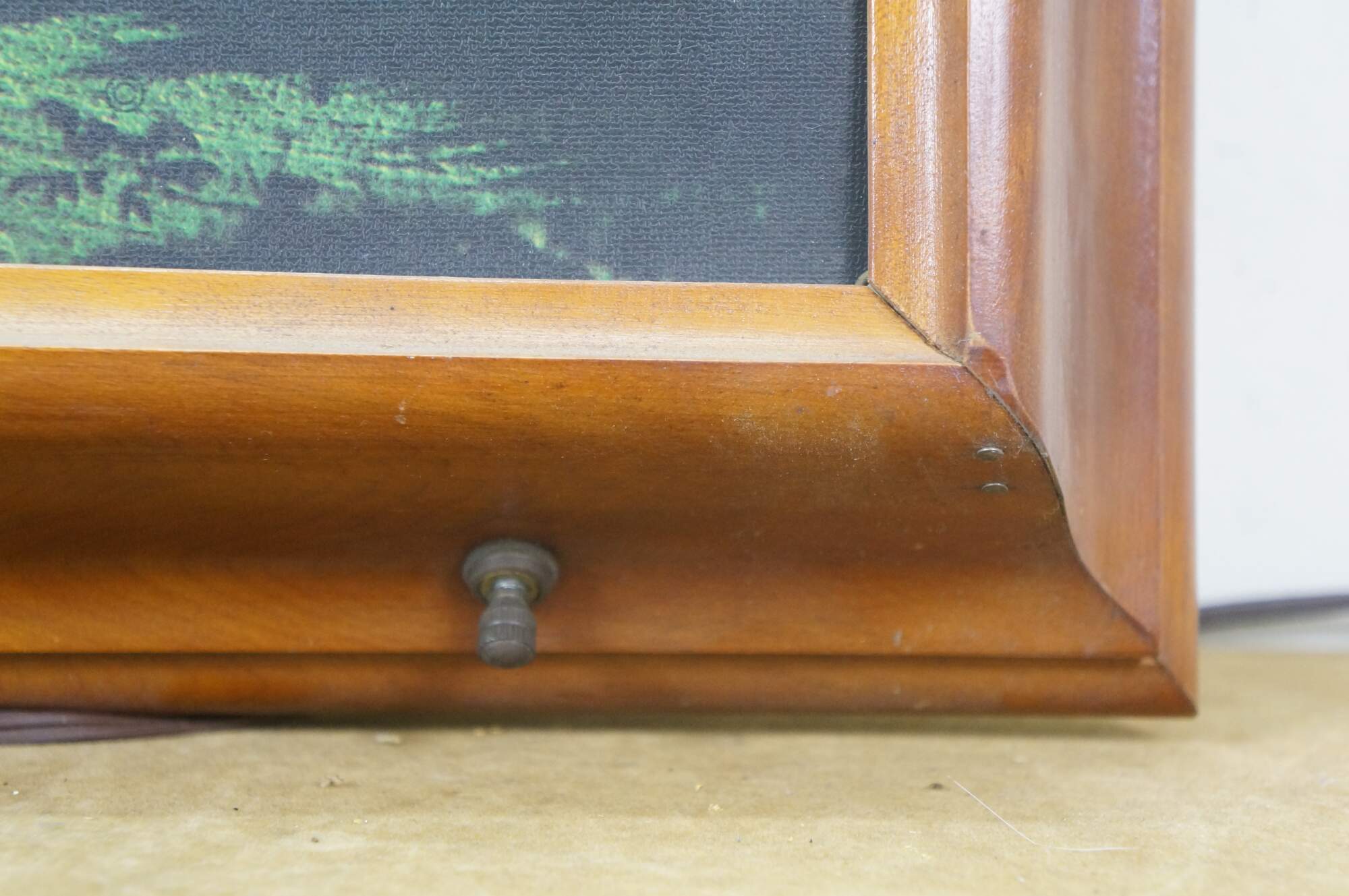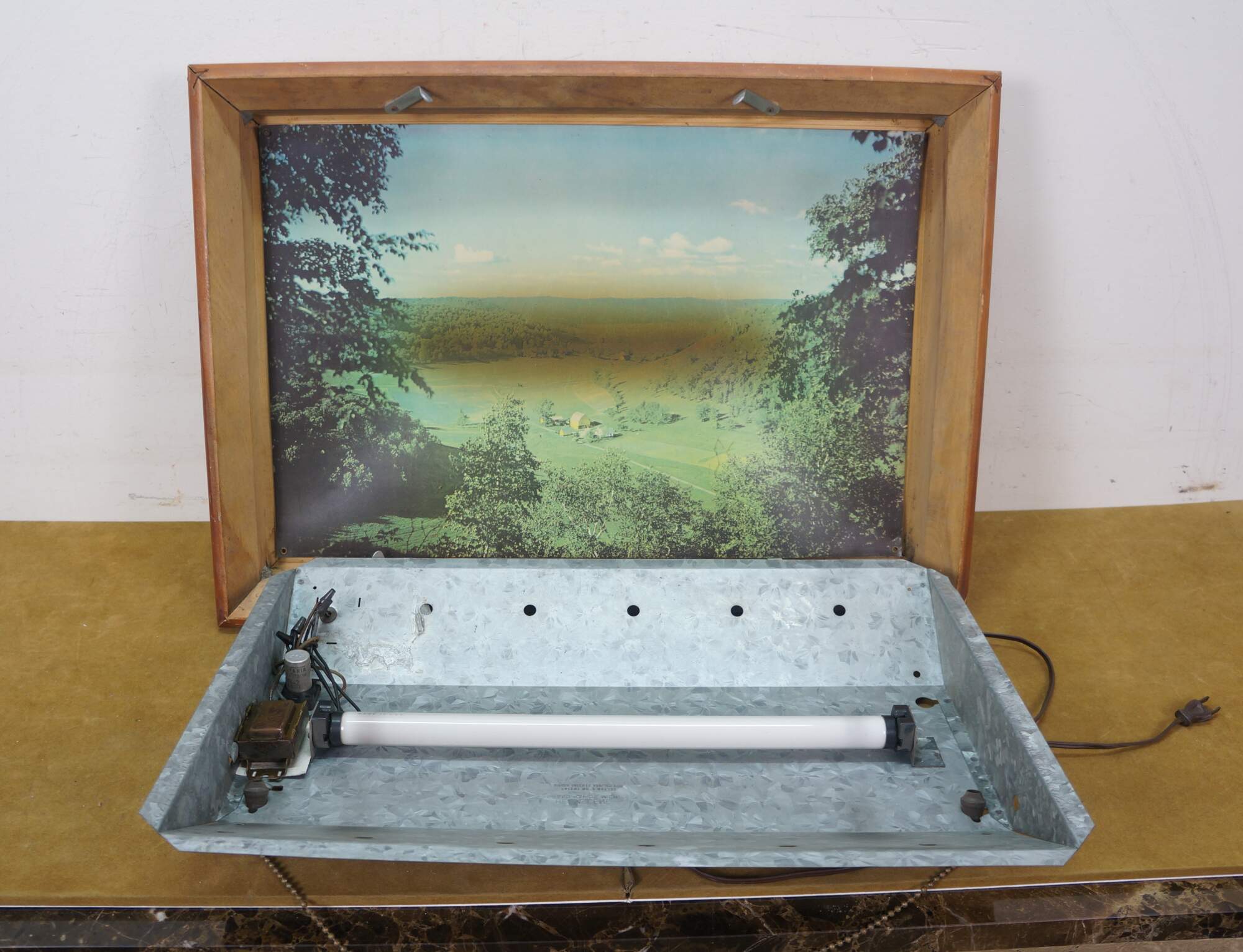 Mid century Helmscene illuminated / light up / backlit country landscape scene with barns and farmhouses in the valley. Made by Helmscene in Grand Rapids Michigan.
