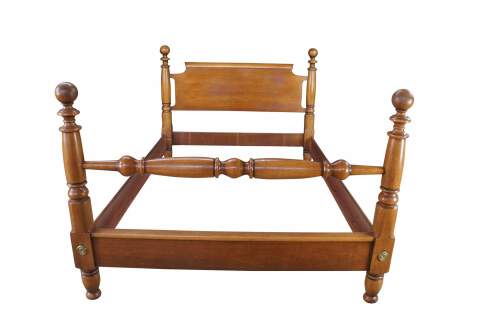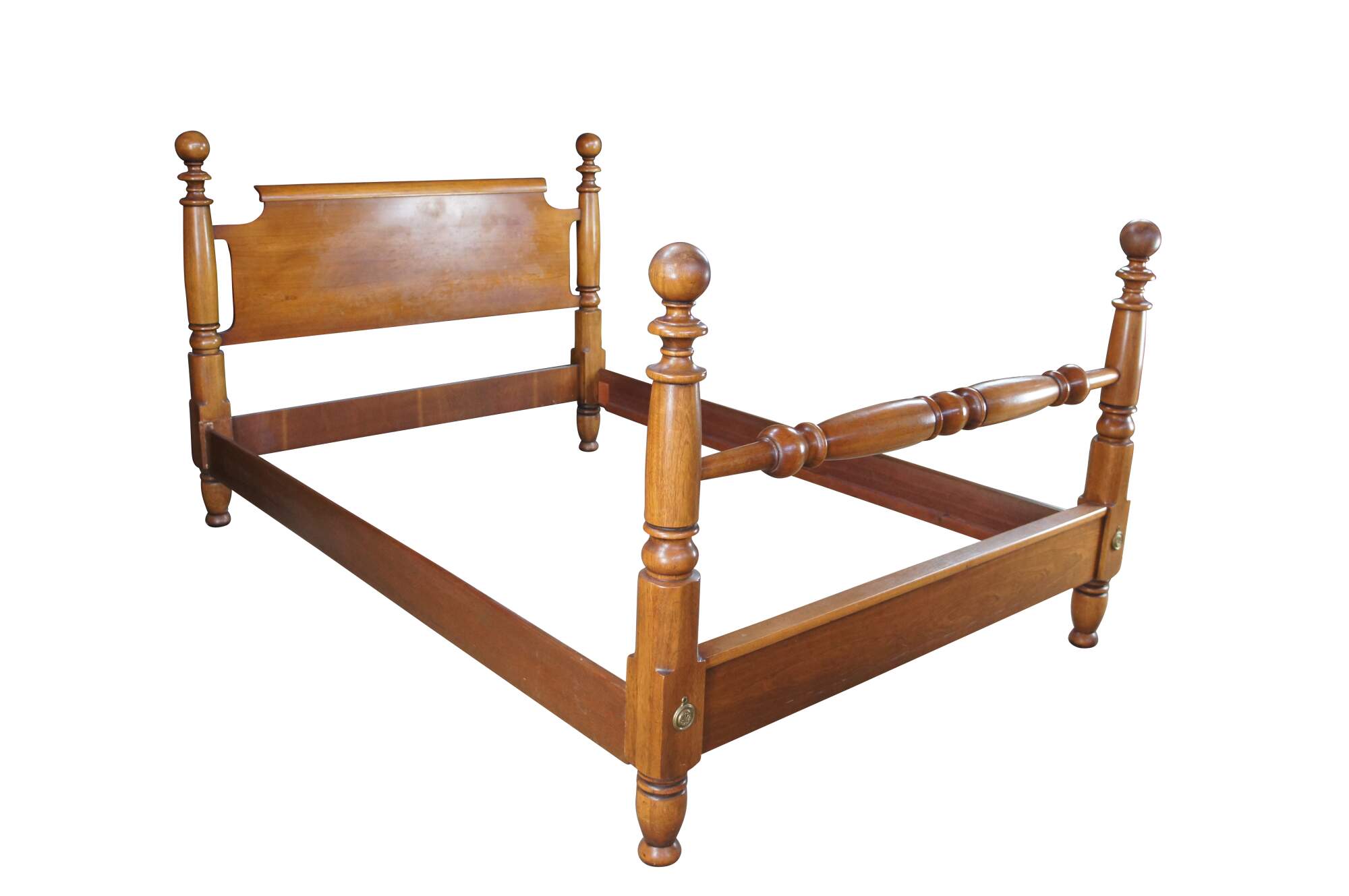 Mid century Early American style full size cherry cannonball poster bed. Circa 1962. 607-581.