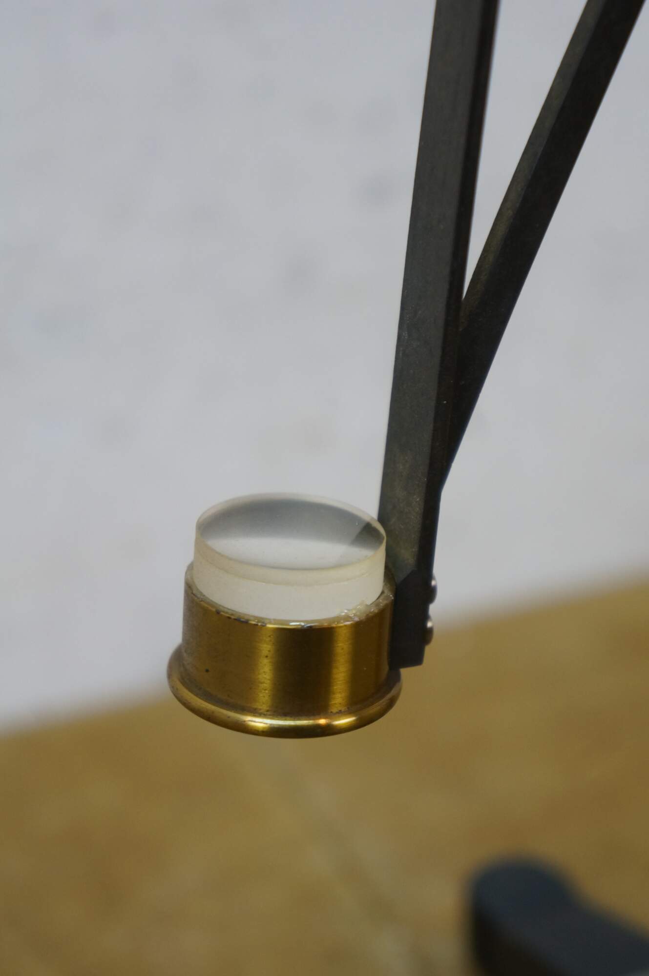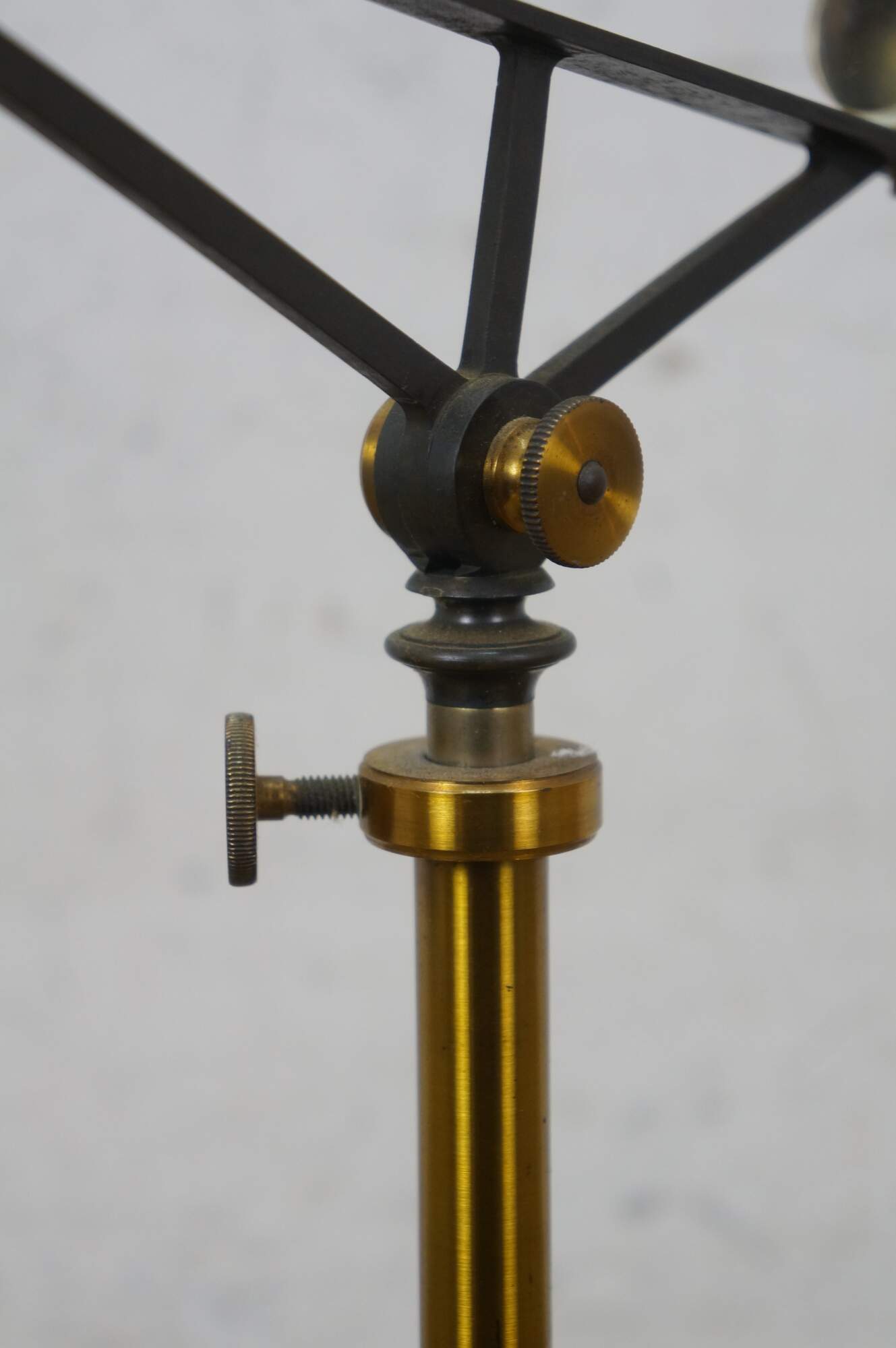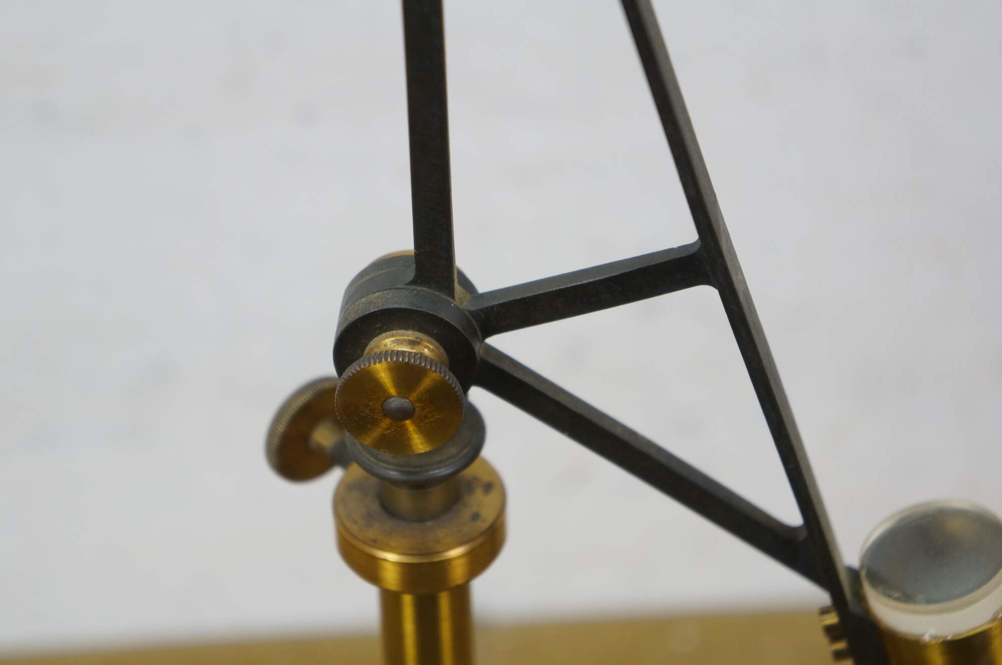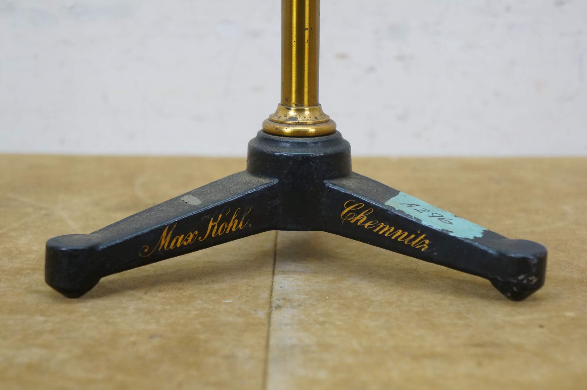Rare antique Max Kohl, Chemnitz, Germany, microscope / polariscope. Made of brass and cast iron with tripod base and two lenses. Circa 1900.