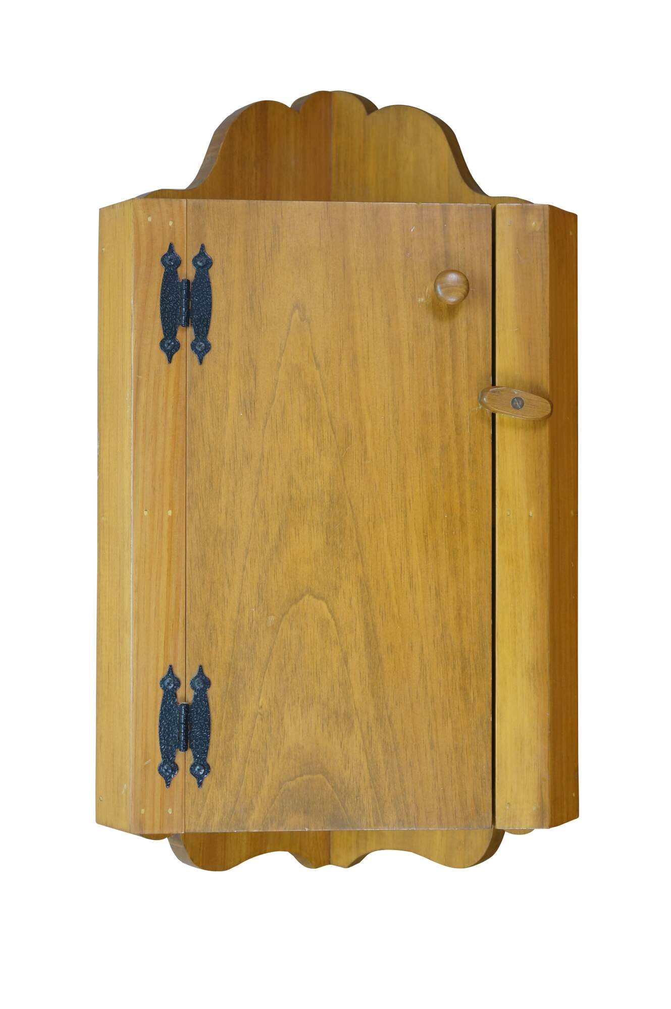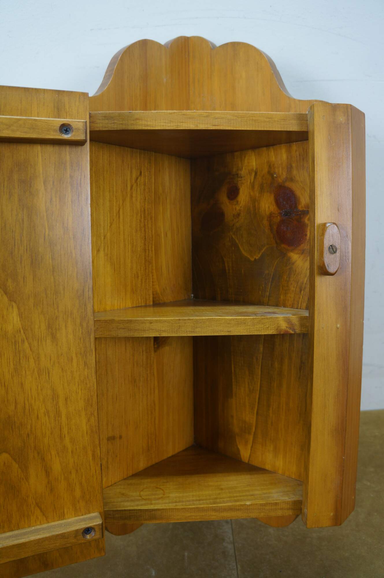 Vintage Pine country farmhouse wall corner cabinet medicine / spice cupboard.