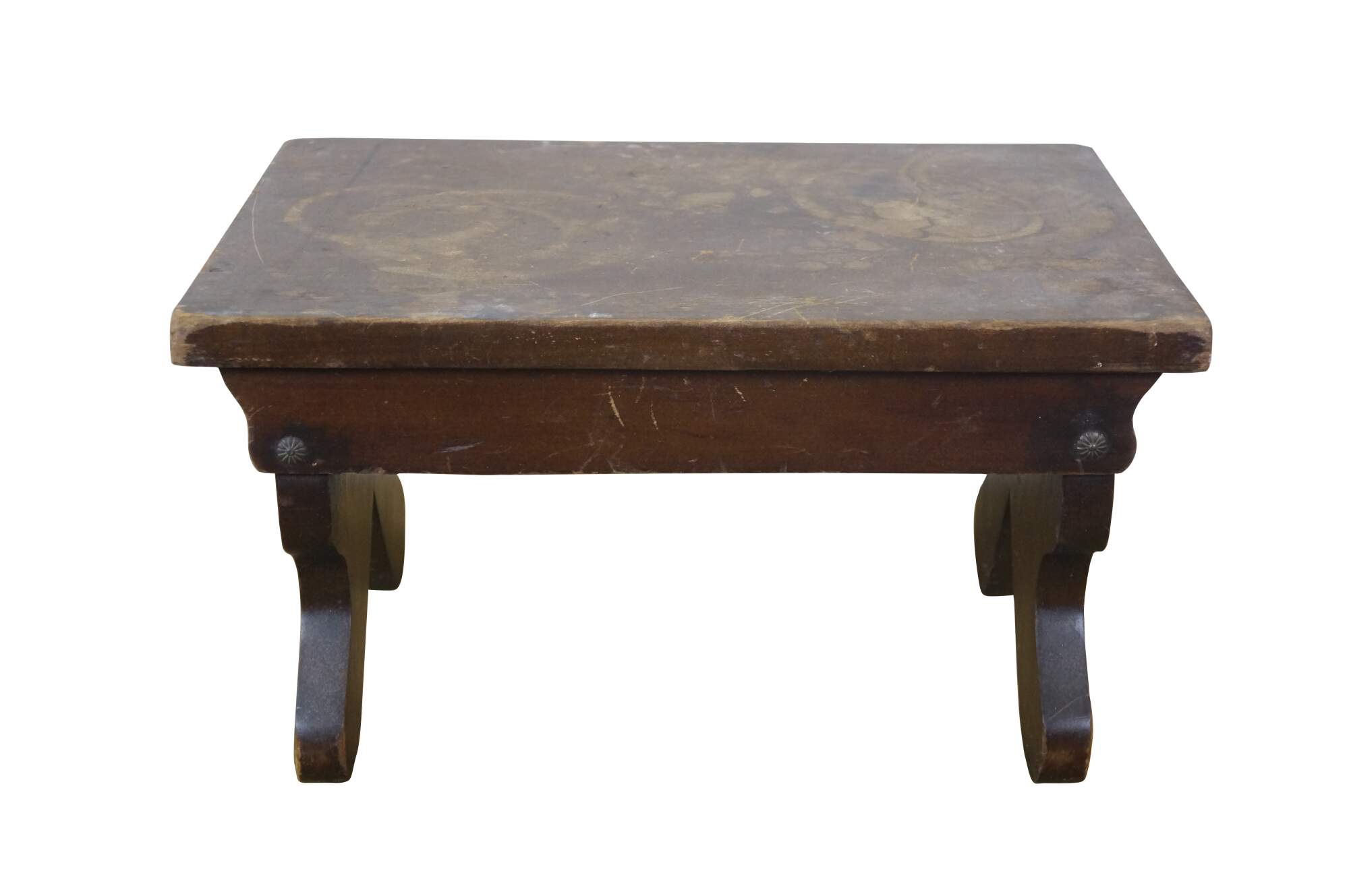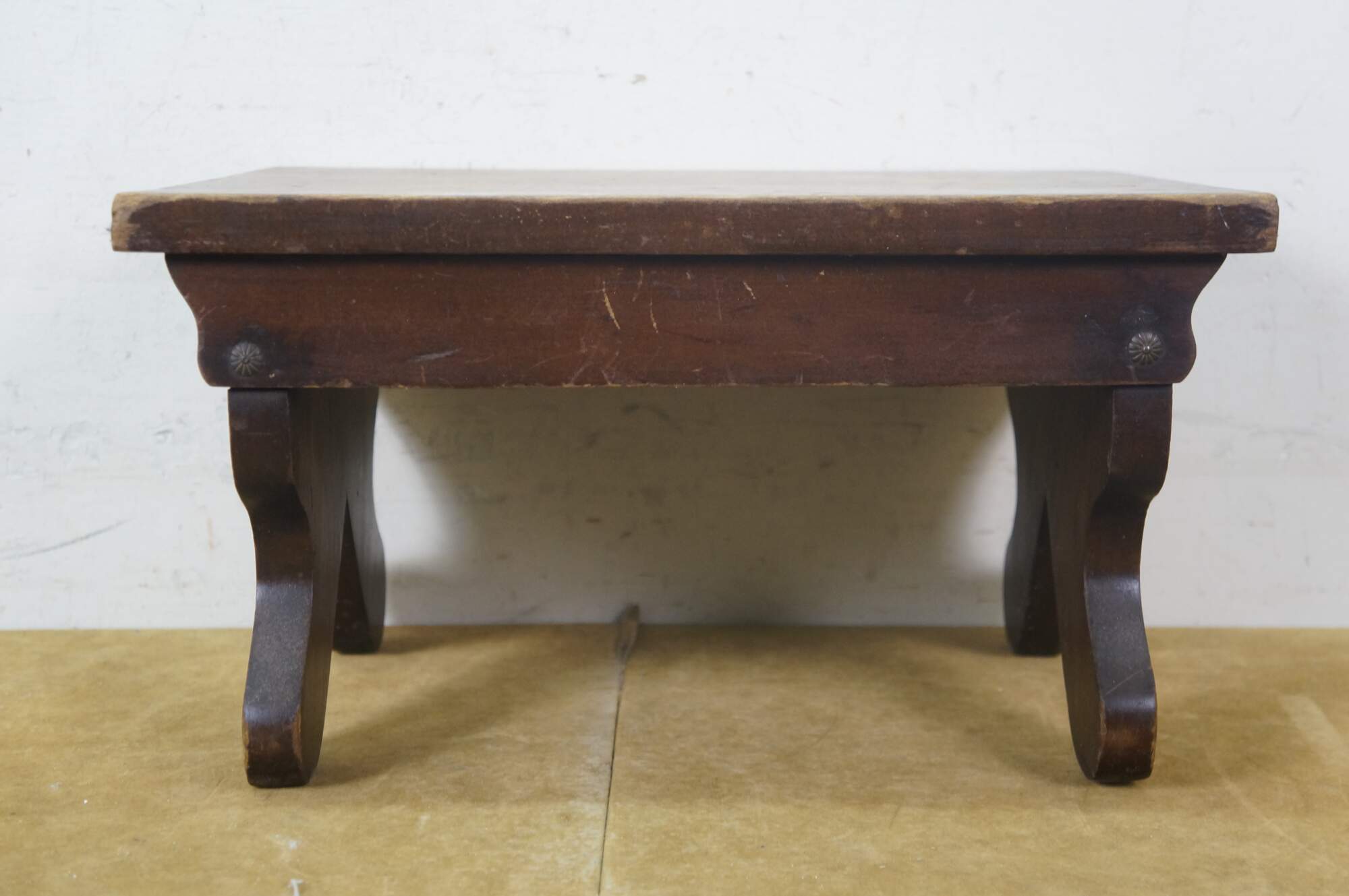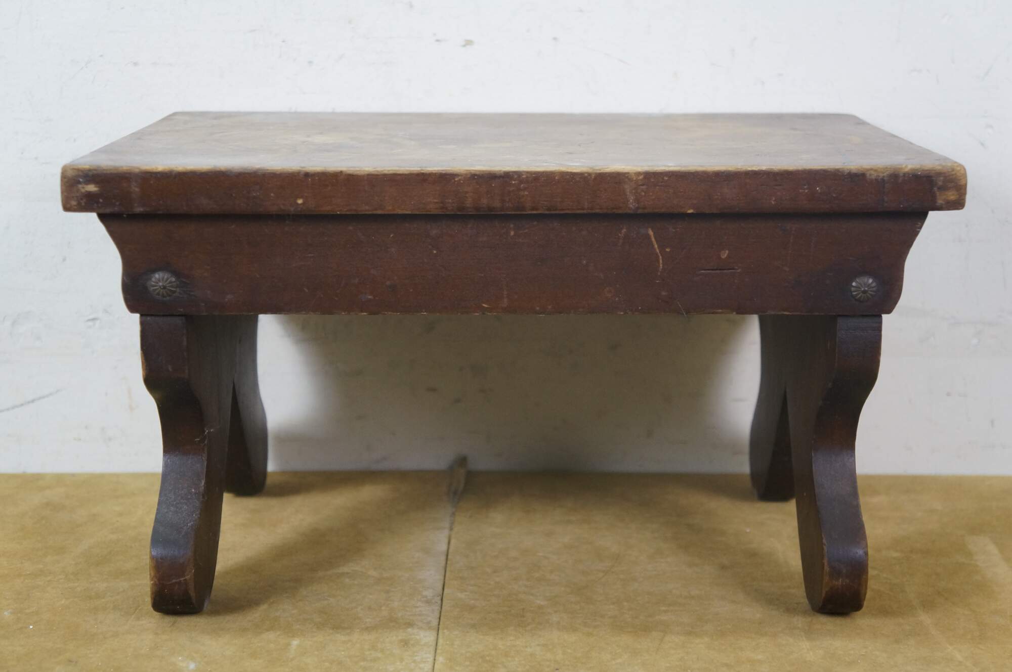 Antique primitive early American oak footstool / foot rest / step stool / ottoman.