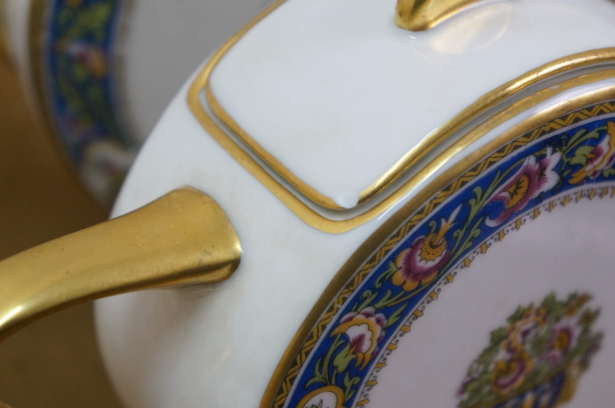Gentle wear - Chip to edge of teapot lid; one cracked plate