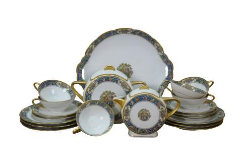 "The story of the Touze family in the porcelain business dates back to 1863 when Michel Touze and his associate Soudanas founded a decorating studio in Limoges at the boulevard des Petits Carmes which Touze continued alone from 1869, moving to brand new facilities the following year. In 1878 his widow took charge of the family business, followed by their son a few years later. The mark J.B.T & Cie was used from 1901 to 1913. During World War I the company ceased activity. T.L.B. (Touze, Lemaître Frères & Blancher) was created after the war, in 1918. The manufacture produced tea, coffee and table sets in several shapes. Some patterns were entirely hand painted. The manufactory participated in the 1925 Modern Decorative Arts Exhibition, in the 1931 Colonial Exhibition and in the 1937 International Exhibition. Like many other factories in the Limoges region, the company ceased activity during World War II. From 1950 onwards the former facilities of T.L.B. were used by the porcelain decorators Georges Jammet and Henri Seignolles who founded J. Seignolles, a factory that still produces high quality porcelain manufactured and decorated exclusively in Limoges. " (Art Deco Limoges Porcelain)