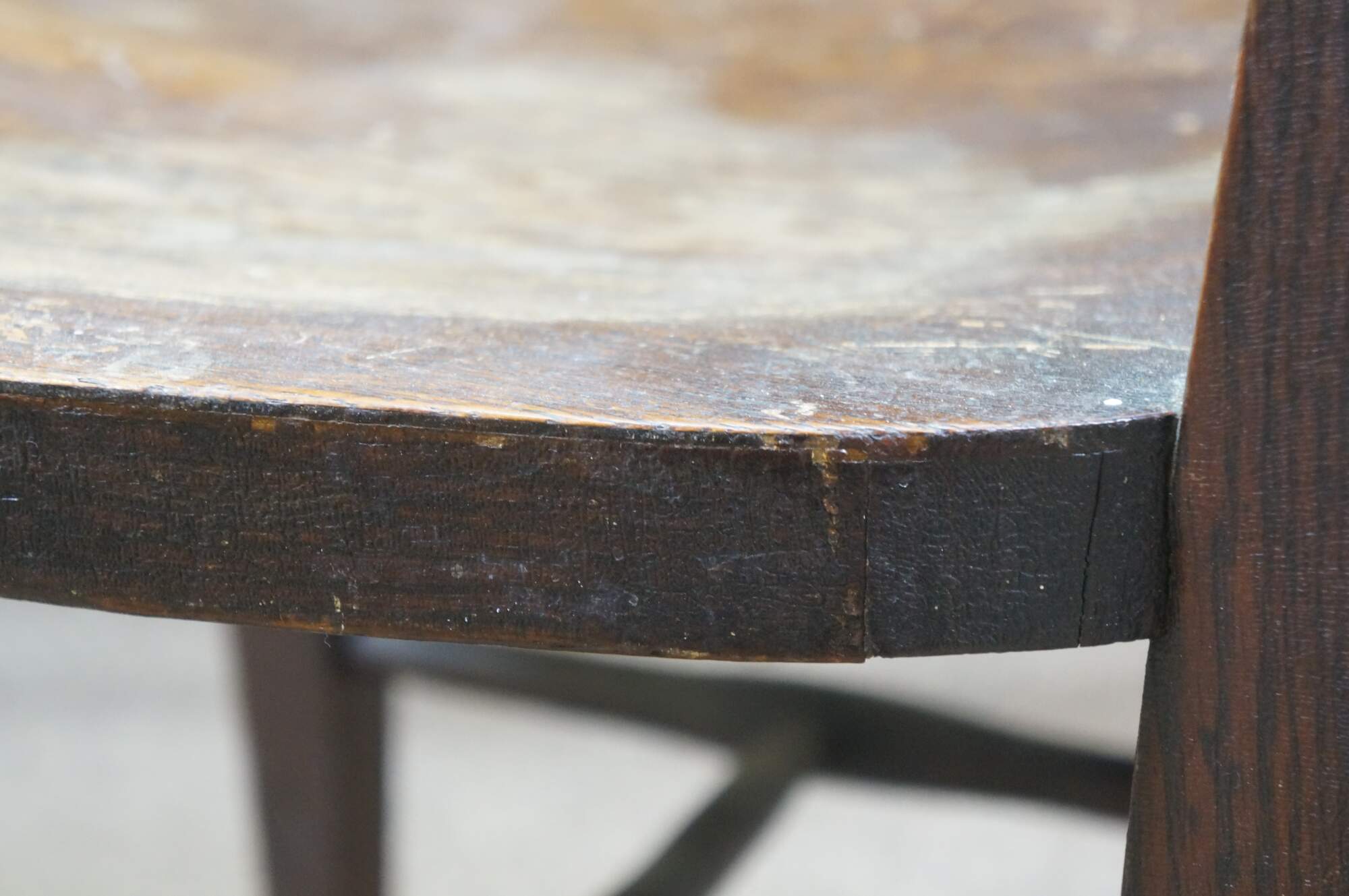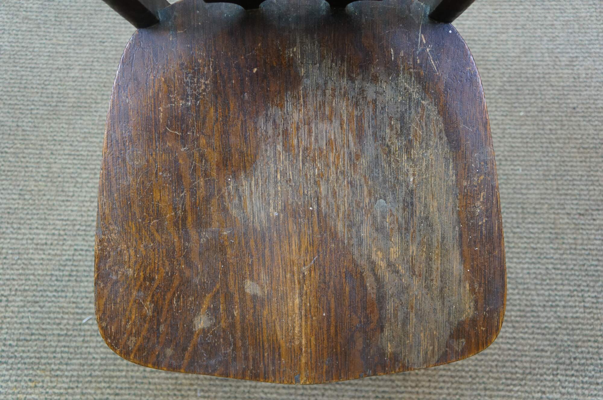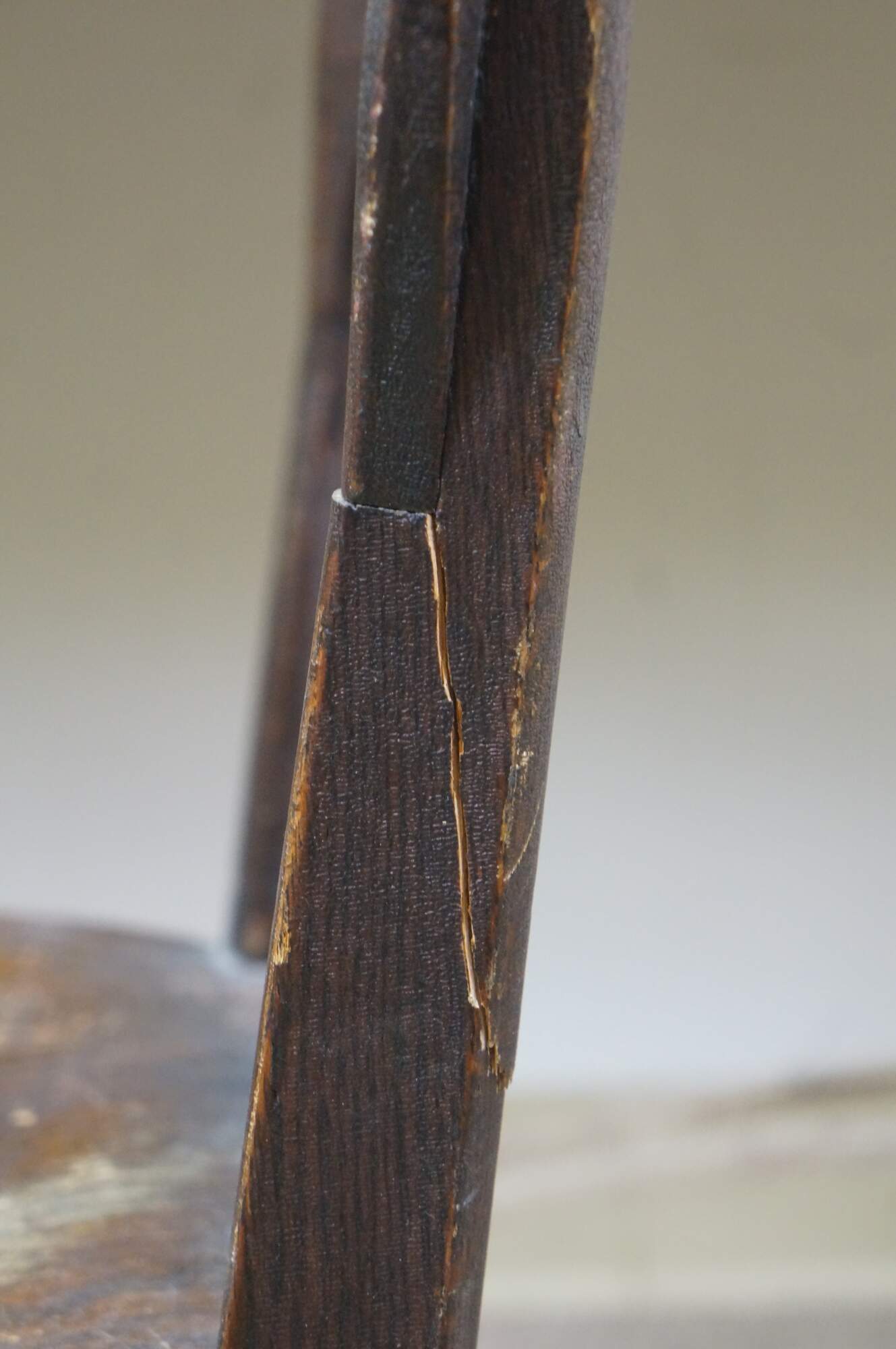 Scuffs/wear to finish; split / repair right side.