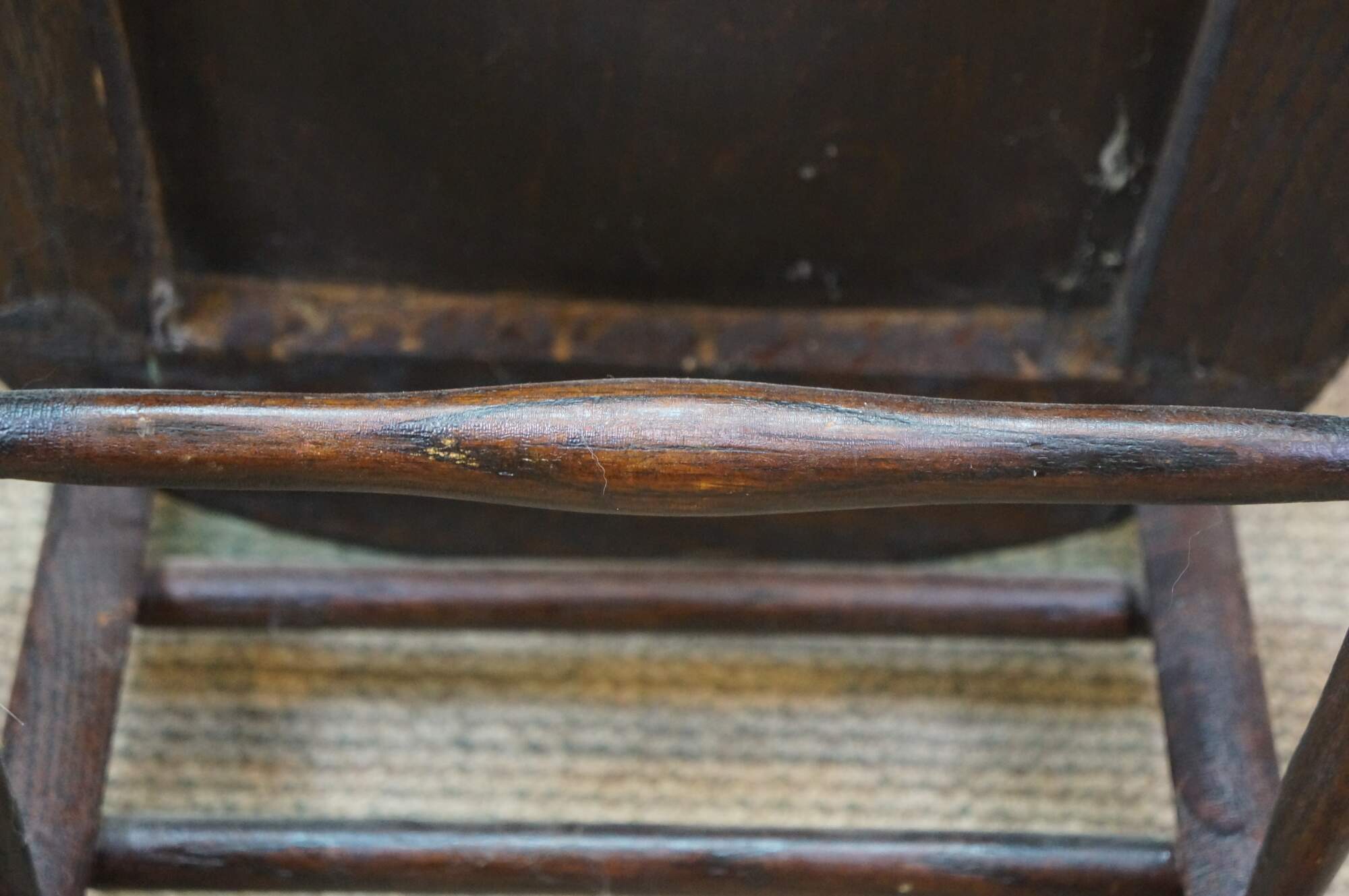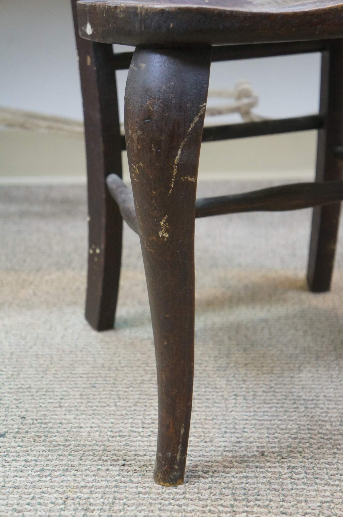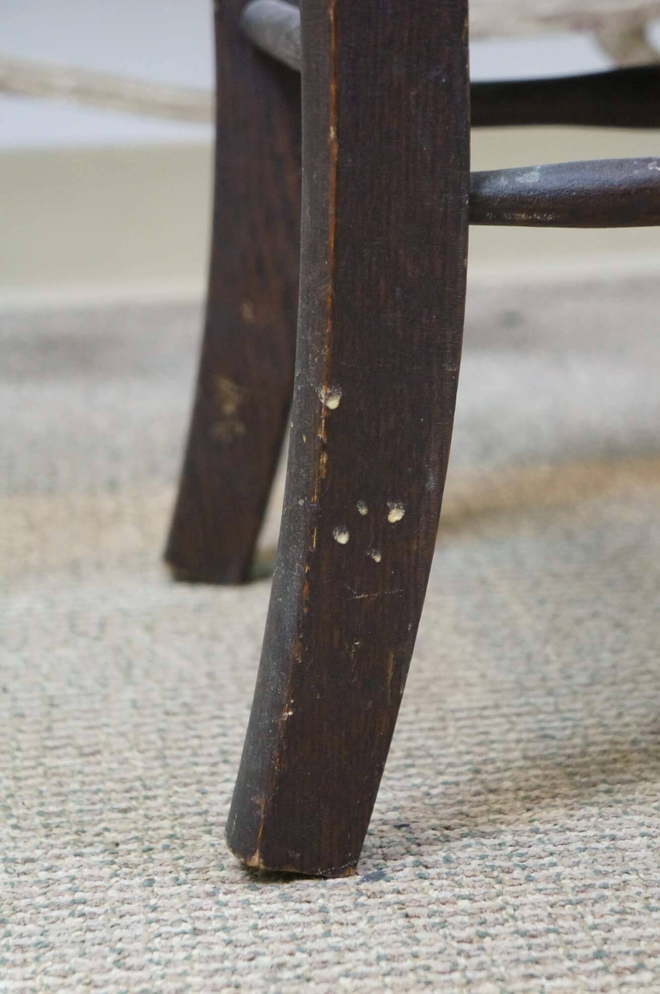 Scuffs/wear to finish; split / repair right side.
