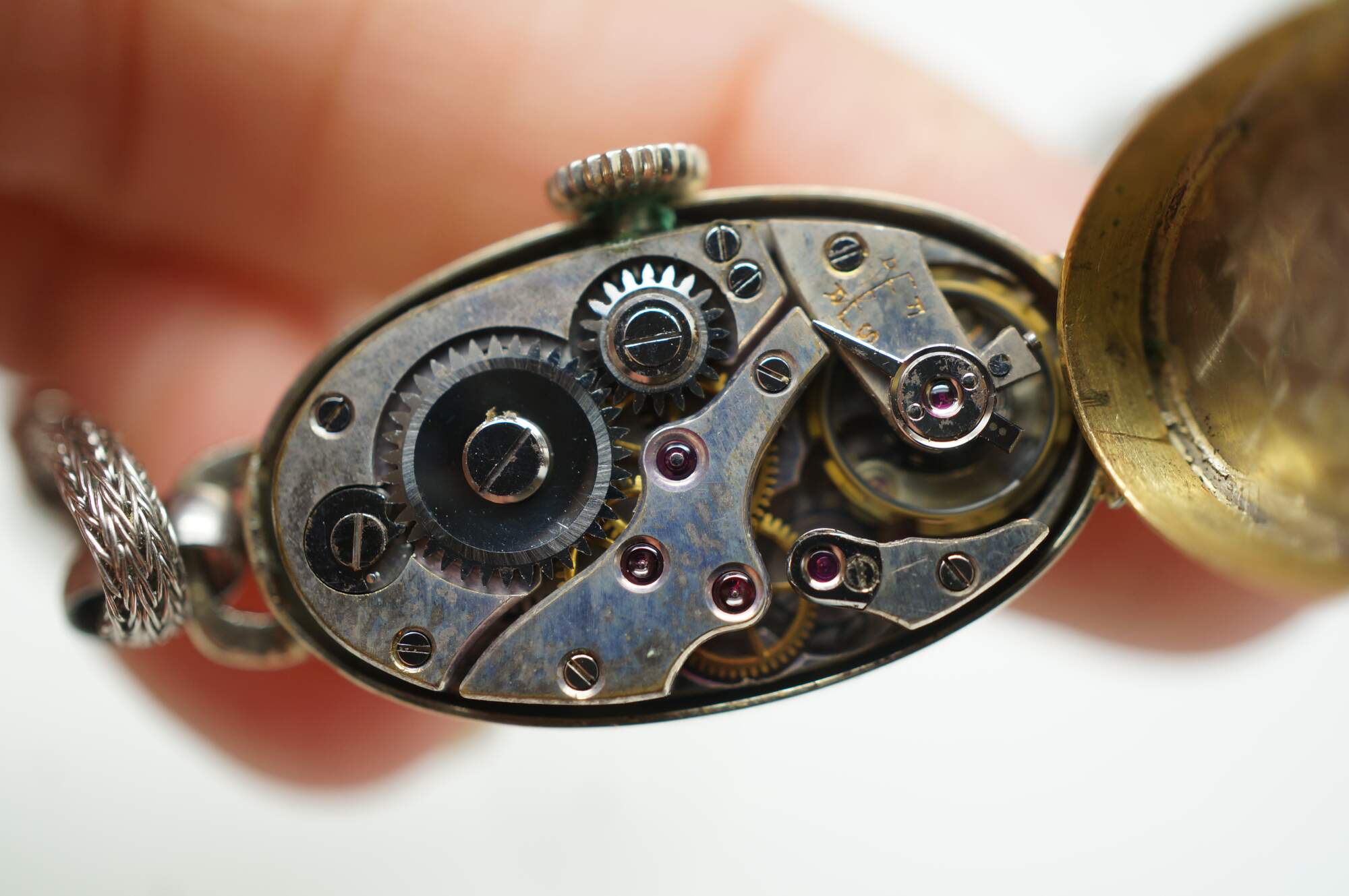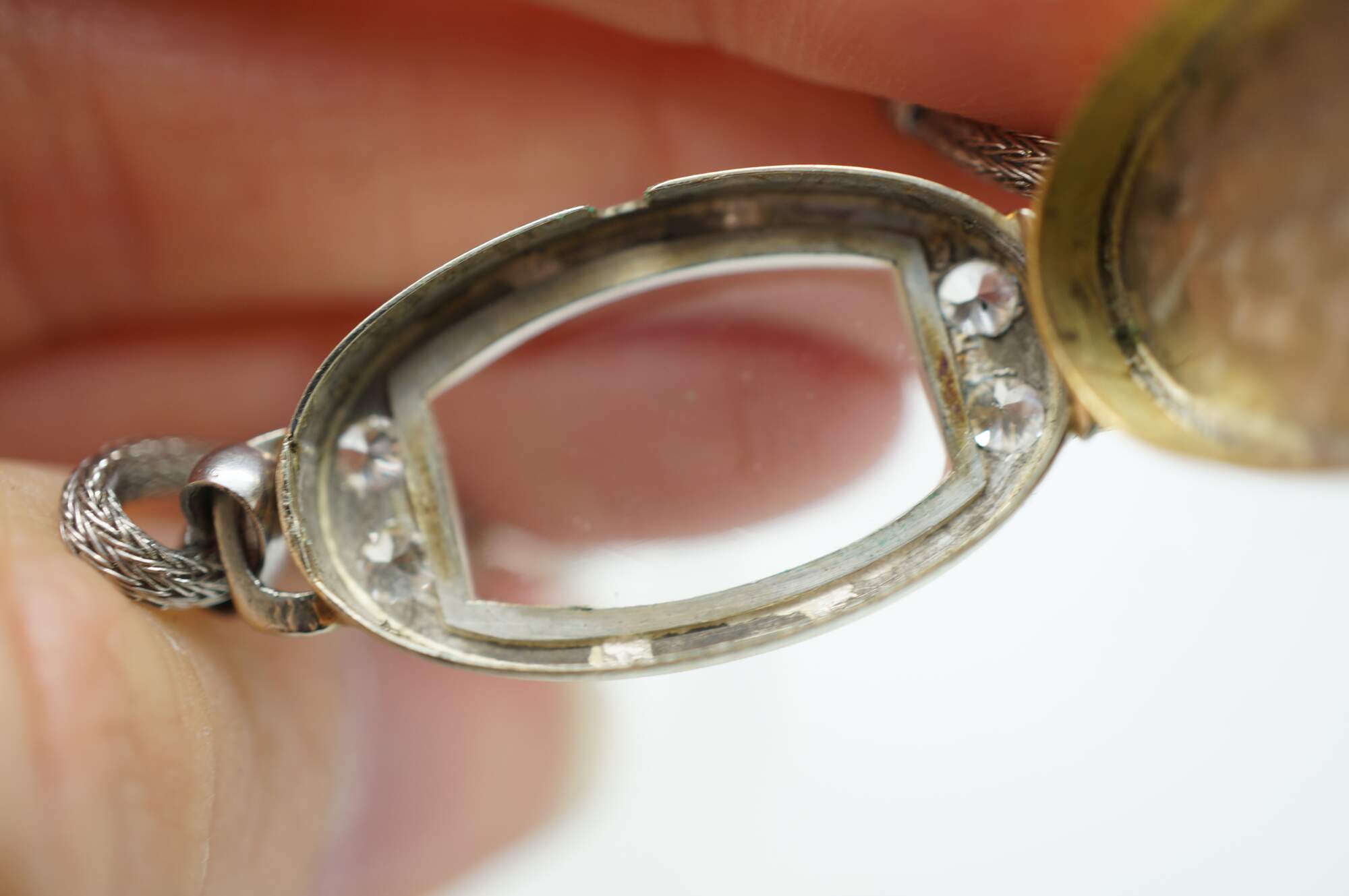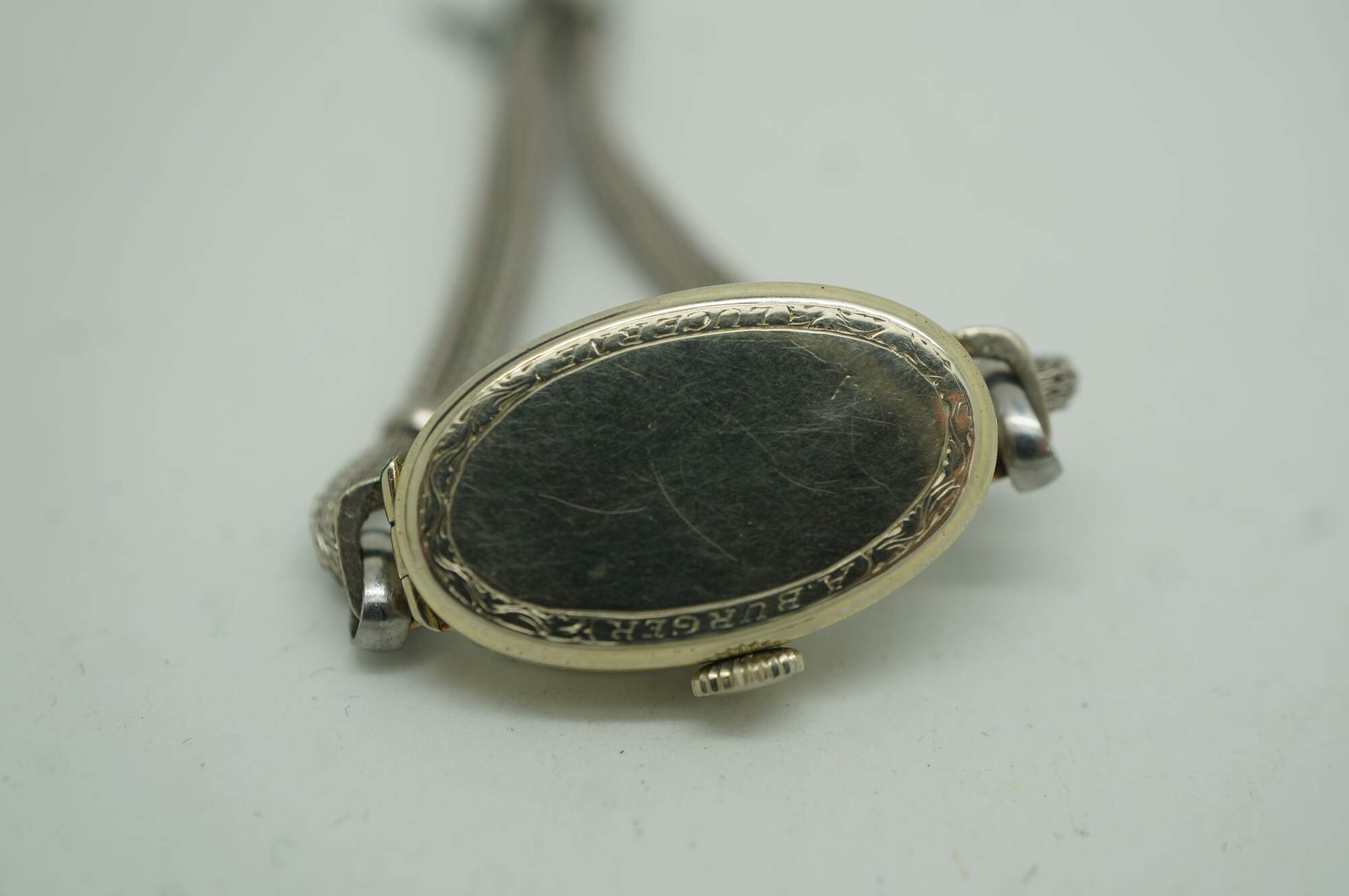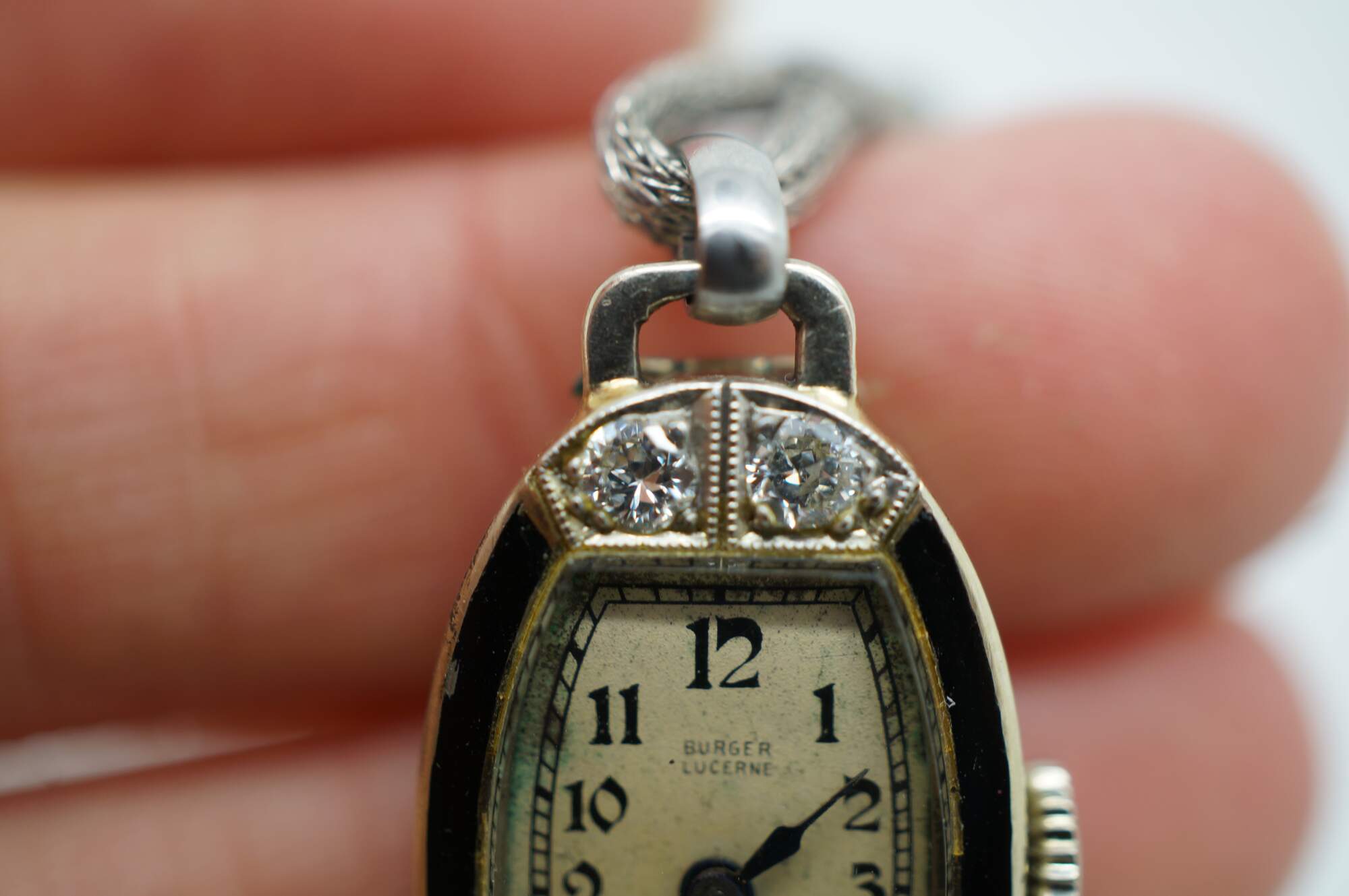 Antique Victorian Art Deco A. Burger Lucerne Platinum ladies wristwatch with four diamonds and twisted rope band.