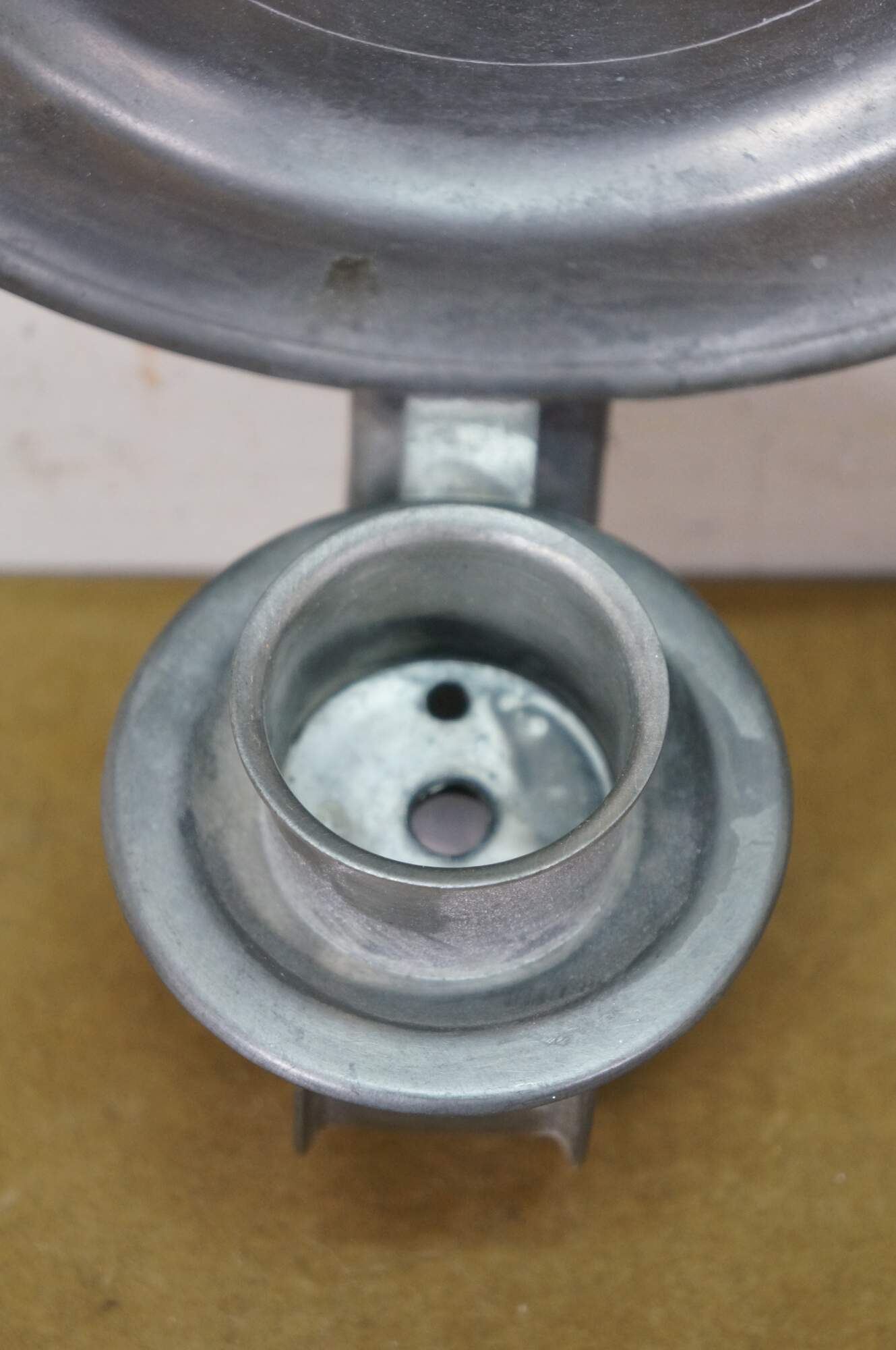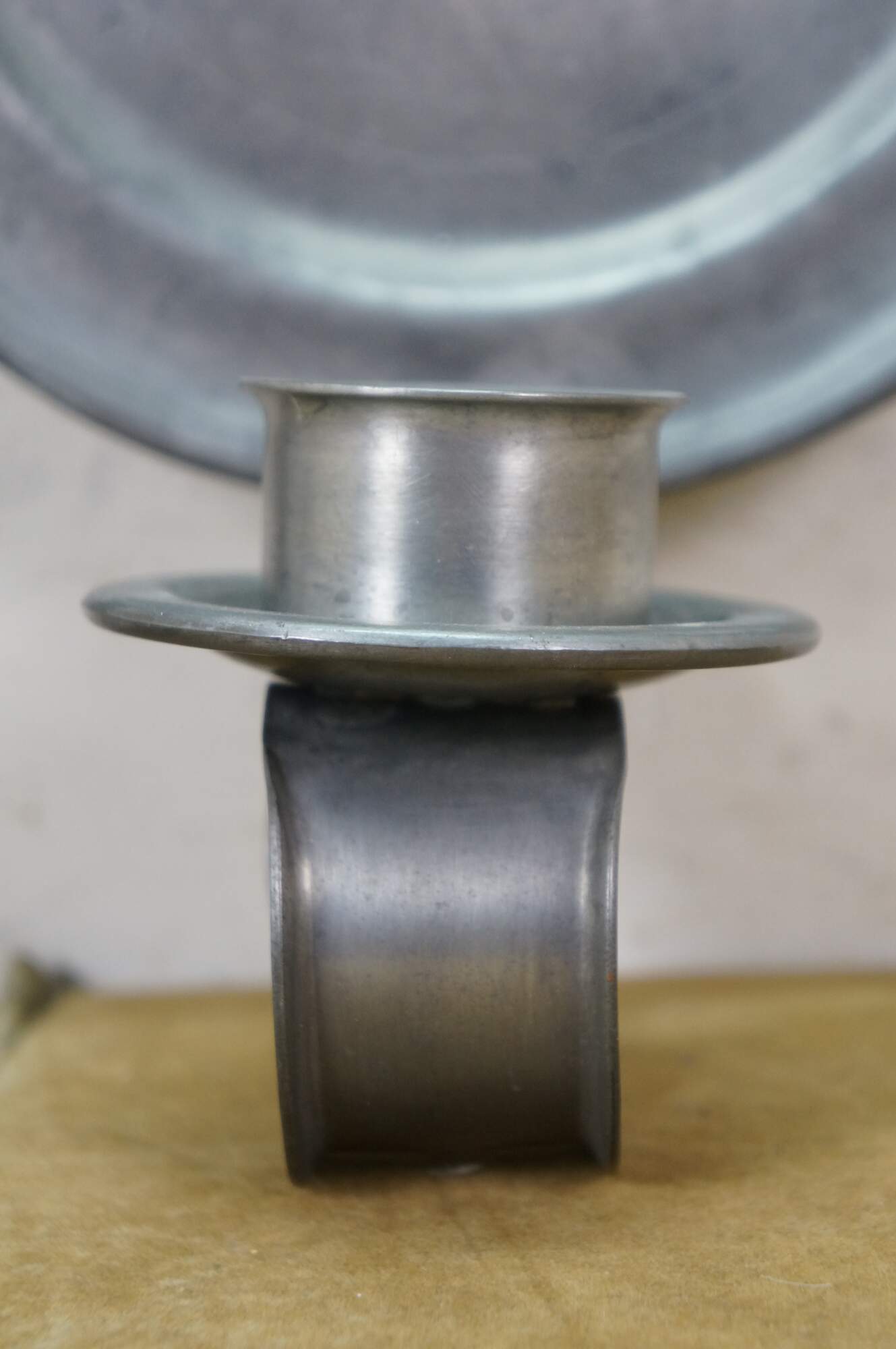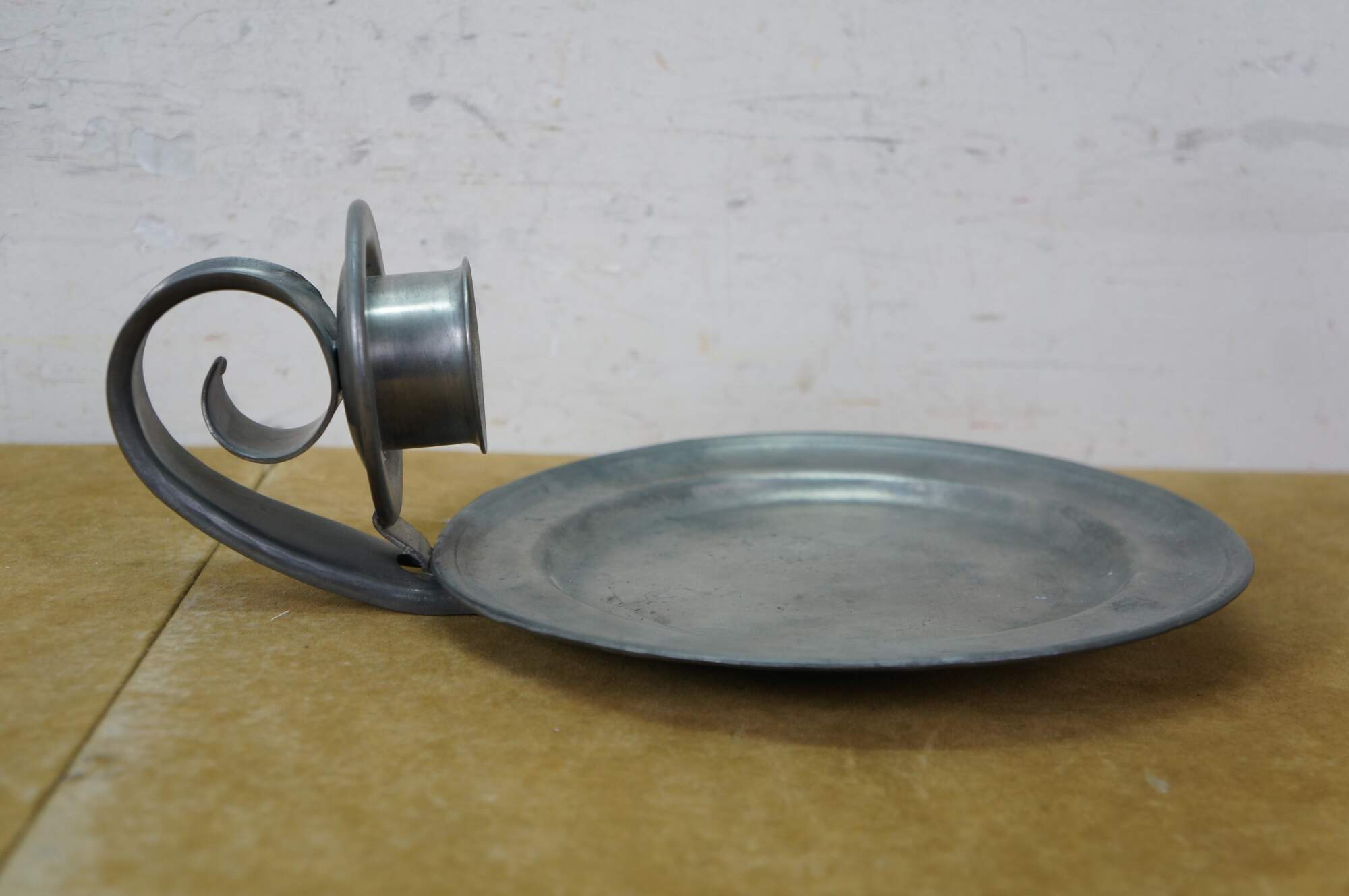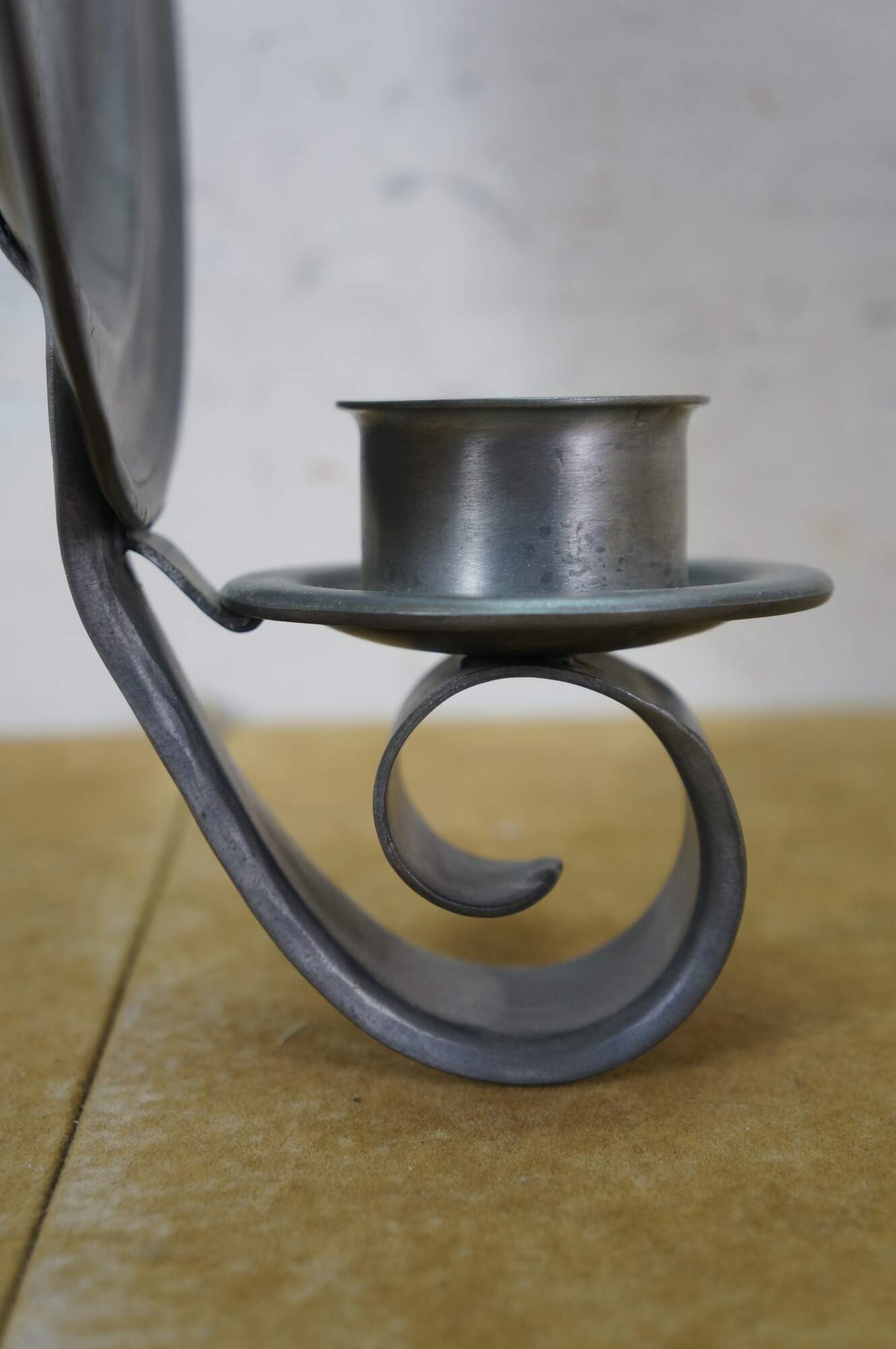 Rare antique L. Hitchcock early American pewter plate sconce candle holders.