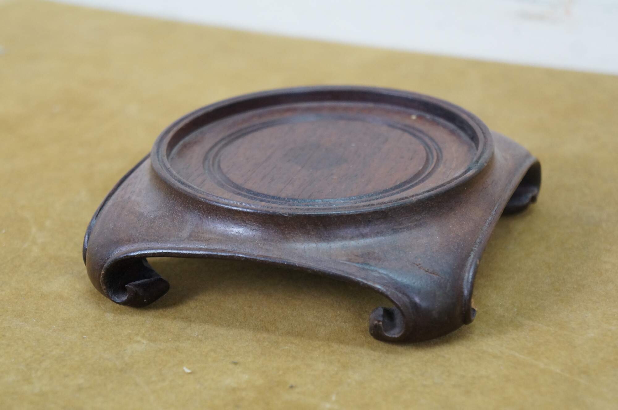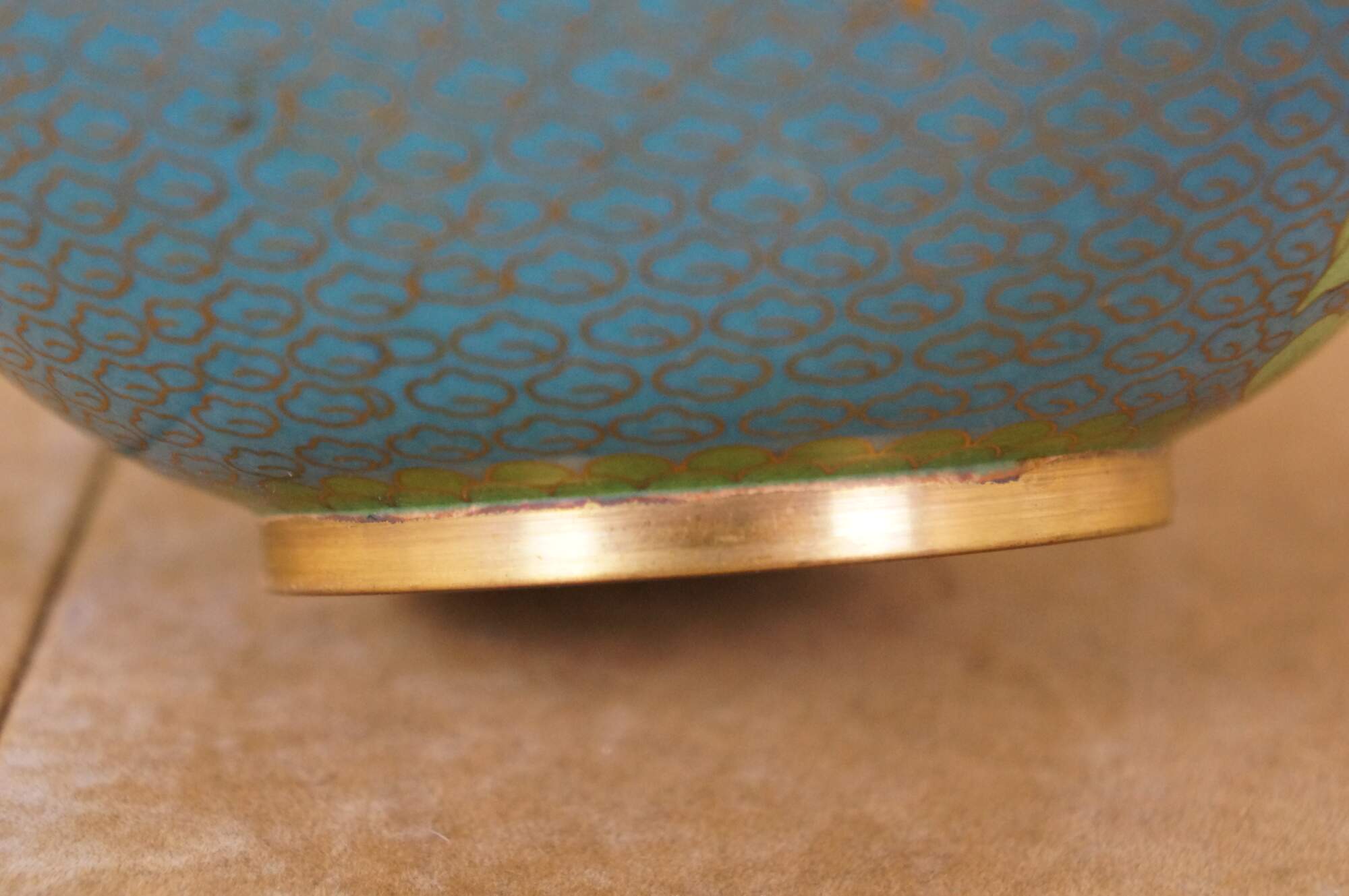 Gentle wear/tarnish, enamel loss inside lid.