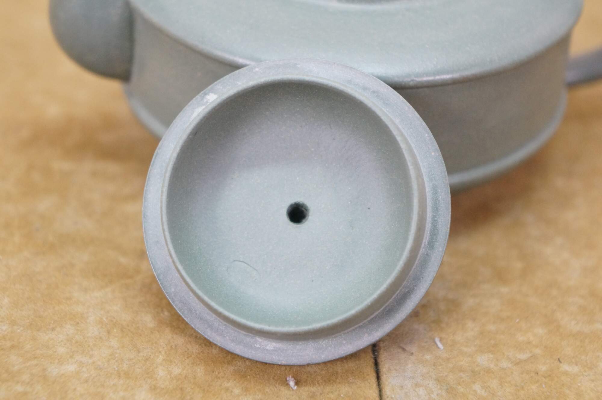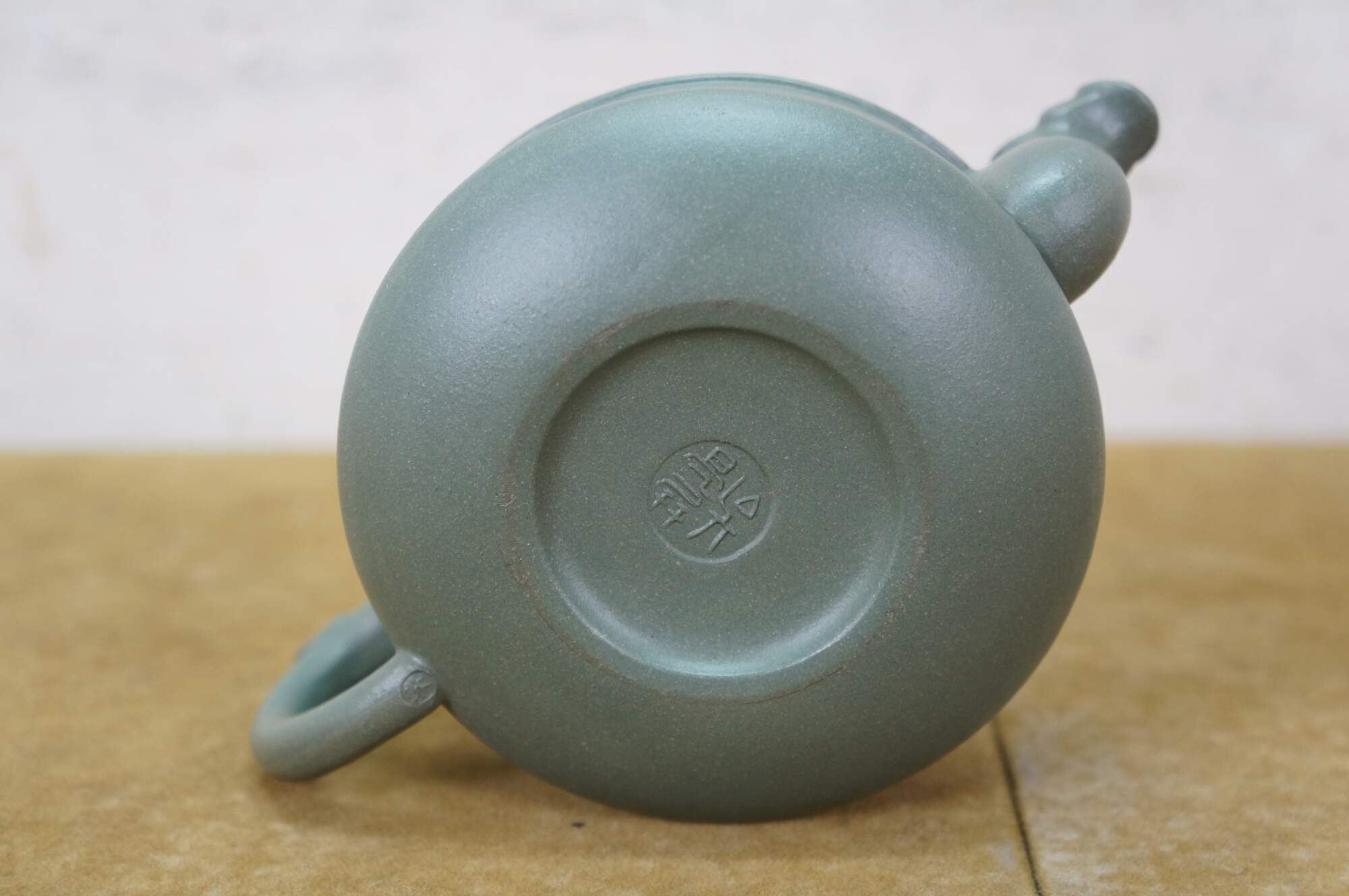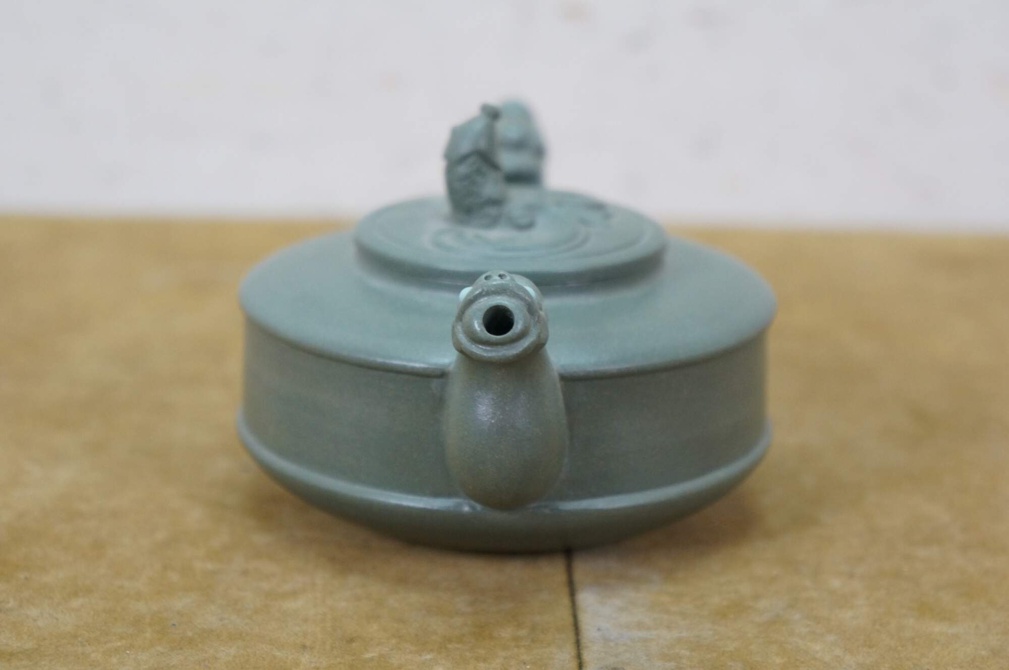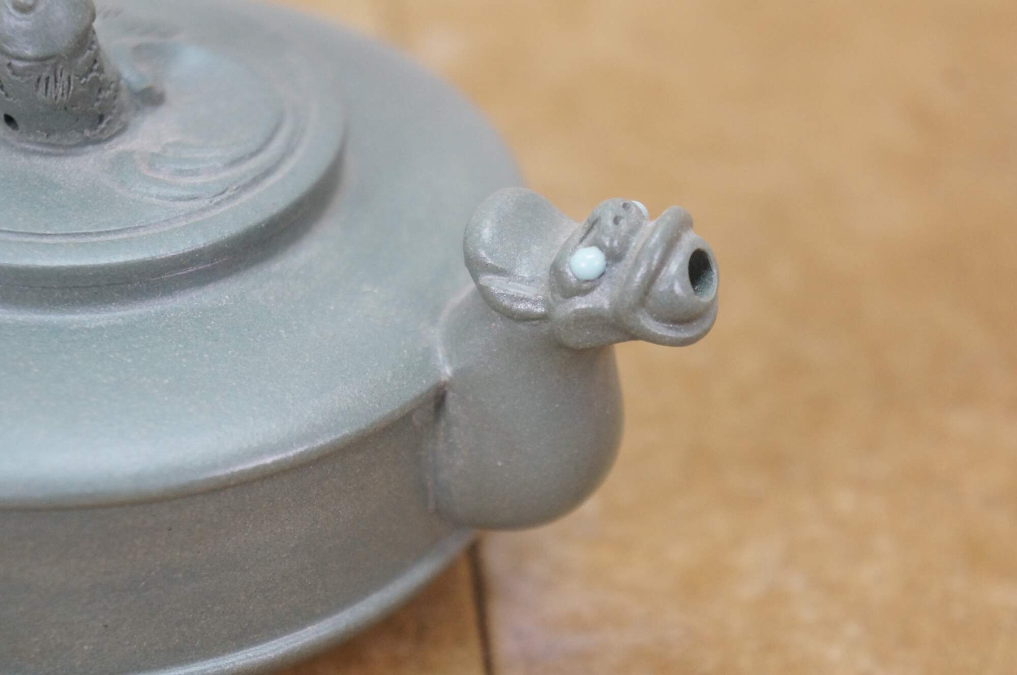 Beautiful vintage Chinese Yixing zisha green clay Kung Fu tea / coffee pot with a Dragon / serpent / Koi fish motif.
