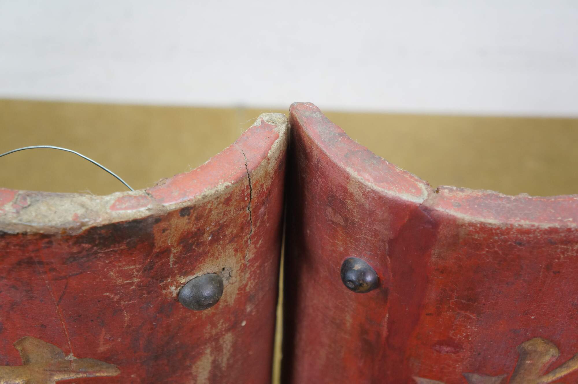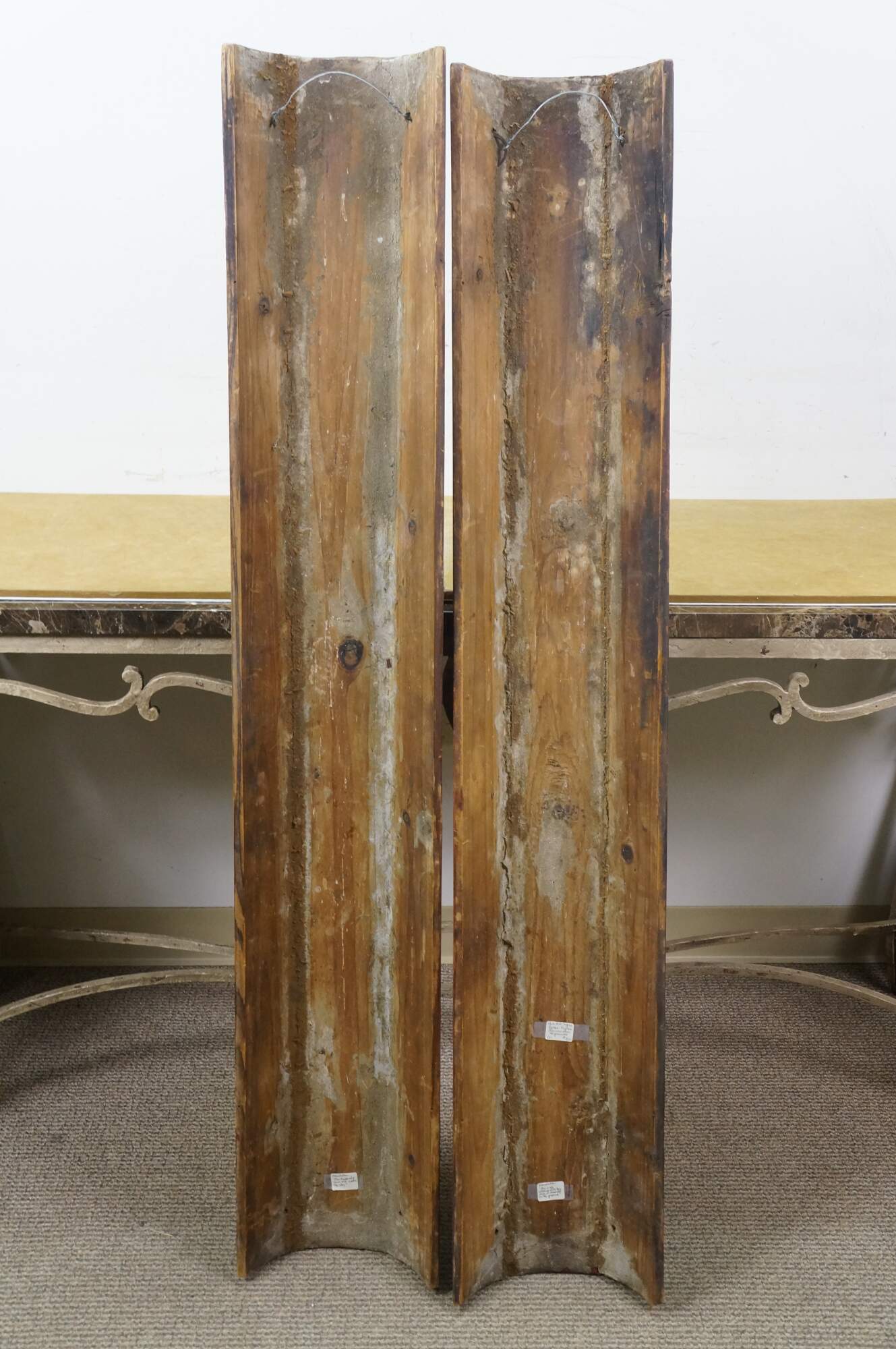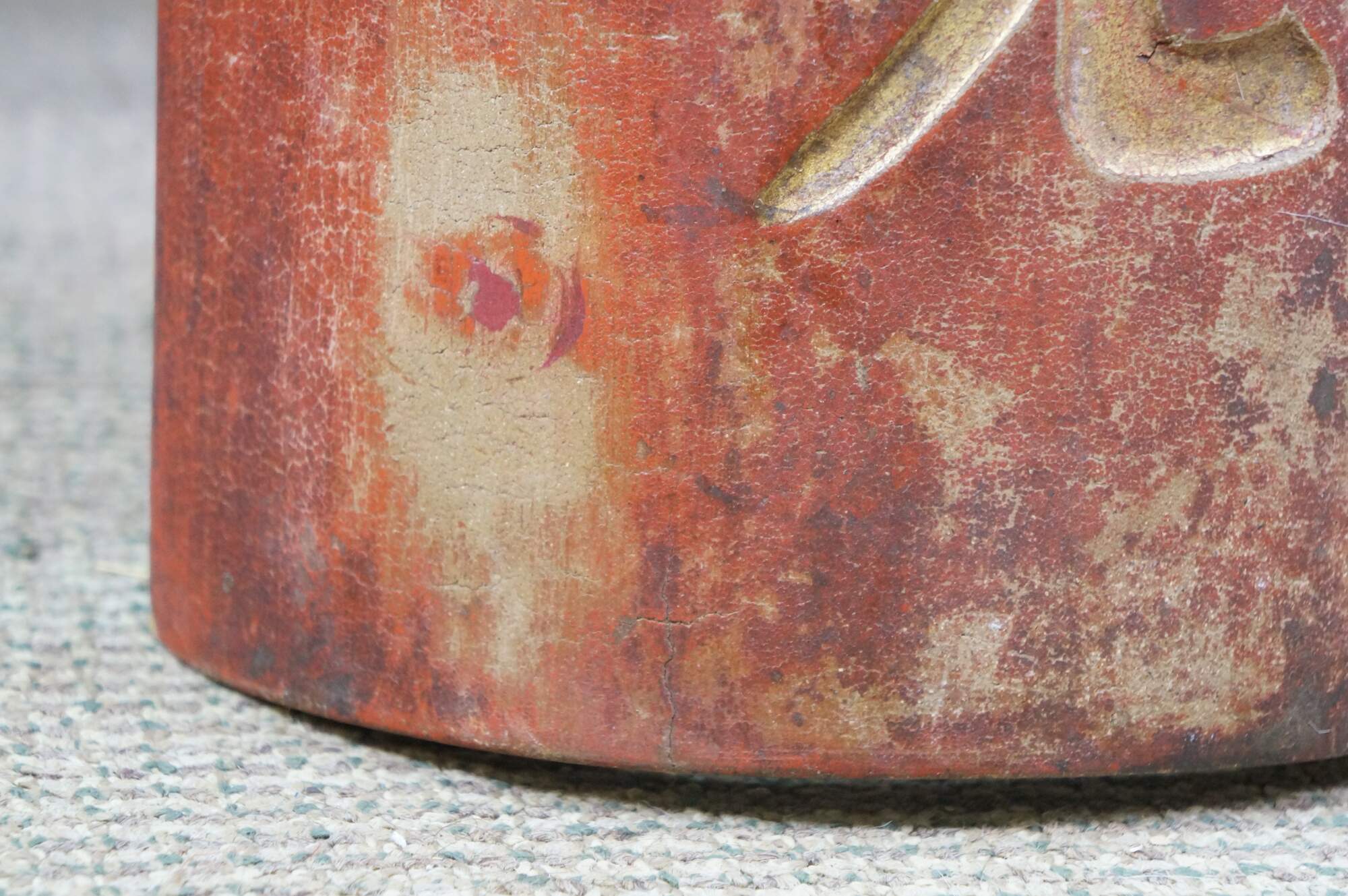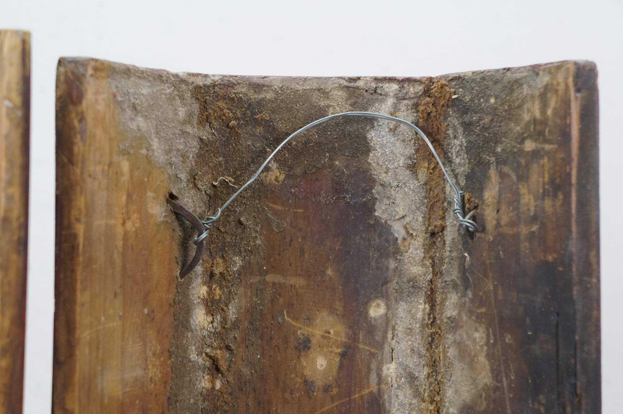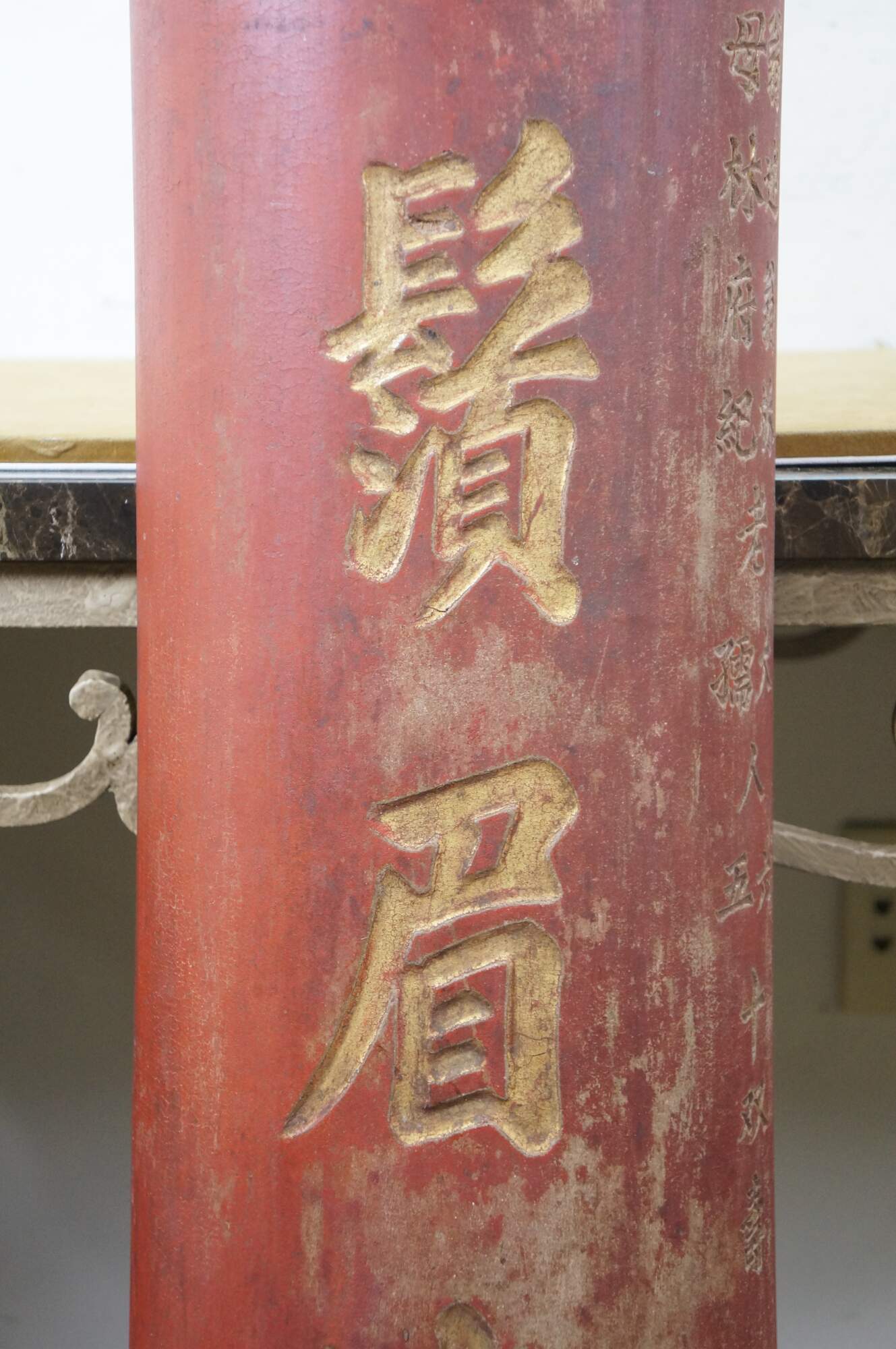 Beautiful pair of antique Chinese wooden couplet wall plaques dating to the late Qing Dynasty. Hand-carved with traditional Chinese gold calligraphy and red lacquer, these panels were a birthday gift given by a person named Tingjing Zhang 張廷