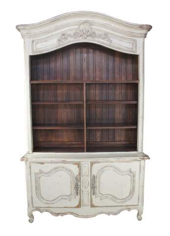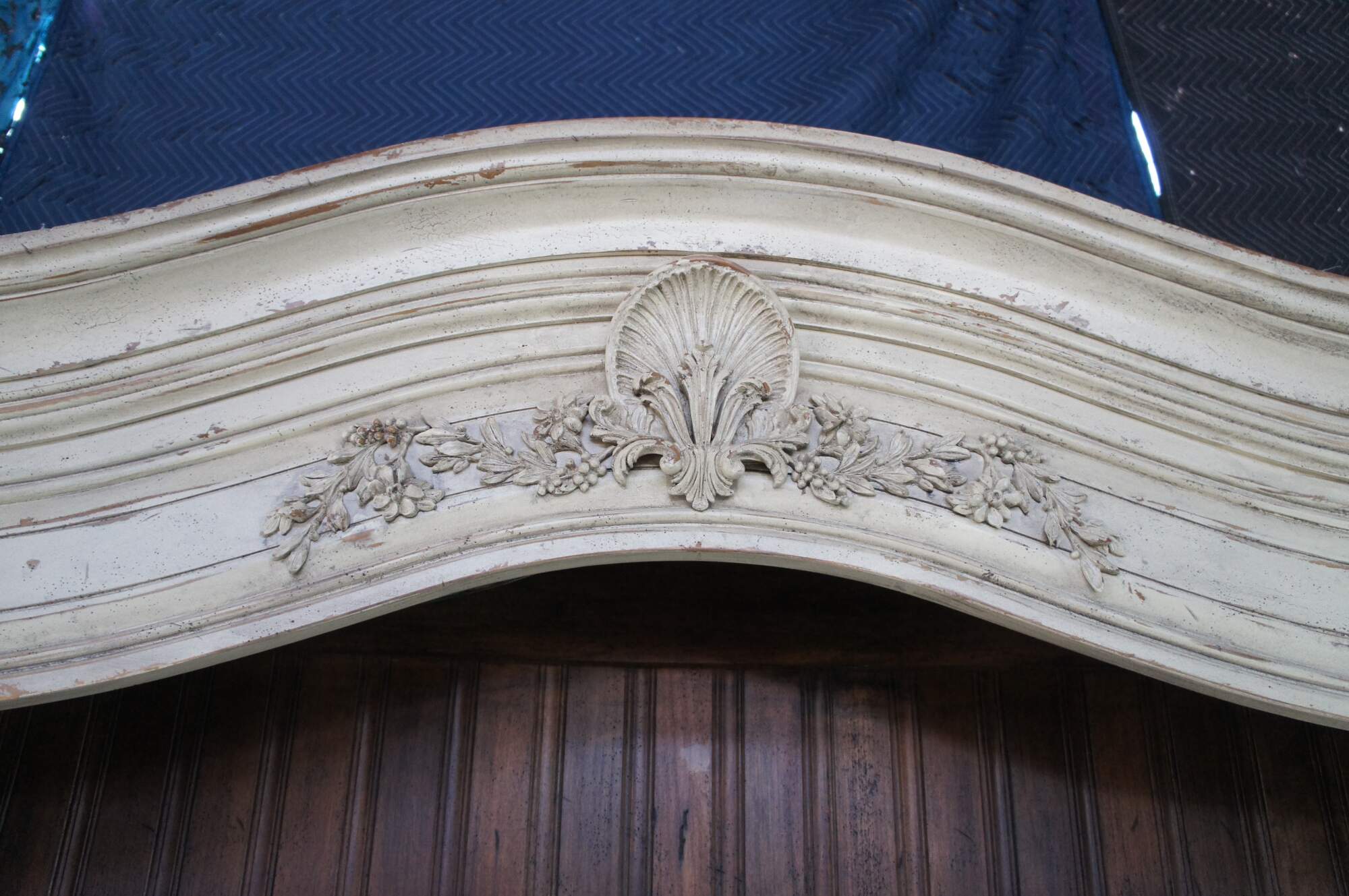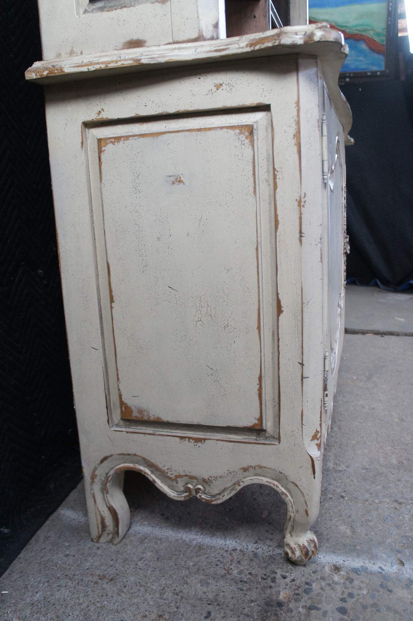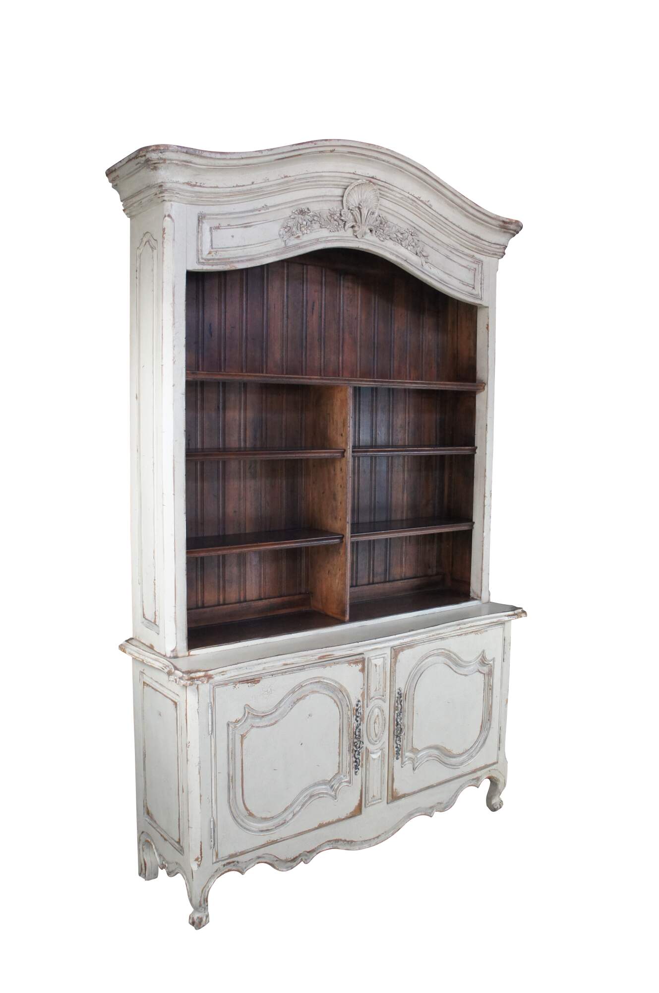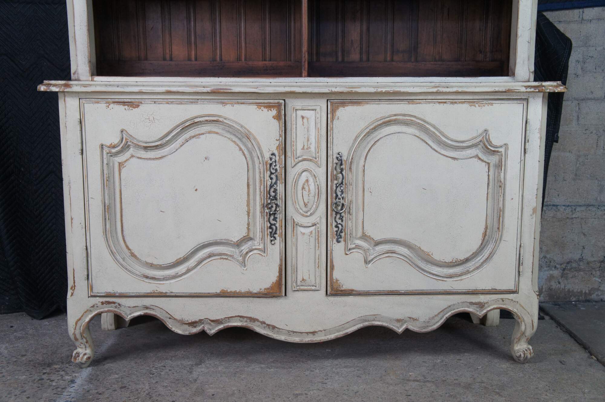 2 Available. A very large and impressive vintage Habersham Plantation Corporation Bourgogne hutch bookcase / curio cabinet. Made from mahogany featuring French Provincial / Louis XV styling a stepback design with upper bookcase and lower cabinet.