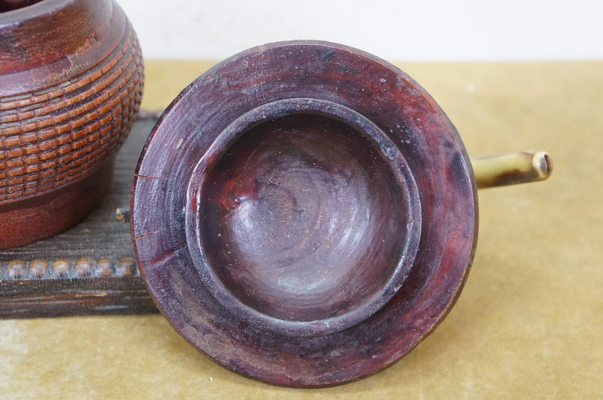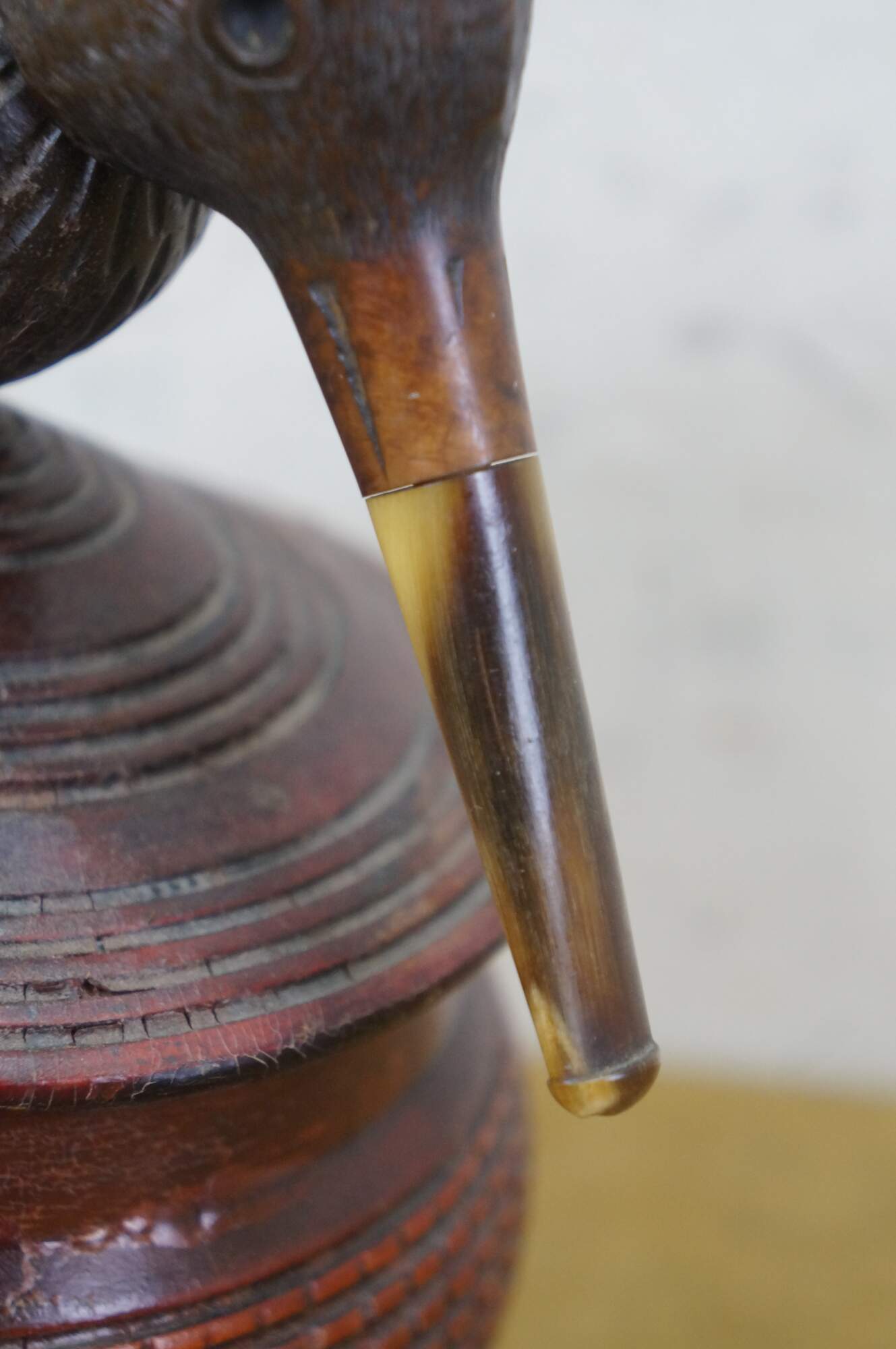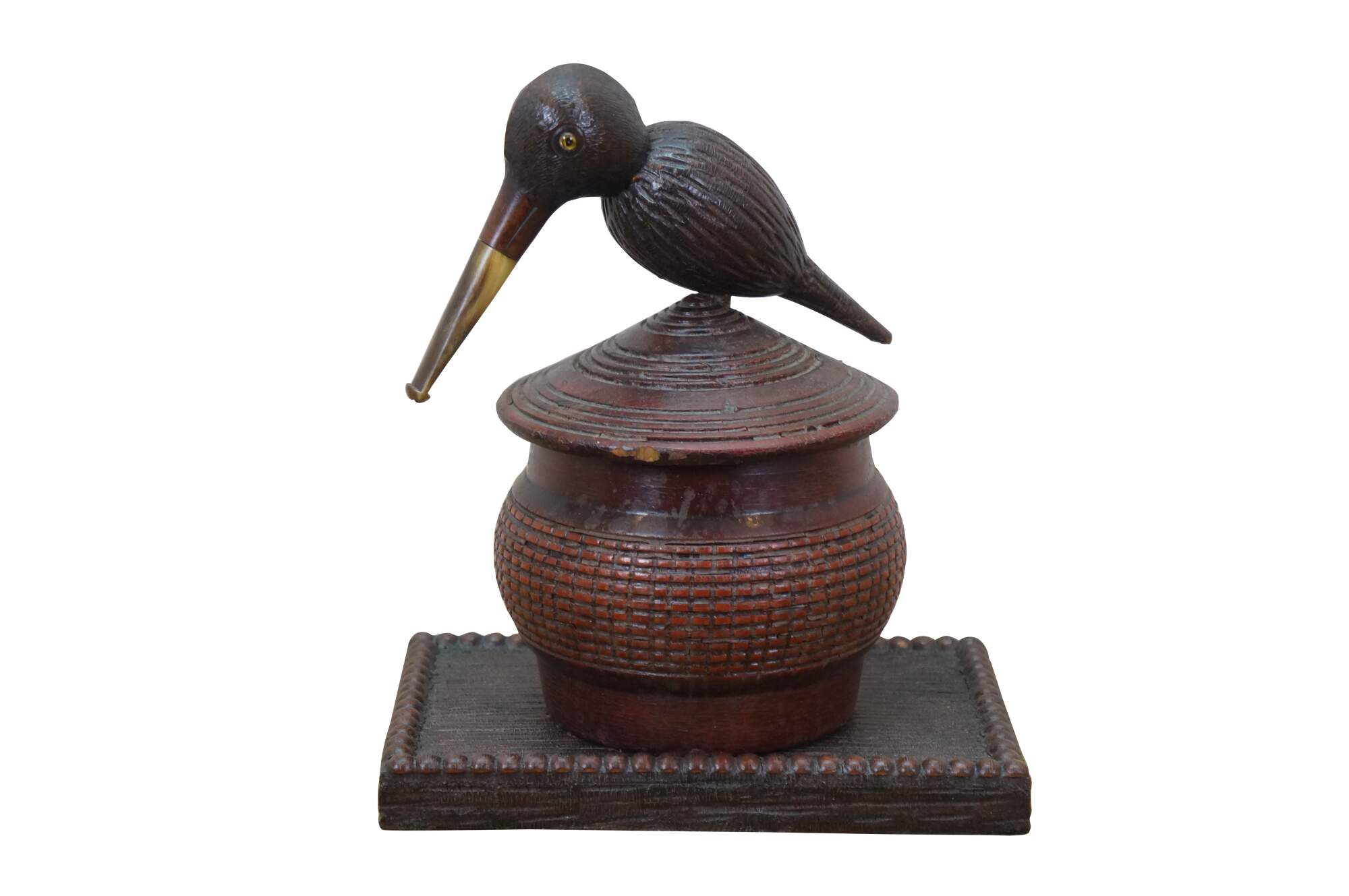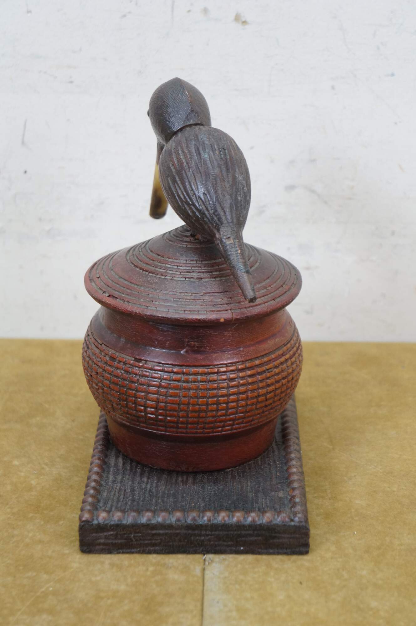 Antique Danish folk art lidded tea / tobacco box featuring a bird pipe used for the head and beak.