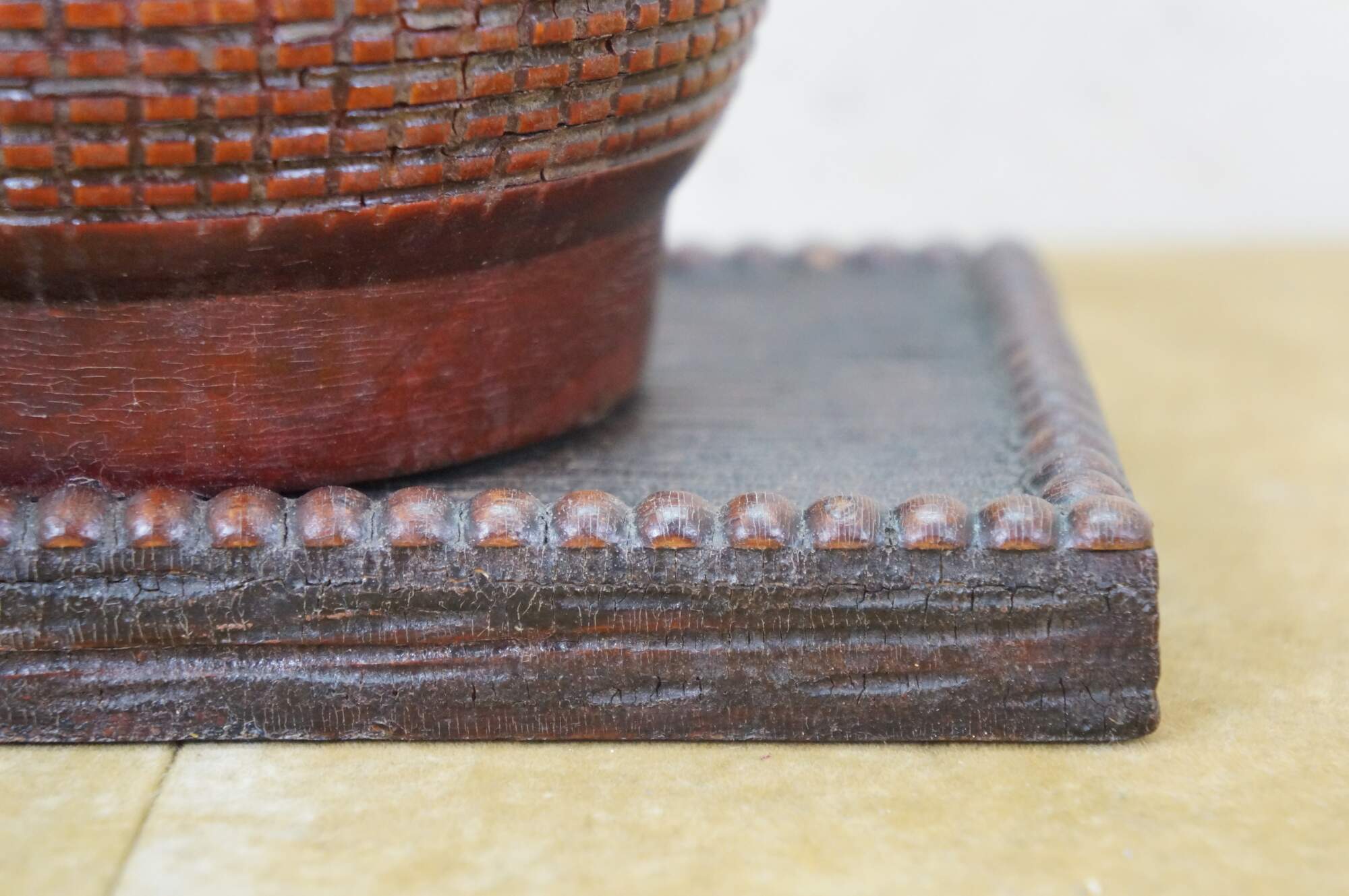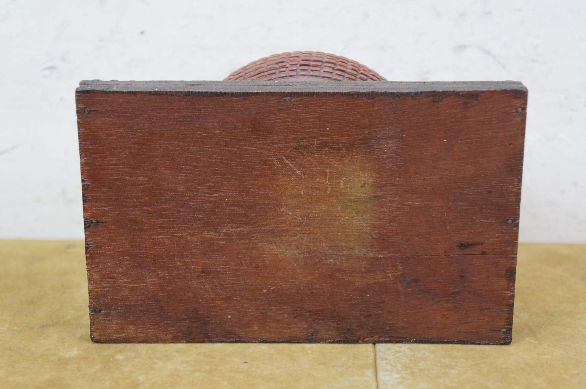 Wear and distressing from age, missing eye.