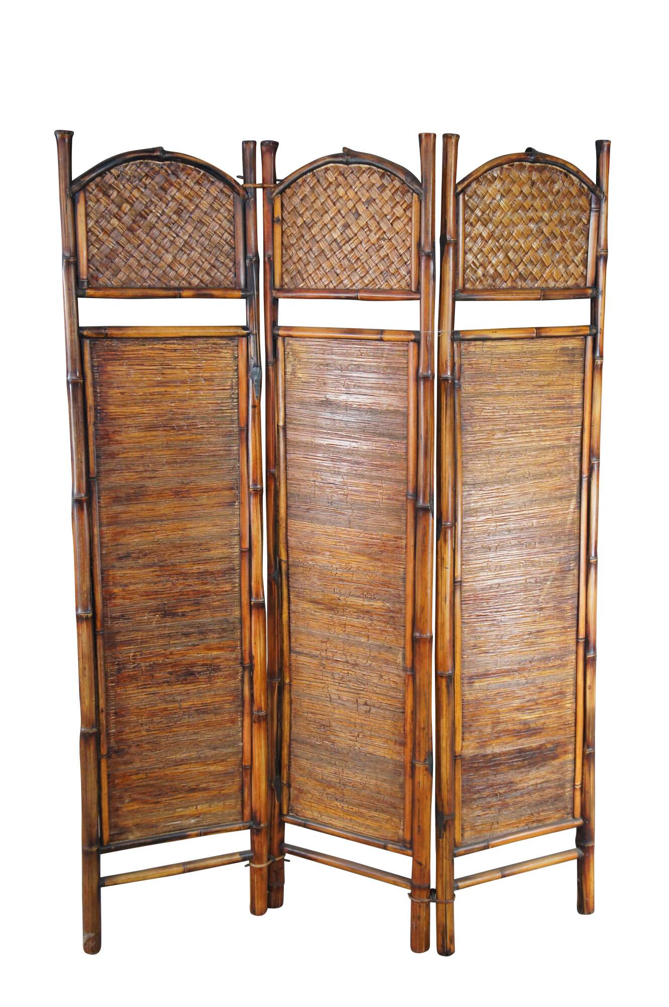 3 panel room divider made from bamboo, interlaced rattan and split reed. A warm addition to any space.